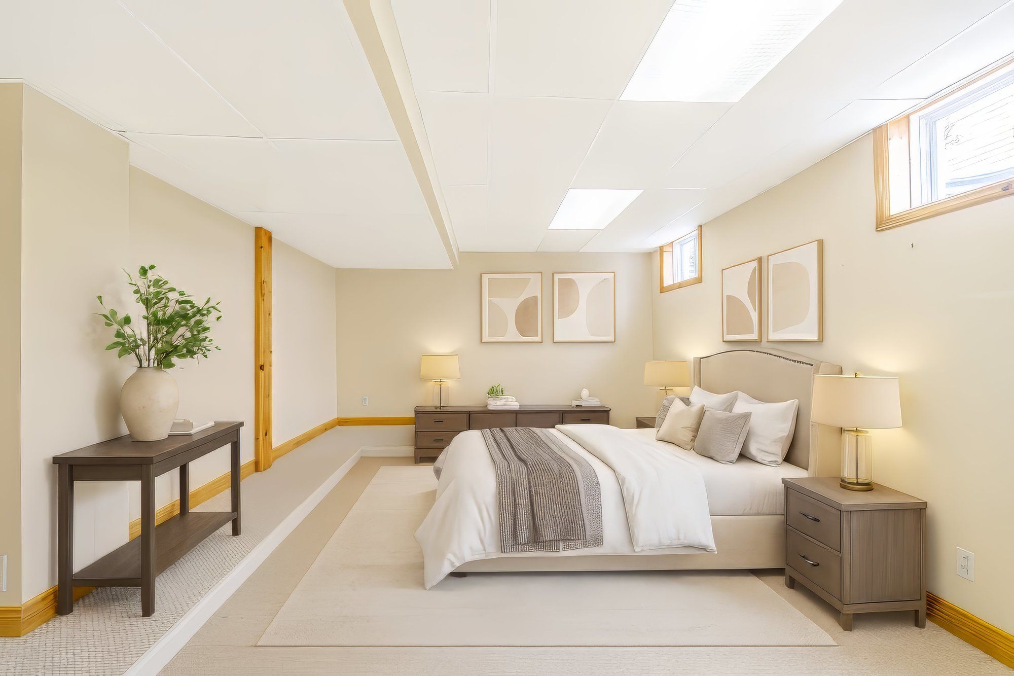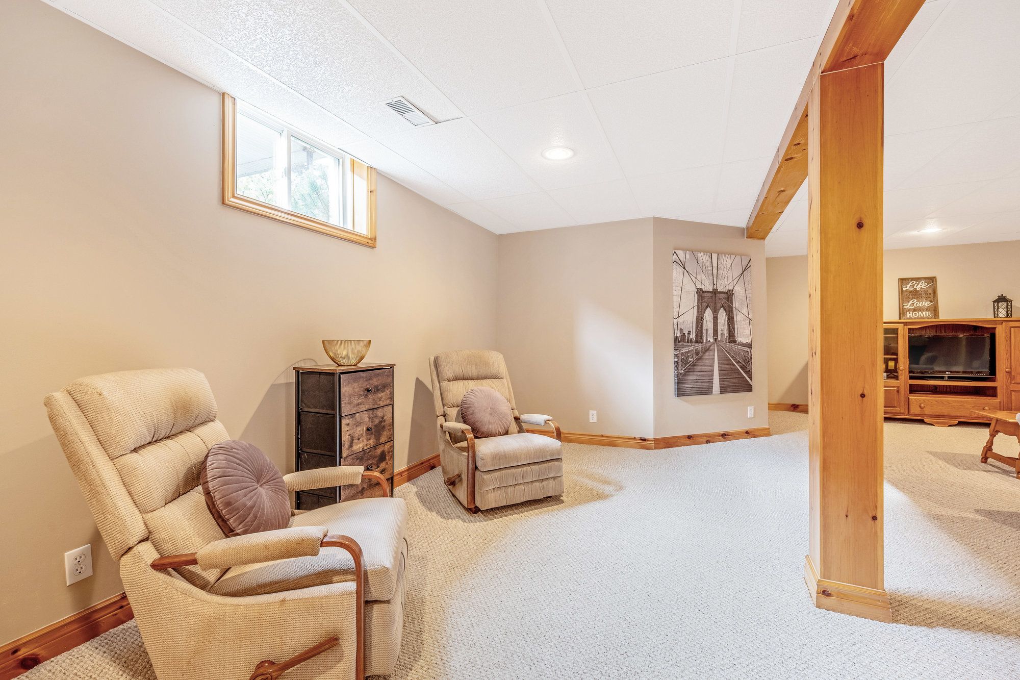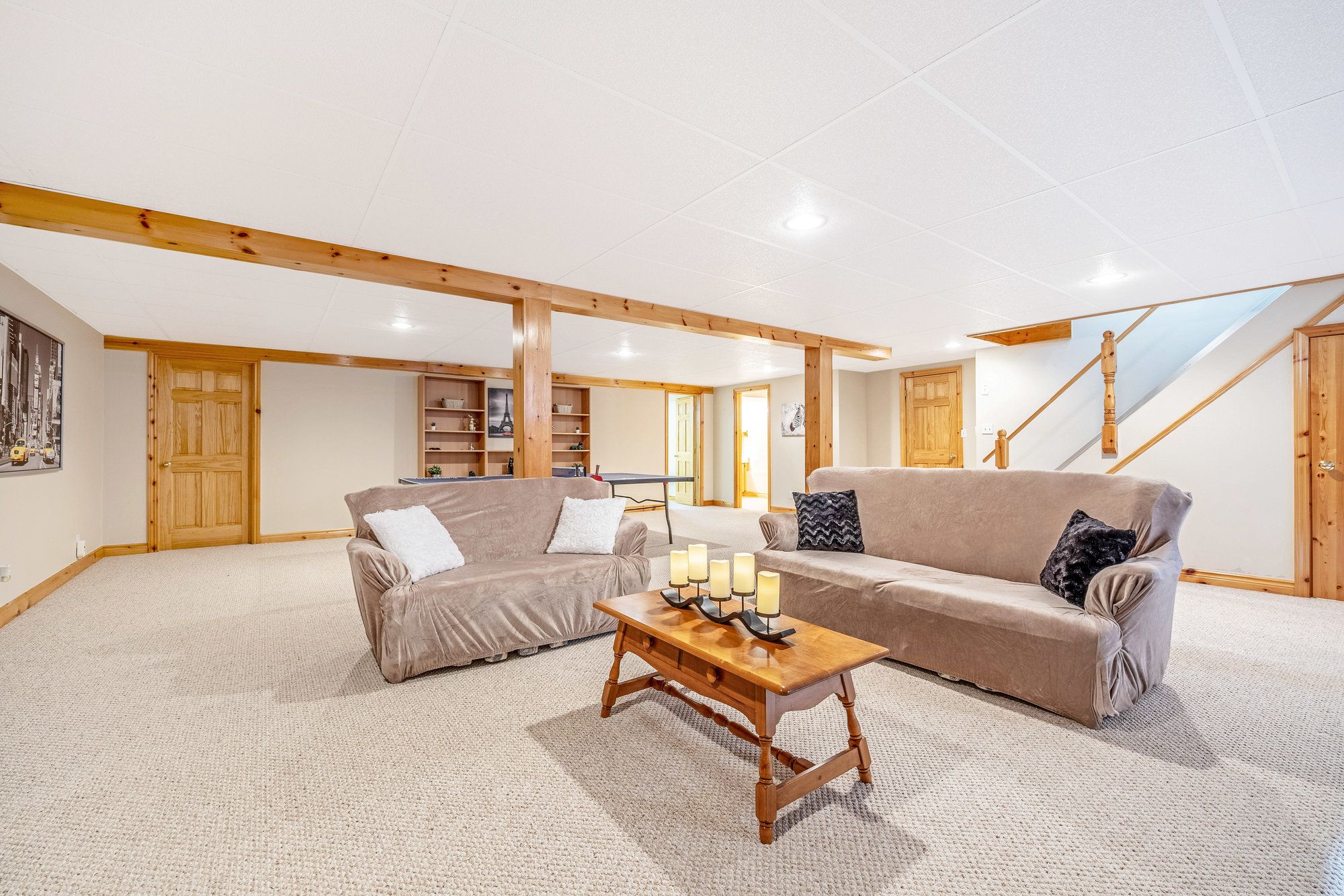 • Lower level includes large recreation room, extra bedroom, and bathroom.