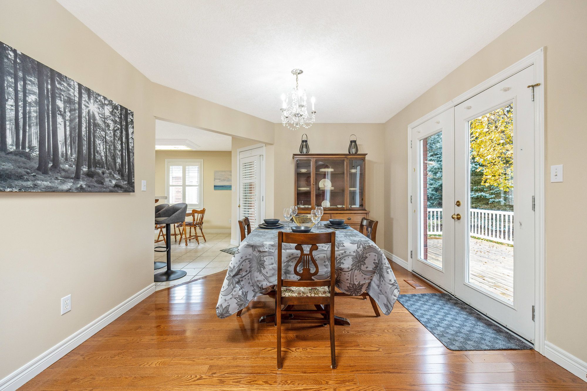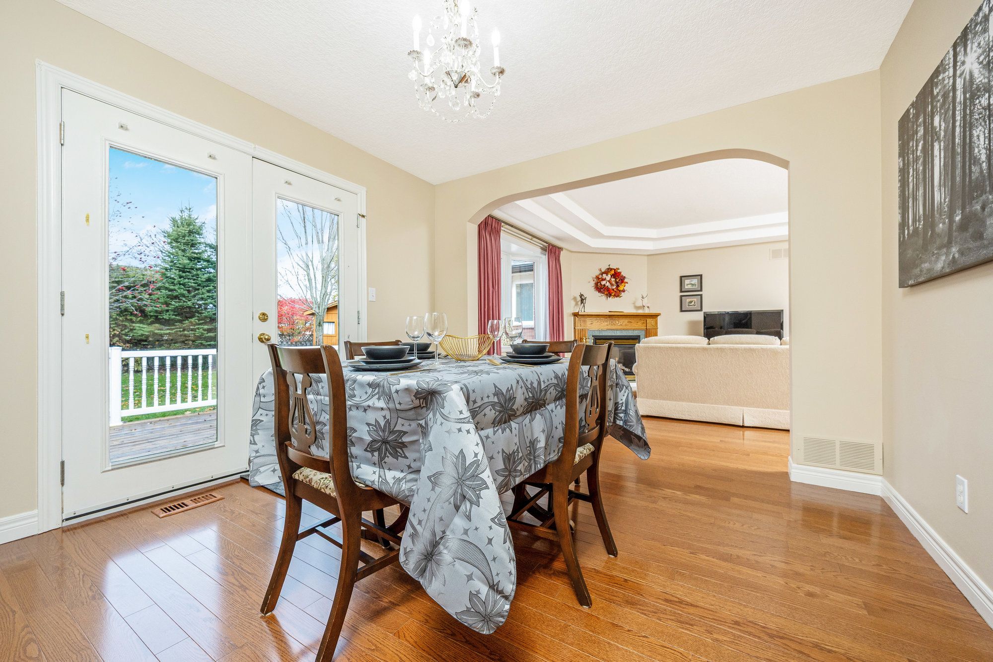 • Main floor features hardwood floors, gas fireplace, and versatile dining areas.