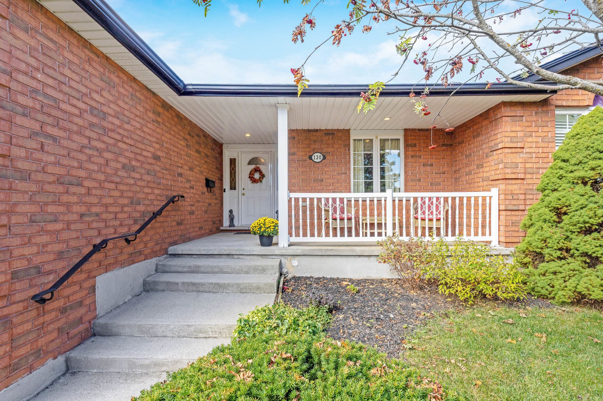 Welcome to 120 bernardi, nestled on a quiet, mature street, this charming all-brick bungalow has been lovingly maintained by its original owners since it was built in 2000. The main floor features a warm and inviting living room with hardwood floors and a gas fireplace, along with both a formal dining room and a bright dinette area. There are three main-floor bedrooms and two full bathrooms, including a spacious primary suite complete with a 4-piece ensuite and walk-in closet. Main floor laundry adds everyday convenience, and thoughtful accessibility features include a stairlift in the garage for easy entry into the home, as well as an additional stairlift to the basement. The lower level offers an expansive, open-concept recreation room finished with berber carpet, along with a generous fourth bedroom and a 3-piece bath-a comfortable and flexible space for guests or family. The backyard is a peaceful retreat, offering excellent privacy and a large newer wood deck ideal for outdoor enjoyment. The location is highly desirable, just steps from valentino park and within close proximity to harris mill public school. This is a beautifully cared-for property that truly shows 10+.