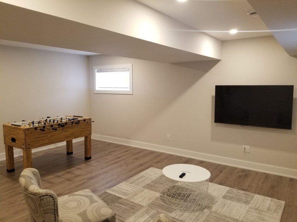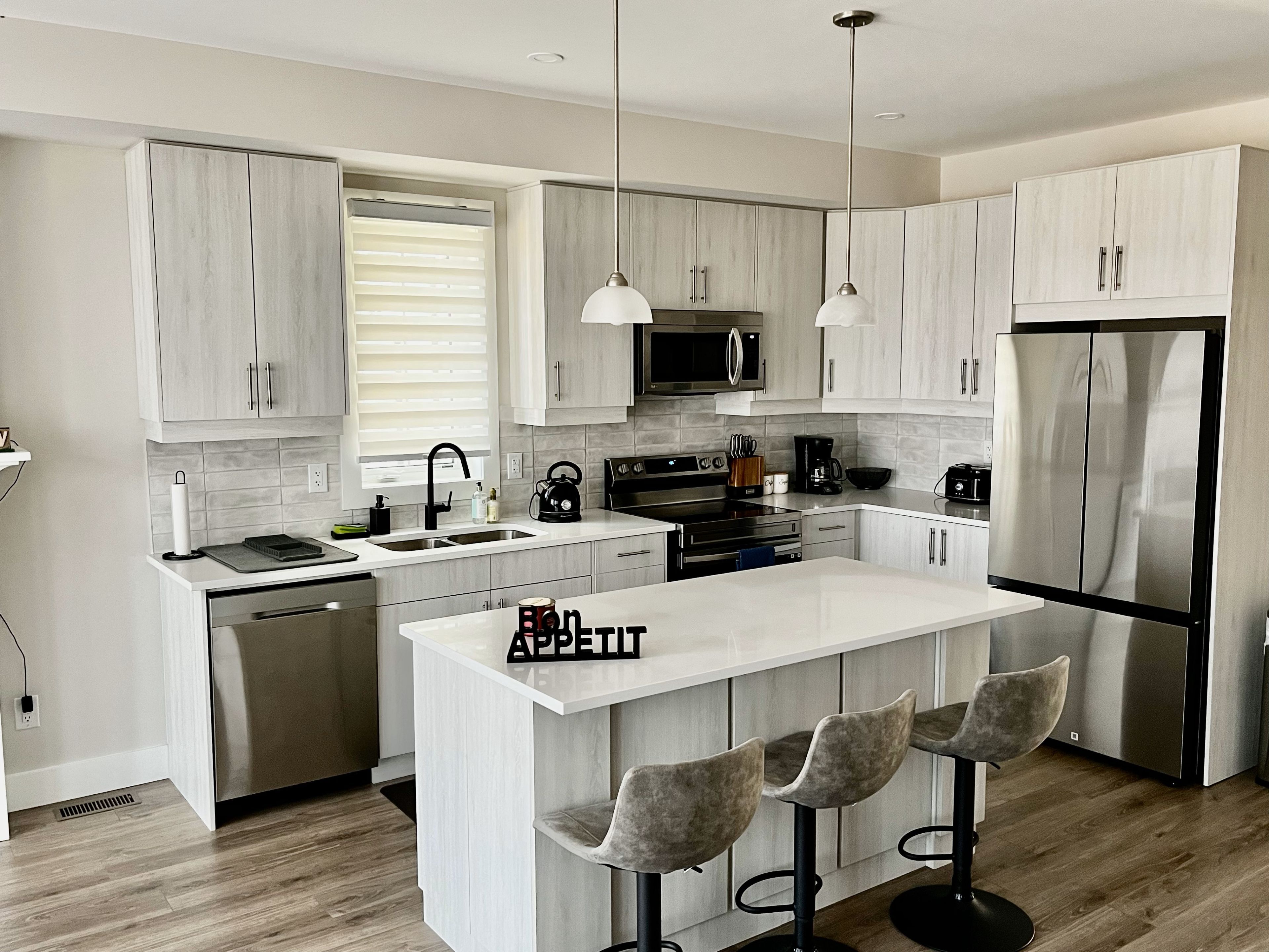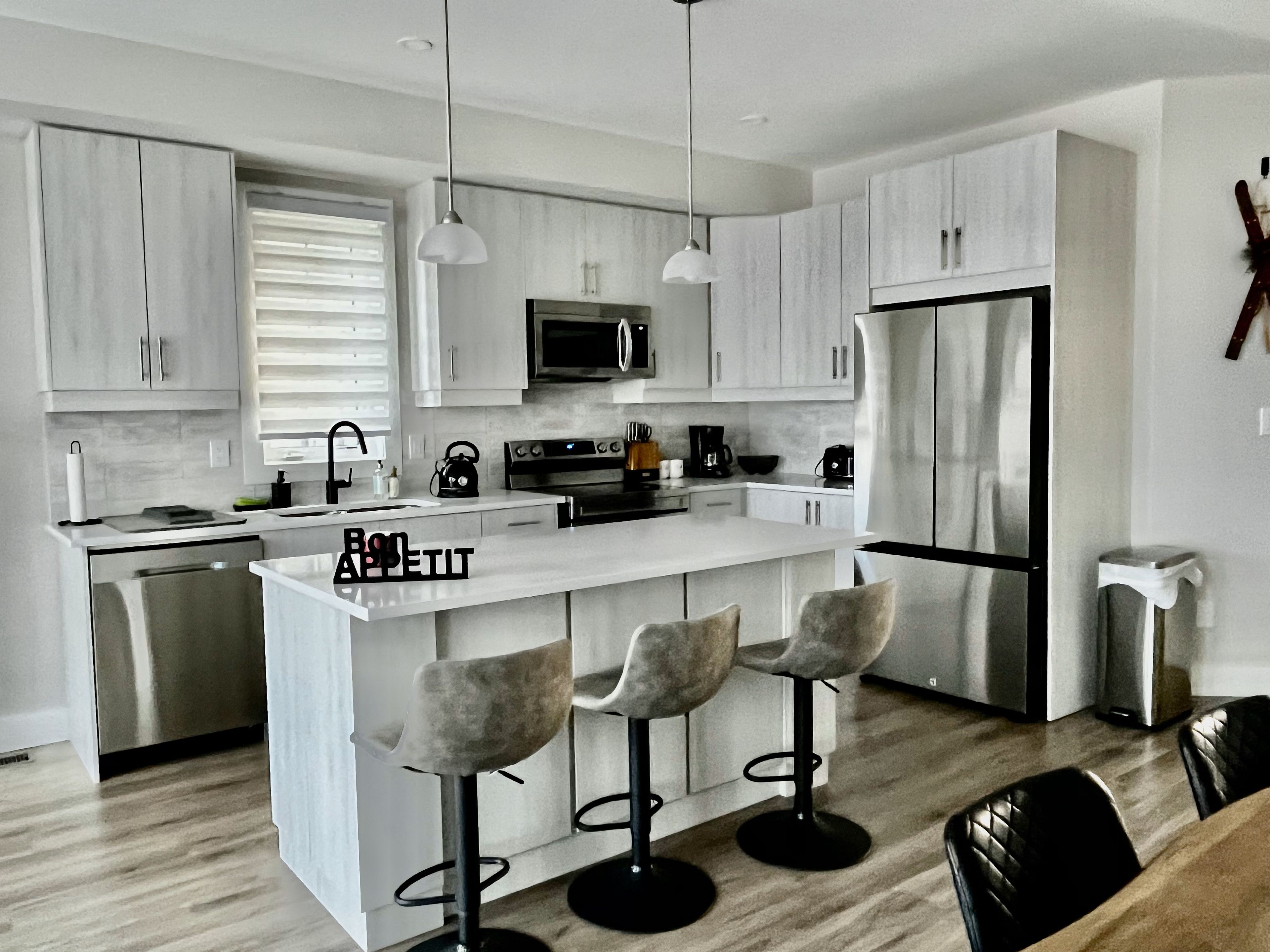 Escape to windfall this spring! This fully furnished 3-bedroom home in a sought-after location is ready for turnkey annual living. Walk to the heart of the village, bike the trails along georgian bay, or explore the many nearby attractions-all just minutes from windfall. The home is fully furnished and features a primary bedroom with ensuite, a second bedroom with a double bed, a third bedroom with bunk beds, upper-floor laundry, and a fully equipped open-concept kitchen and living area. Step outside to the deck with bbq or enjoy a game of foosball in the rec room. The lockable garage provides storage for sporting equipment, and there is parking for two cars. High-speed internet is available for working from home. Rental includes access to the "shed," the community outdoor pools (hot & cold), sauna, and exercise room. Utilities and departure cleaning are extra. No pets or smoking (allergies). Short term seasonal rental will be considered
