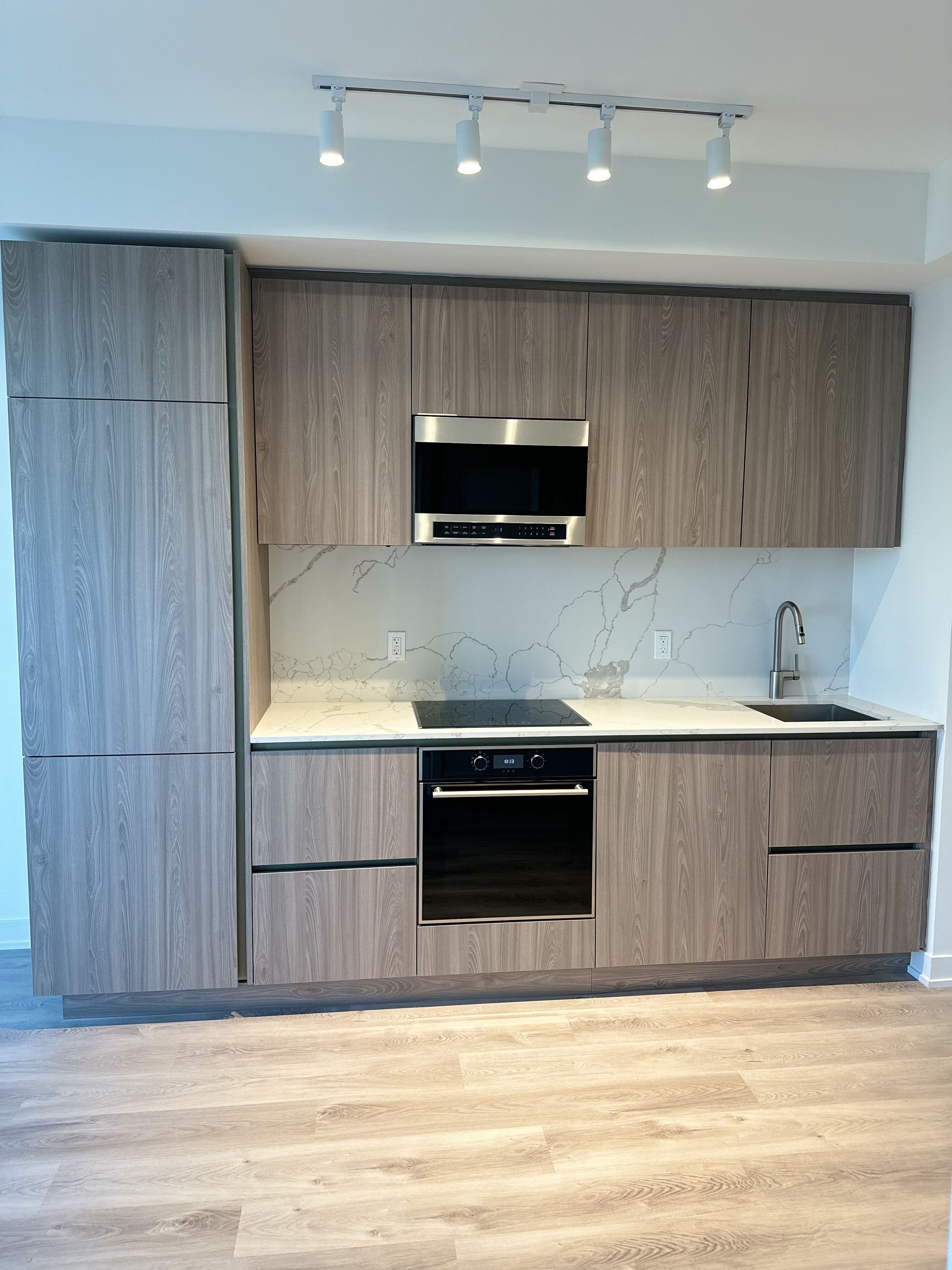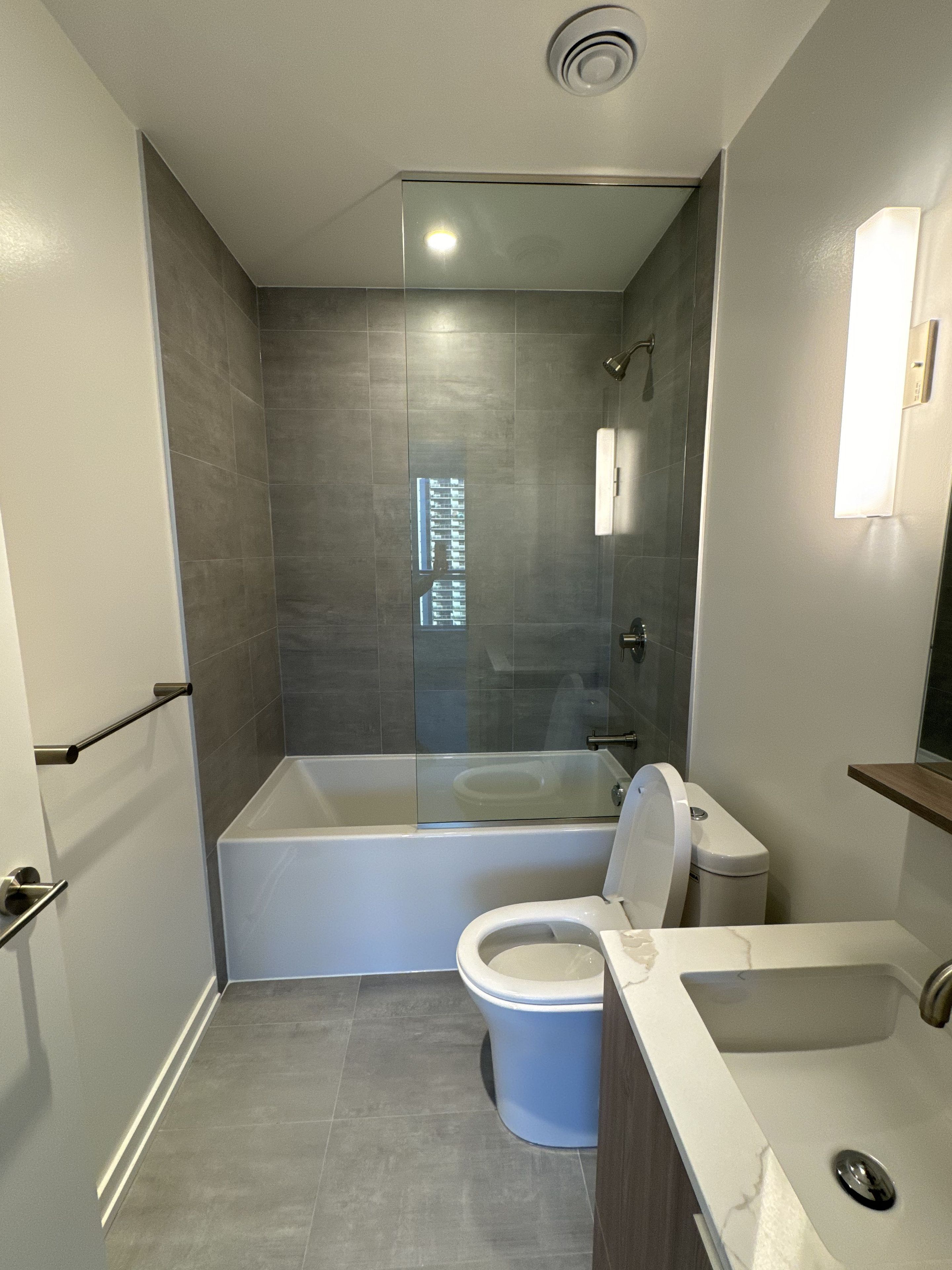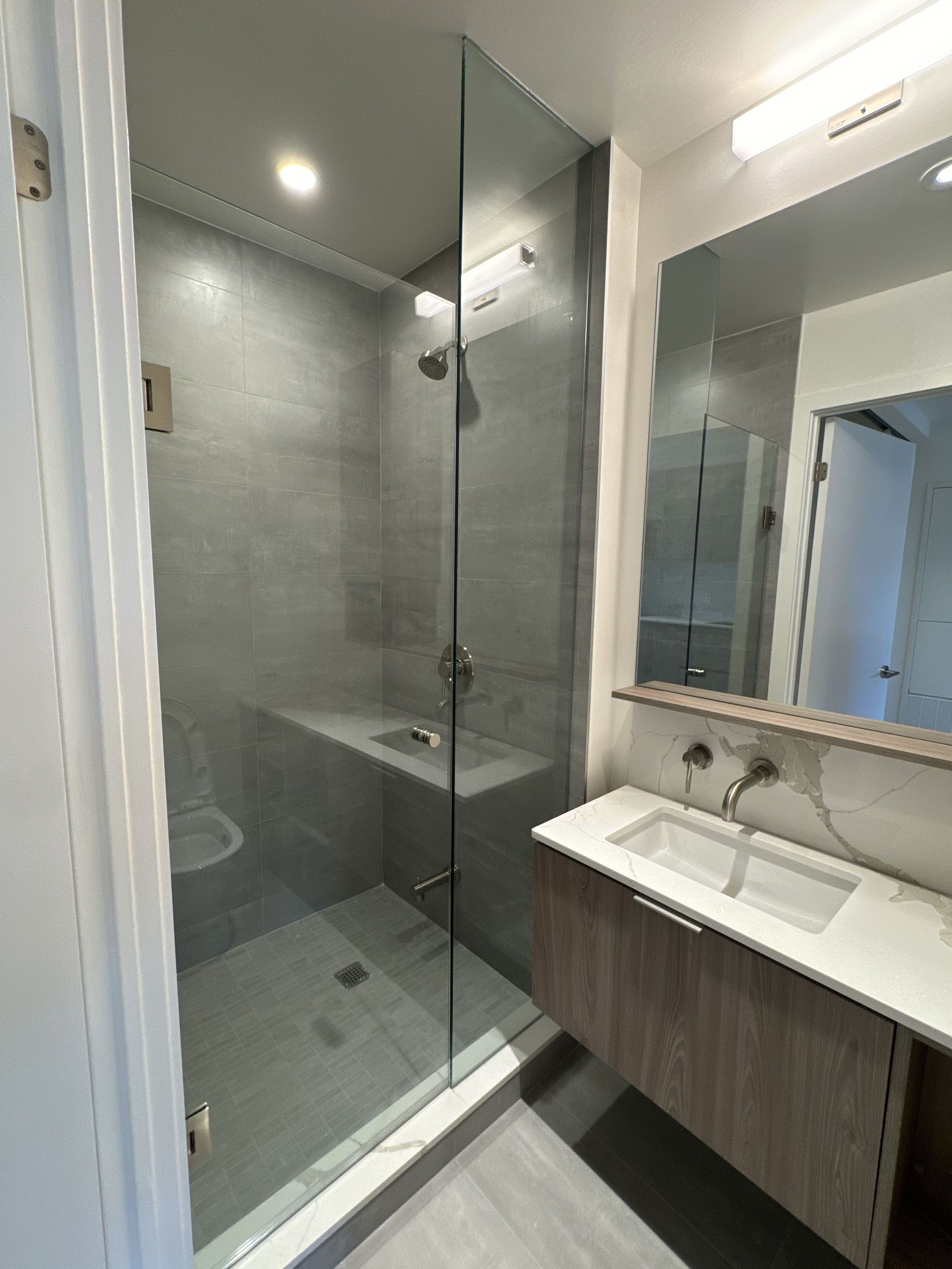 • 9 ft ceilings and sleek finishes add a modern touch.