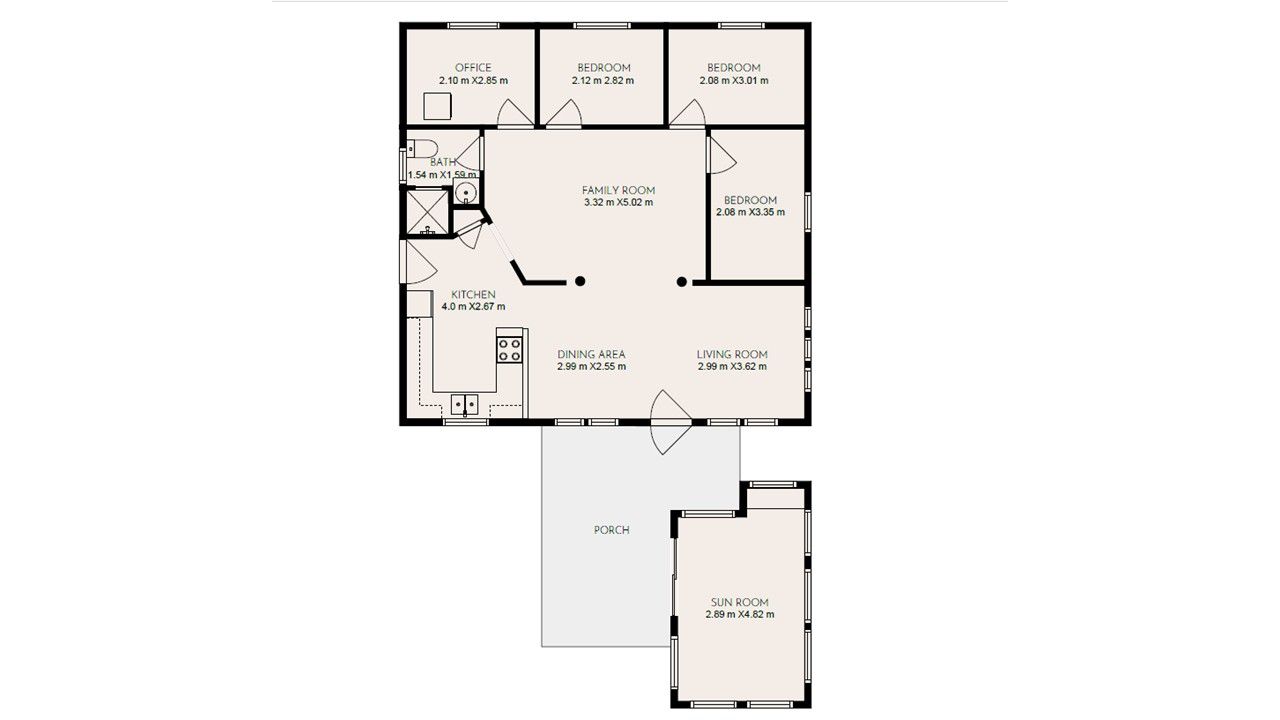 • Flexible office space easily converts to a fourth bedroom.