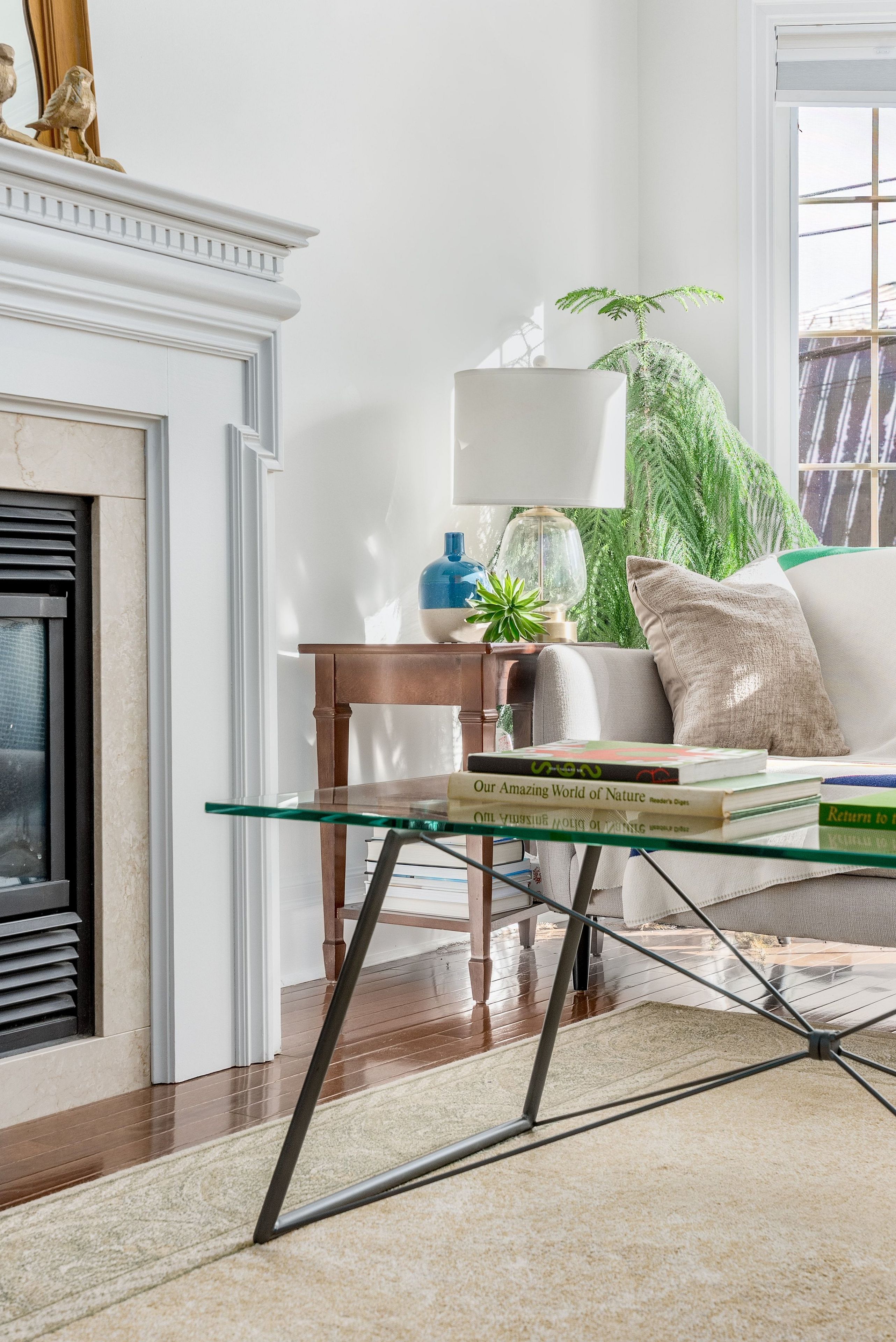 • Bright living room with gas fireplace and open kitchen leading to a large deck.