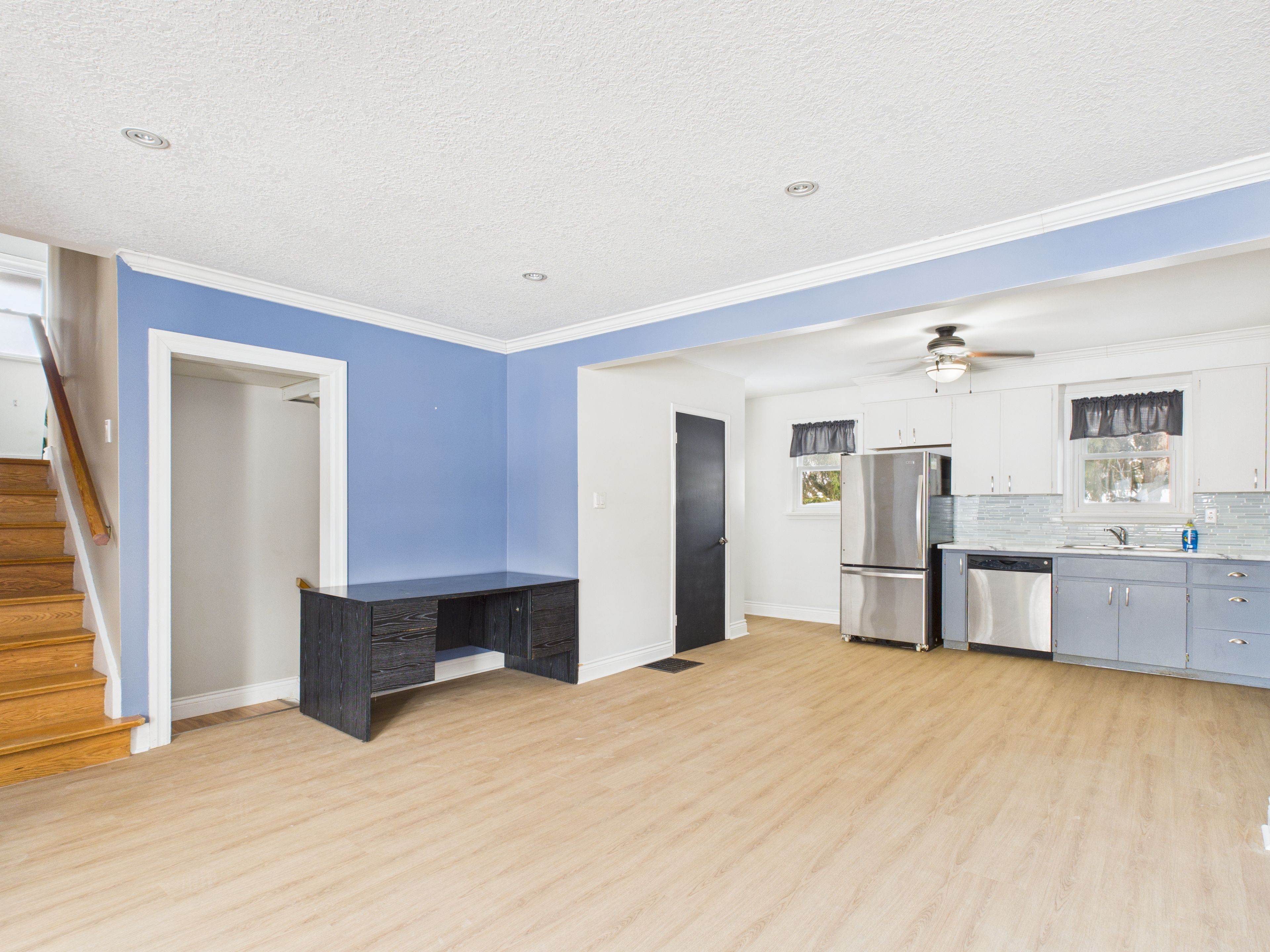 Welcome to a home that makes small-town living feel easy. Located within walking distance to downtown walkerton, this charming detached split-entry home offers comfort, functionality, and an inviting open-concept layout that first-time buyers and downsizers will appreciate. The main floor features a bright, open kitchen and living area where updated flooring creates a clean, modern feel while still maintaining warmth and character. The living room is anchored by a cozy gas fireplace, making it the perfect space to relax or host family and friends. Two generously sized bedrooms and a full bathroom complete the upper level, offering a practical and well-laid-out design. Downstairs, the finished basement adds valuable living space with a second gas fireplace, ideal for a family room, home office, or hobby area. A convenient half bath and a spacious laundry room add everyday functionality, while direct access to the attached single-car garage makes daily routines simple year-round. Outside, the partially fenced yard offers room to enjoy the outdoors, featuring a concrete patio with railing, a utility shed, and plenty of space for gardening, relaxing, or entertaining. The private driveway accommodates an additional vehicle. Built in 1965 with roof shingles replaced approximately six years ago, this home has been thoughtfully maintained and updated where it matters most. Its walkable location near amenities, parks, the river, and the walkerton hospital makes it an ideal choice for buyers looking to enjoy the convenience and charm of a close-knit community. This is an excellent opportunity to step into homeownership in walkerton at an approachable price point.