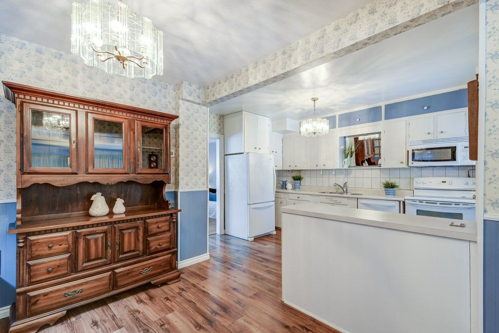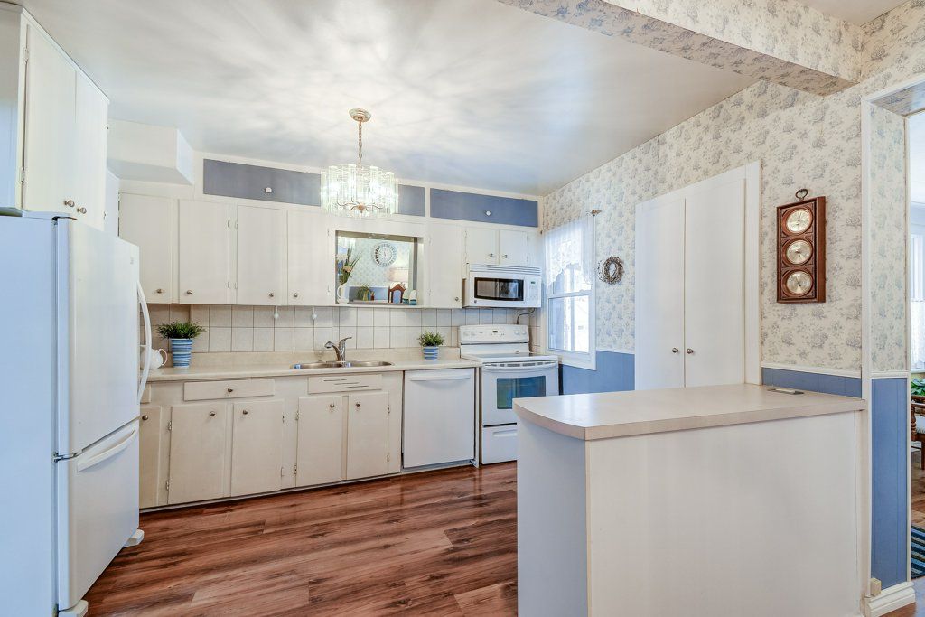 • Large eat-in kitchen and bright dining room overlook the backyard.