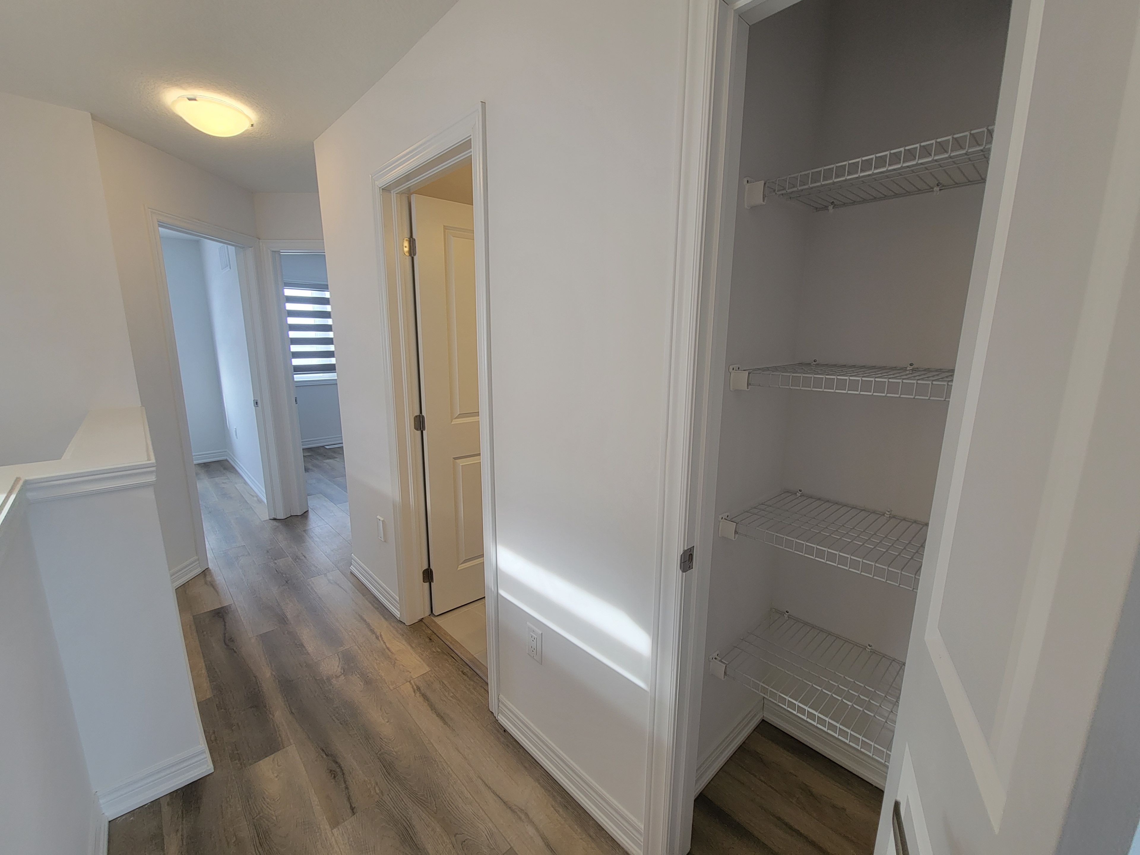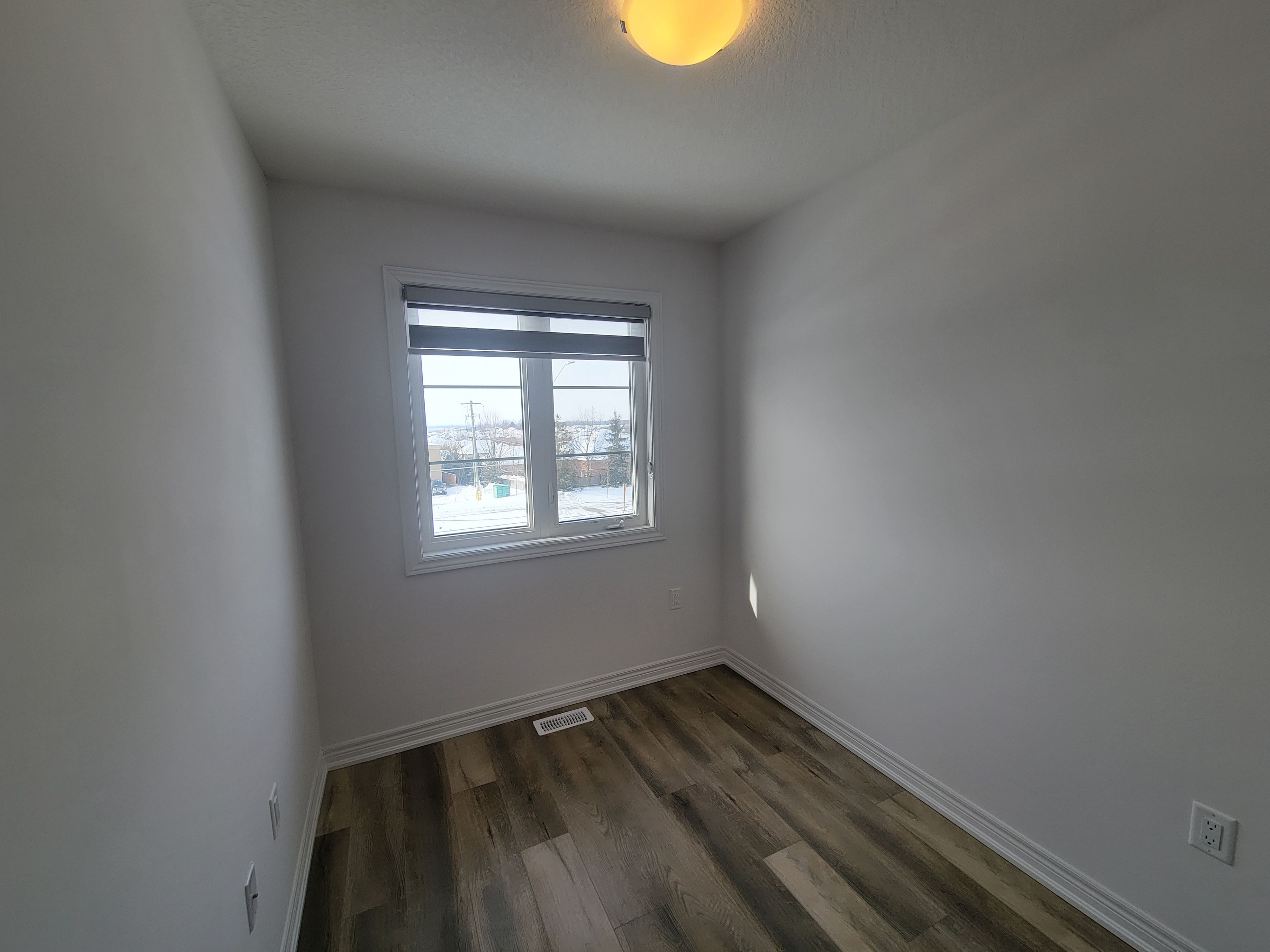 Newer end-unit with unobstructed west views! South facing end unit wall provides tons of natural sunlight! Upsize from your condo with 3-storey living. 3 bedrooms upstairs with 2 bathrooms, main floor has ensuite washer/dryer, kitchen, deck, and powder room, plus den on main floor could be used as a bedroom, office, playroom, or mudroom with double french doors to the backyard. 2. 5 bathrooms total. Modern kitchen with upgraded stainless steel appliances. Tons of storage; pantry space and garage storage room. Upgrades throughout including no carpet in bedrooms, kitchen backsplash, upgraded appliances, wifi app enabled garage opener, and glass shower door. Great location near brant sports complex, schools, parks, the grand river, downtown paris, plaza across the street (restaurants, daycare, medical, dollarama, home hardware, etc) and quick access to hwy 403 (commutable to brantford, hamilton, kitchener)! Move-in ready; sit on the deck and watch the sunset views!