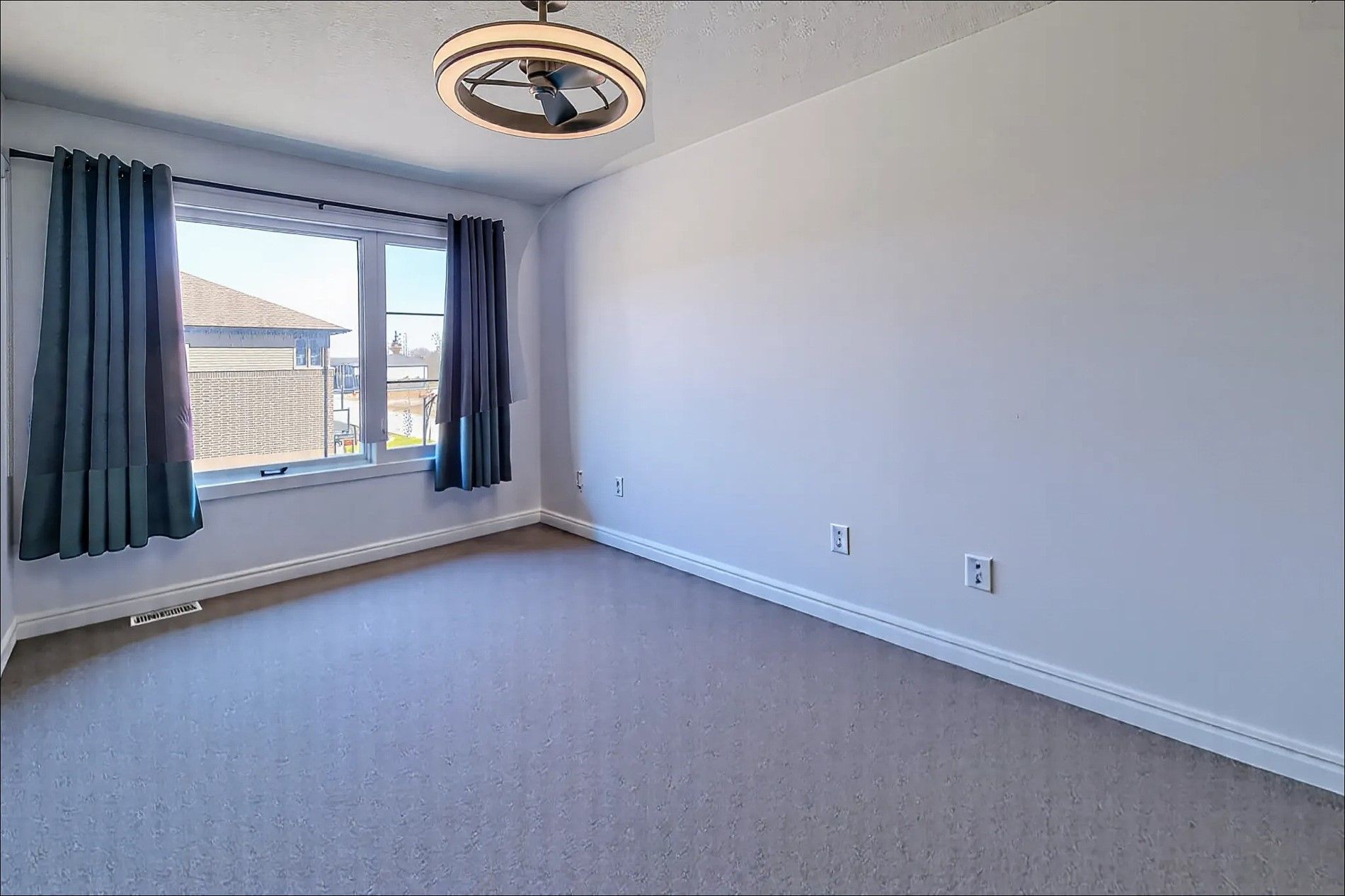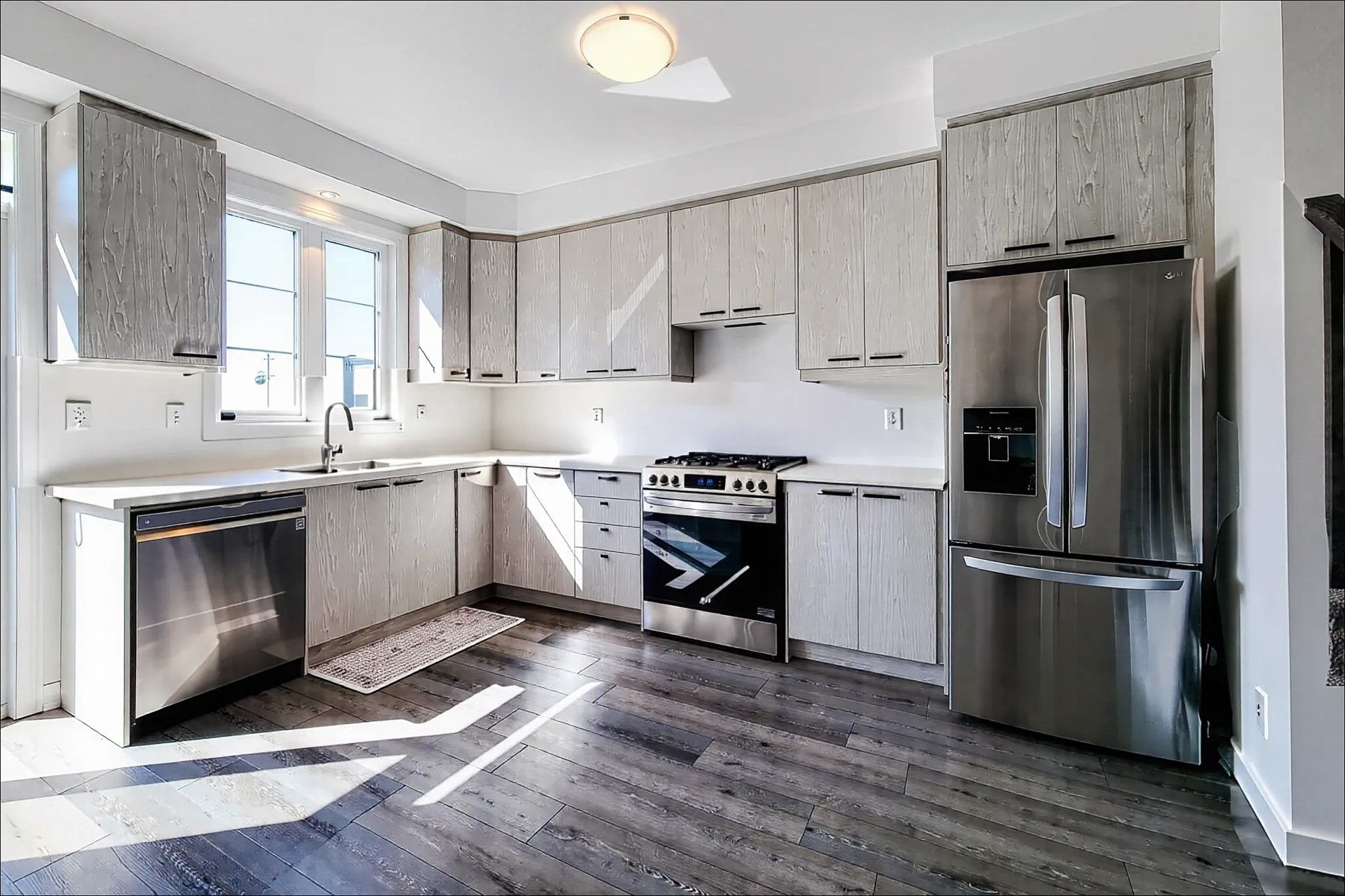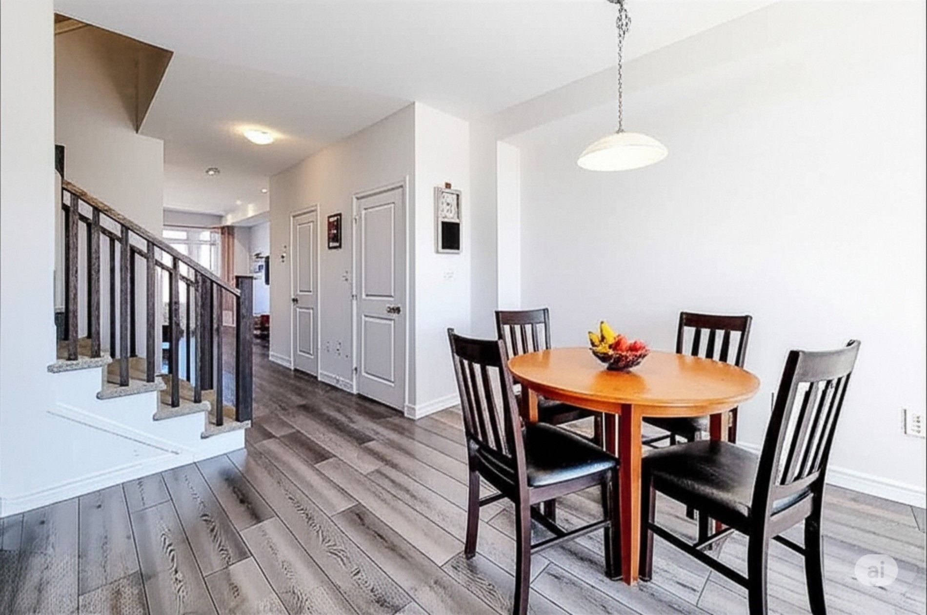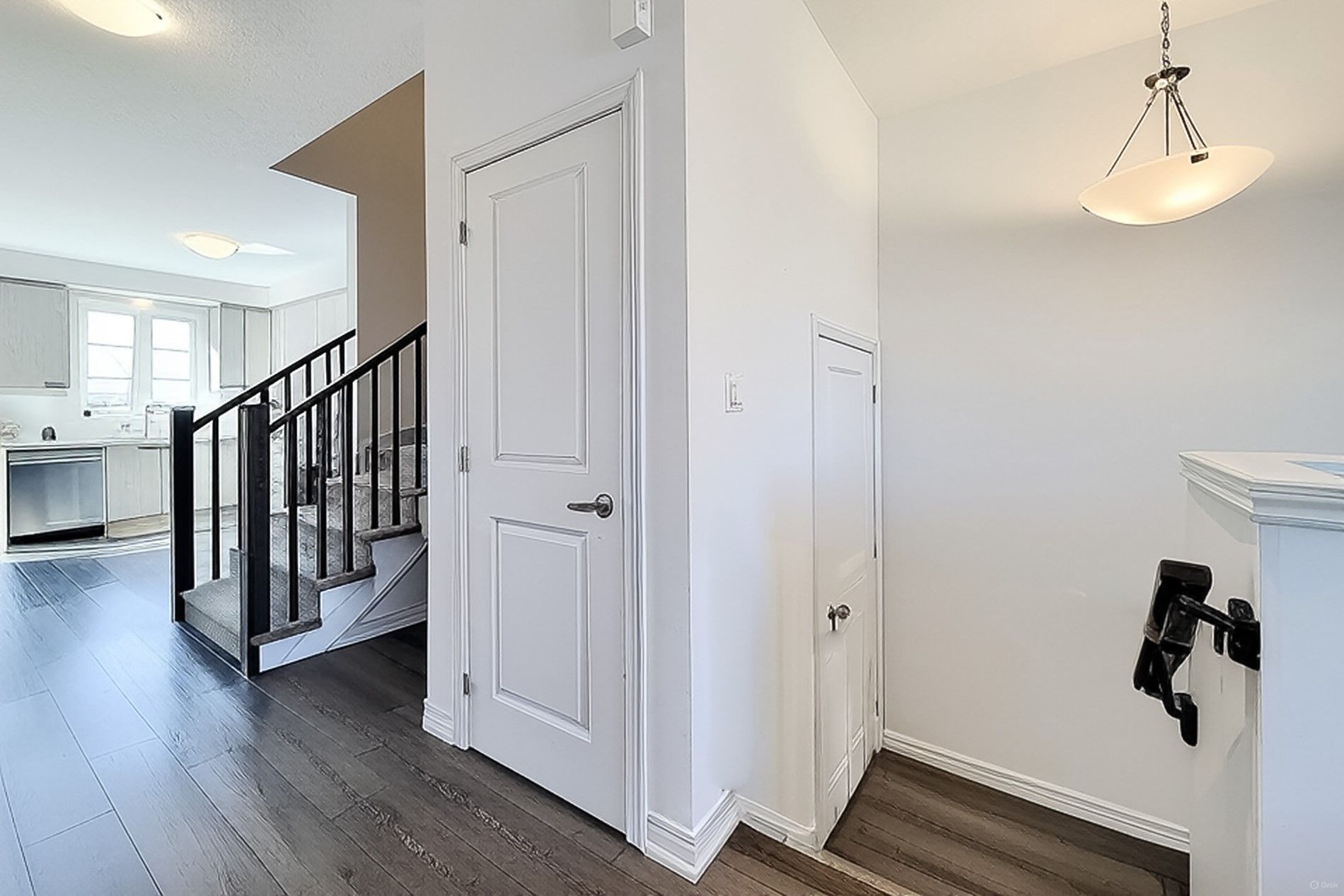 This stunning, newer three level town house, begins with great curb appeal. Built in 2023 with quality materials of classic brick and stone, nestled in a picturesque area. Small town intimacy, rich character with a suburban vibe and a growing community, are just a few of the points on a long list of cultured features. Green spaces abound, lion's park with pool and playgrounds, cycling trails, cross country skiing, riverside walking with direct access to downtown. Schools, cobblestone streets, cafes, boutiques and shopping, encompass a compelling blend of new residential comfort and timeless appeal in a growing community. Close to highways for commuters, this home is in a quiet, family friendly neighbourhood. A stylish interior with a fabulous layout, this spacious open concept modern design is filled with natural light. This home has over 1500 sq ft of living space with upgraded contemporary finishes. The main floor features a chef inspired eat in kitchen with quartz counters, stainless steel appliances, extended cabinetry and a private balcony. The large family room is perfect for quiet relaxation or entertaining. The primary bedroom is generous in size, offering a walk-in closet and spa-like 3 piece ensuite. Two additional bedrooms share a modern 4 piece bath. Extras, like main floor powder and laundry rooms, a tankless hot water heater and water softener, add to the convenience of everyday living. The finished basement includes a multi-purpose room, suitable for an office, recreation room, play area or 4th bedroom. This leads to a walkout, with a fenced backyard and patio, facing the forest. This home is perfect for first time buyers, those looking to downsize or savvy investors.