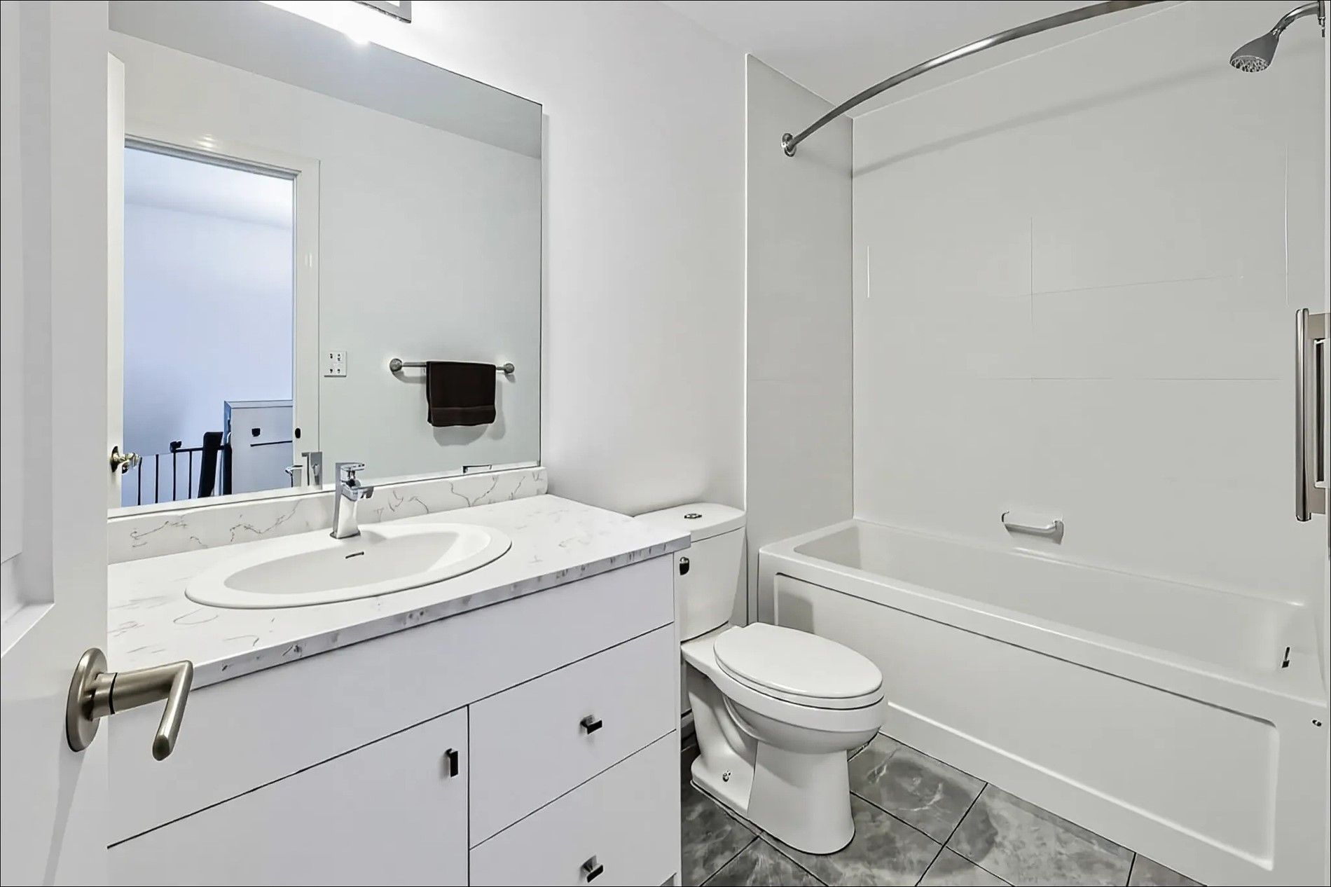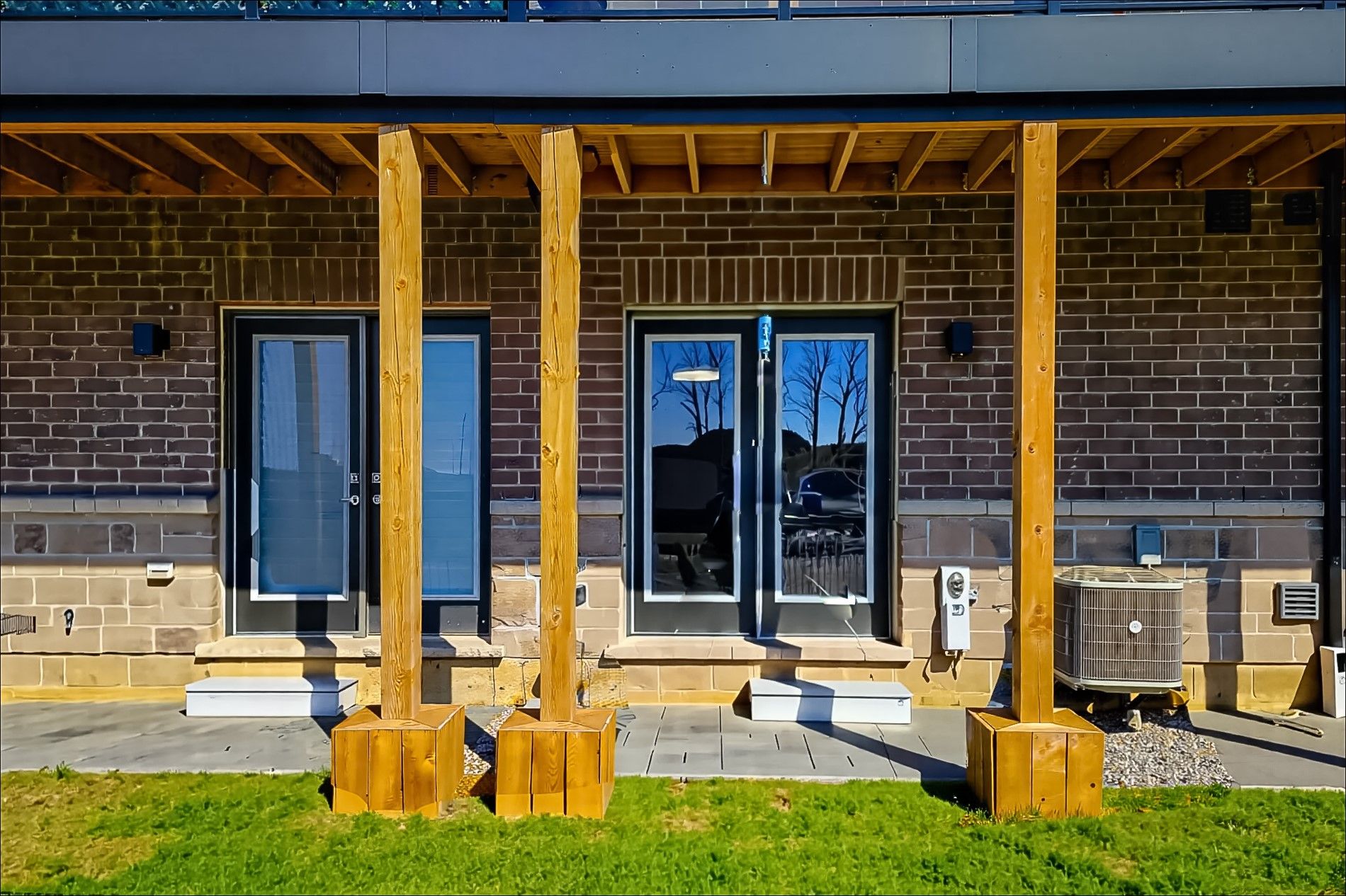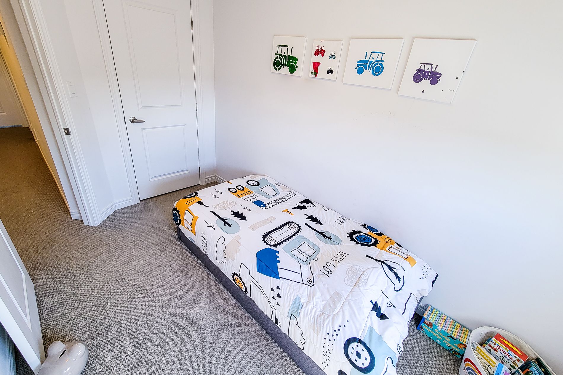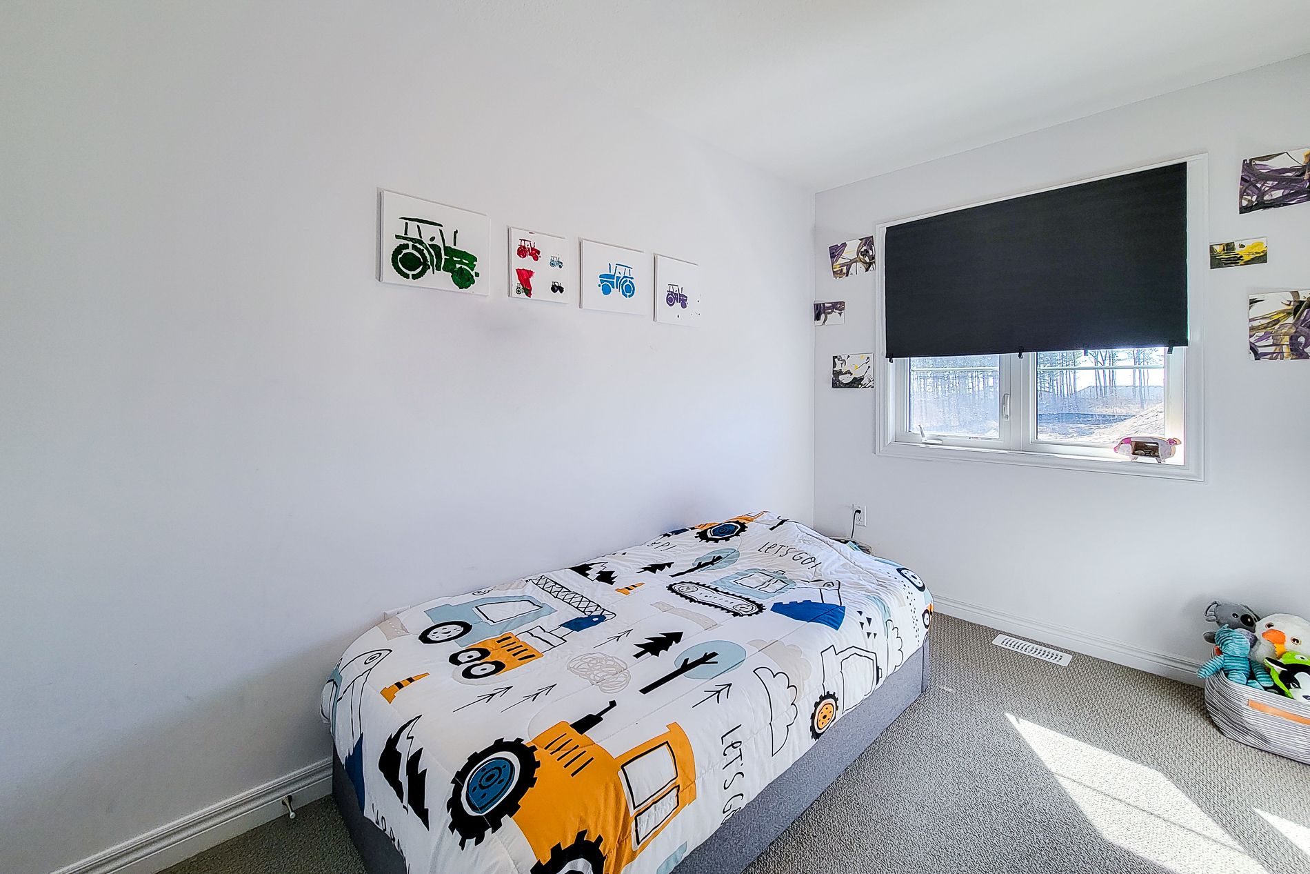 This stunning, newer three level town house, begins with great curb appeal. Built in 2023 with quality materials of classic brick and stone, nestled in a picturesque area. Small town intimacy, rich character with a suburban vibe and a growing community, are just a few of the points on a long list of cultured features. Green spaces abound, lion's park with pool and playgrounds, cycling trails, cross country skiing, riverside walking with direct access to downtown. Schools, cobblestone streets, cafes, boutiques and shopping, encompass a compelling blend of new residential comfort and timeless appeal in a growing community. Close to highways for commuters, this home is in a quiet, family friendly neighbourhood. A stylish interior with a fabulous layout, this spacious open concept modern design is filled with natural light. This home has over 1500 sq ft of living space with upgraded contemporary finishes. The main floor features a chef inspired eat in kitchen with quartz counters, stainless steel appliances, extended cabinetry and a private balcony. The large family room is perfect for quiet relaxation or entertaining. The primary bedroom is generous in size, offering a walk-in closet and spa-like 3 piece ensuite. Two additional bedrooms share a modern 4 piece bath. Extras, like main floor powder and laundry rooms, a tankless hot water heater and water softener, add to the convenience of everyday living. The finished basement includes a multi-purpose room, suitable for an office, recreation room, play area or 4th bedroom. This leads to a walkout, with a fenced backyard and patio, facing the forest. This home is perfect for first time buyers, those looking to downsize or savvy investors.
