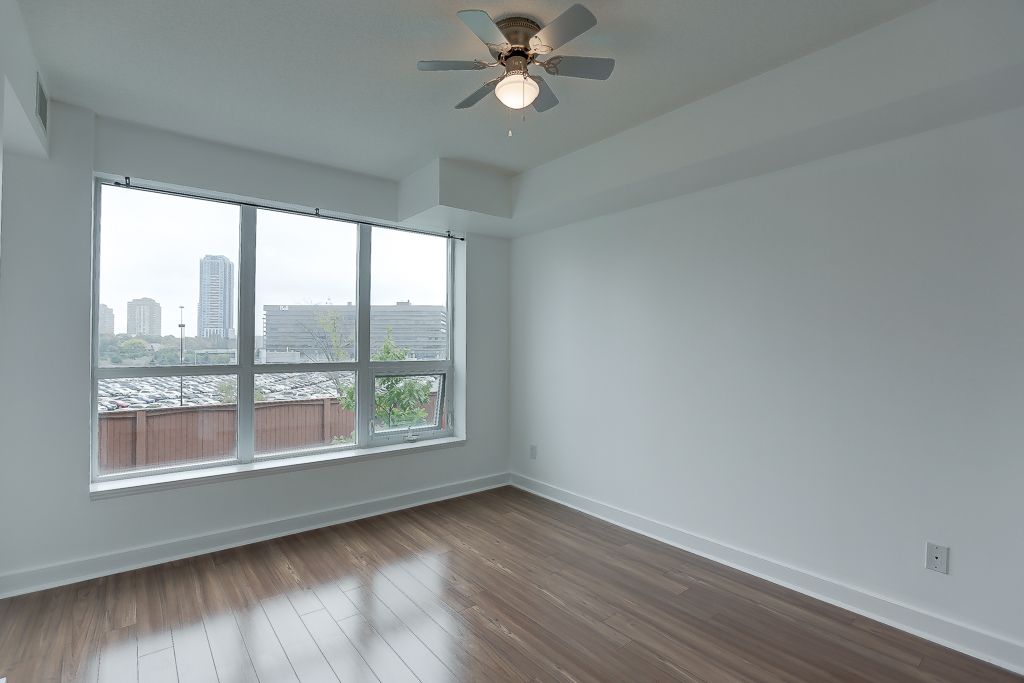 Bright, spacious 1-bdrm + den unit with an unobstructed south view for maximum sun exposure! Boasting gorgeous premium laminate flooring throughout, granite counters & s/s kitchen appliances. Easy access to transit, l. R. T. Crosstown, highways, the wonderful shops at don mills, schools, parks & more, simply a great location! And don't forget to check out the f. A. N. T. A. S. T. I. C building amenities!