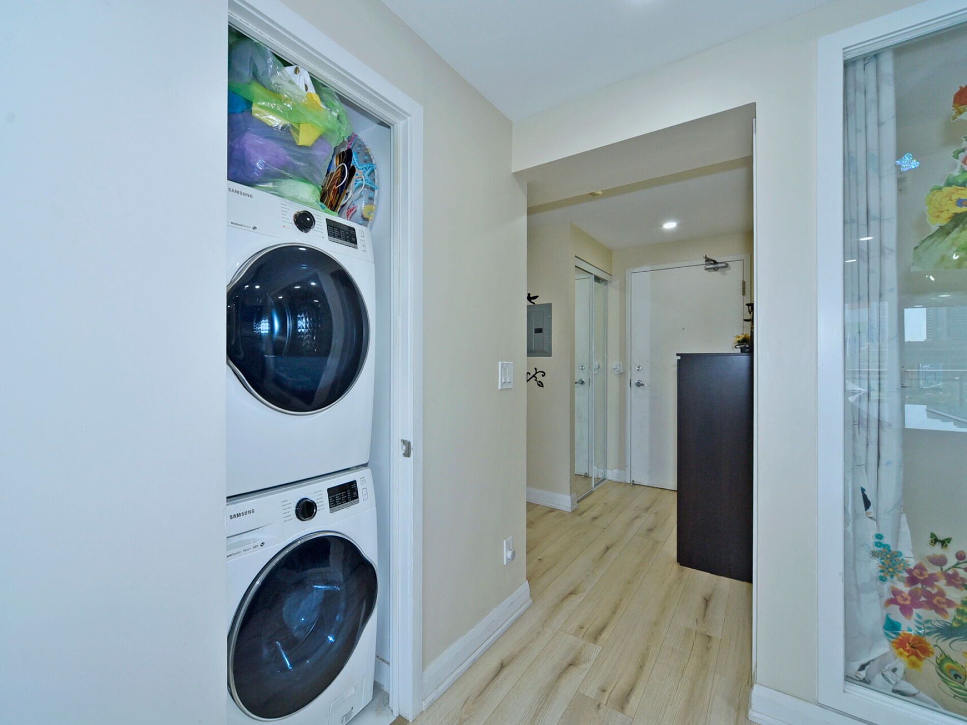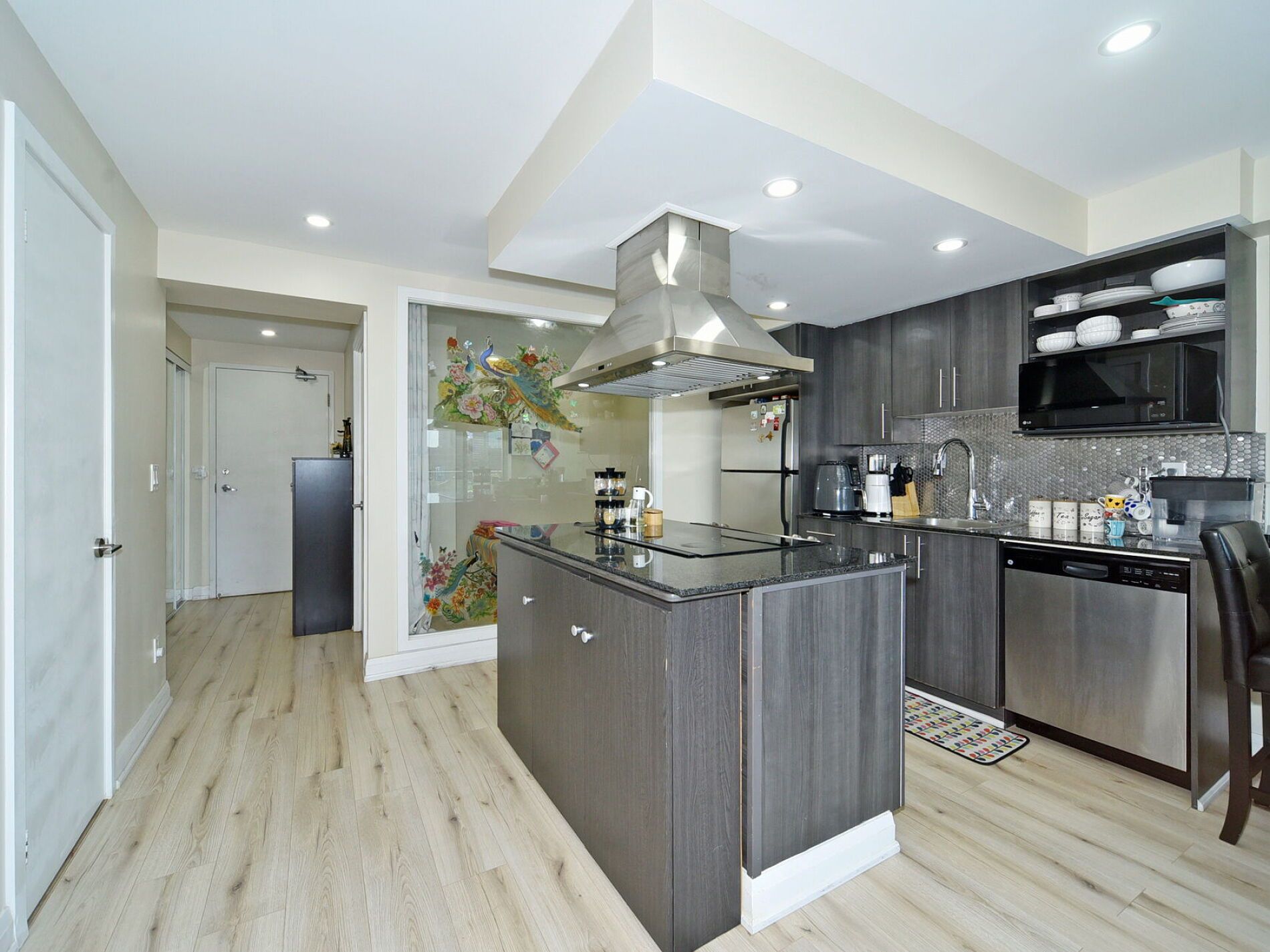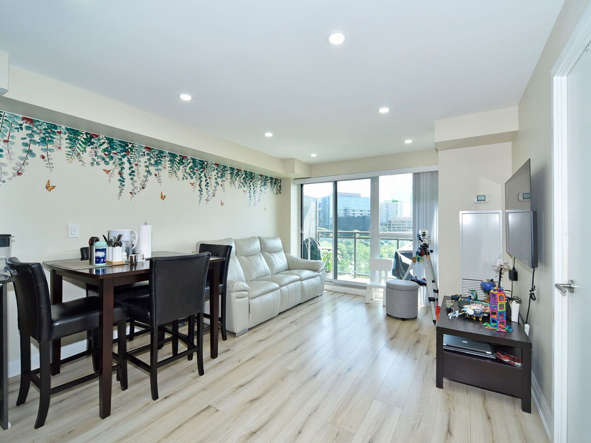 Spacious condo w/cn tower & city views from your couch. Reno'd in 2021 w/pot lights, new laminates throughout, freshly painted. This 2+1 bed, 2 full bath unit has lots of space to live, work from home & play. Combined living/dining, w/o to balcony w/lots of light from south facing exposure. Unique kitchen design w/full-sized s/s appliances, granite counters & centre island. Master bedroom w/ laminate & 4 pc ensuite. 2nd bedroom w/glass wall. Park, trail & amenities, osc, upcoming lrt close by, easy access to dvp. Gym, exercise room, swimming pool, sauna, entertainment/game room, media room, party hall, 24*7 concierge, video surveillance.