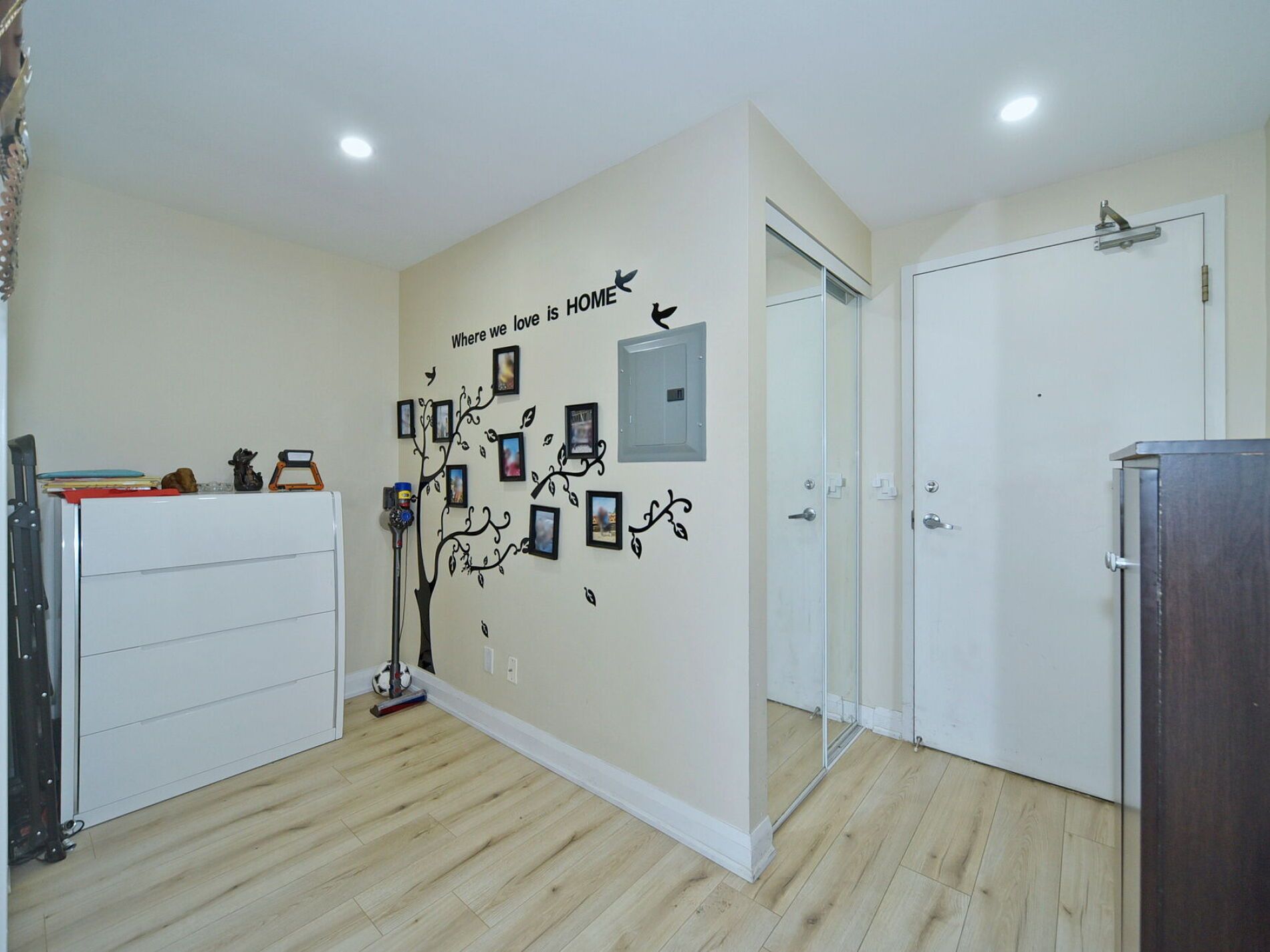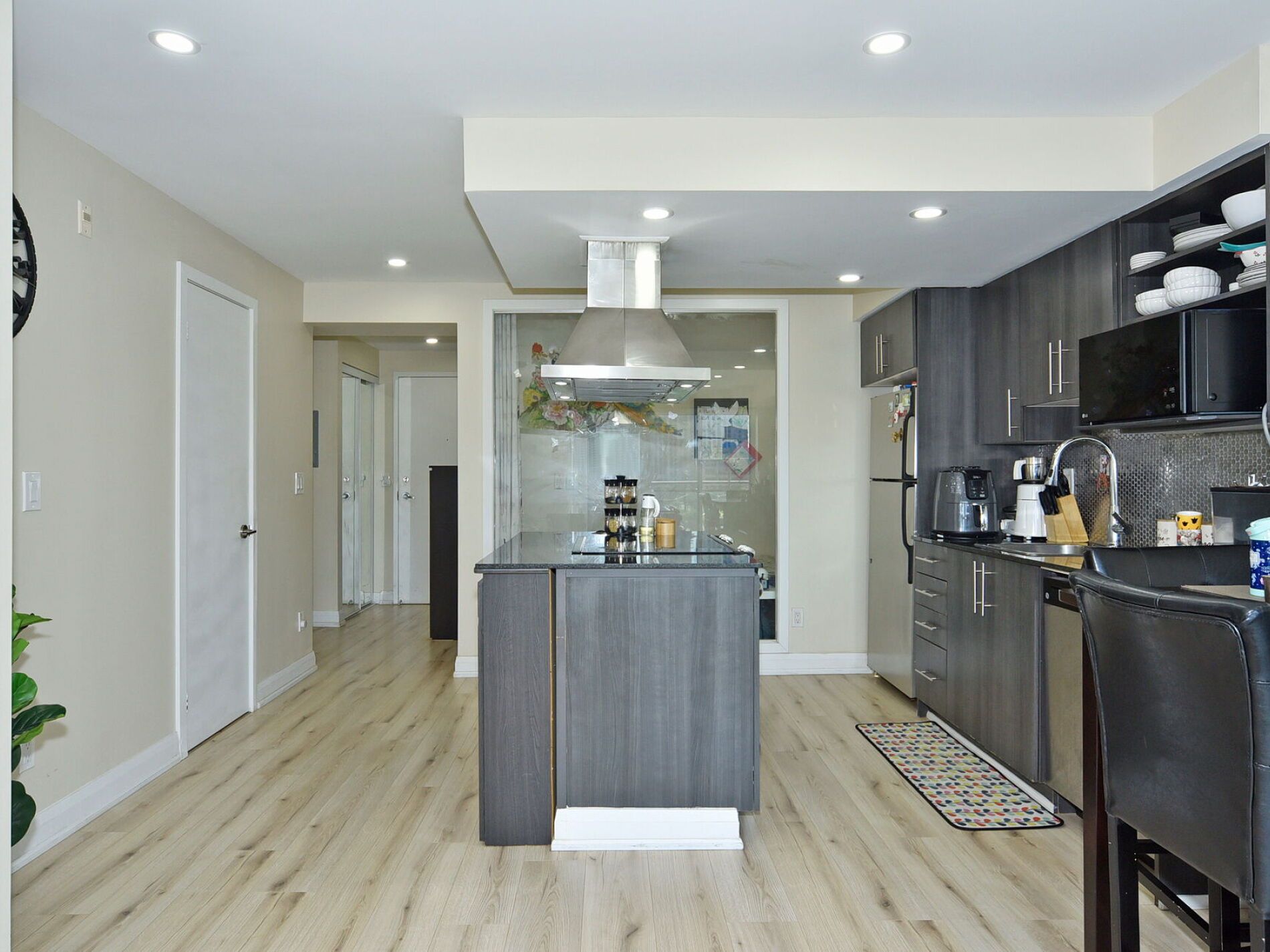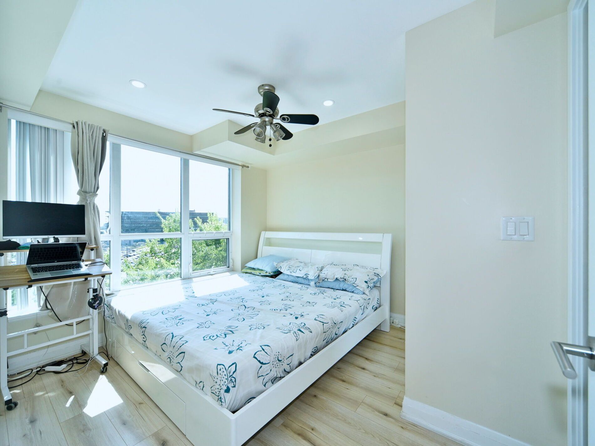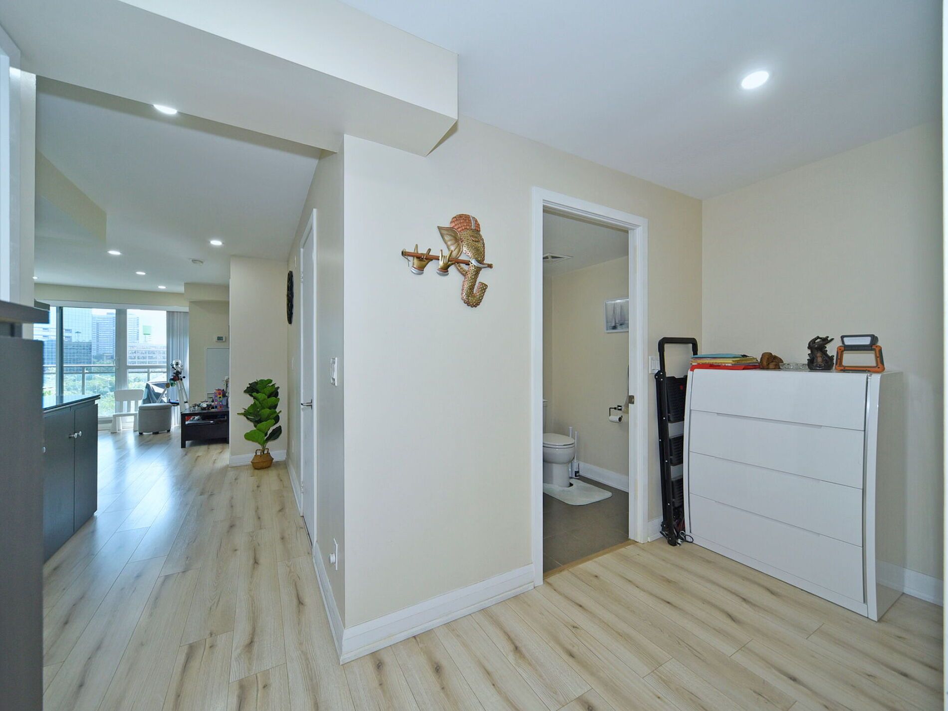 Spacious condo w/cn tower & city views from your couch. Reno'd in 2021 w/pot lights, new laminates throughout, freshly painted. This 2+1 bed, 2 full bath unit has lots of space to live, work from home & play. Combined living/dining, w/o to balcony w/lots of light from south facing exposure. Unique kitchen design w/full-sized s/s appliances, granite counters & centre island. Master bedroom w/ laminate & 4 pc ensuite. 2nd bedroom w/glass wall. Park, trail & amenities, osc, upcoming lrt close by, easy access to dvp. Gym, exercise room, swimming pool, sauna, entertainment/game room, media room, party hall, 24*7 concierge, video surveillance.