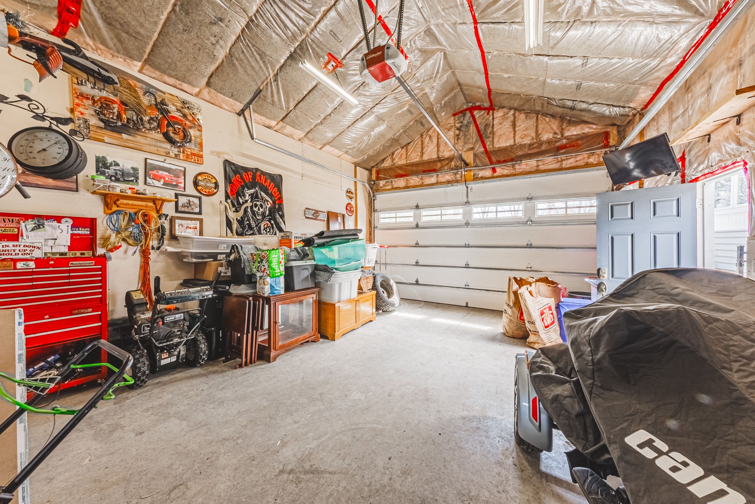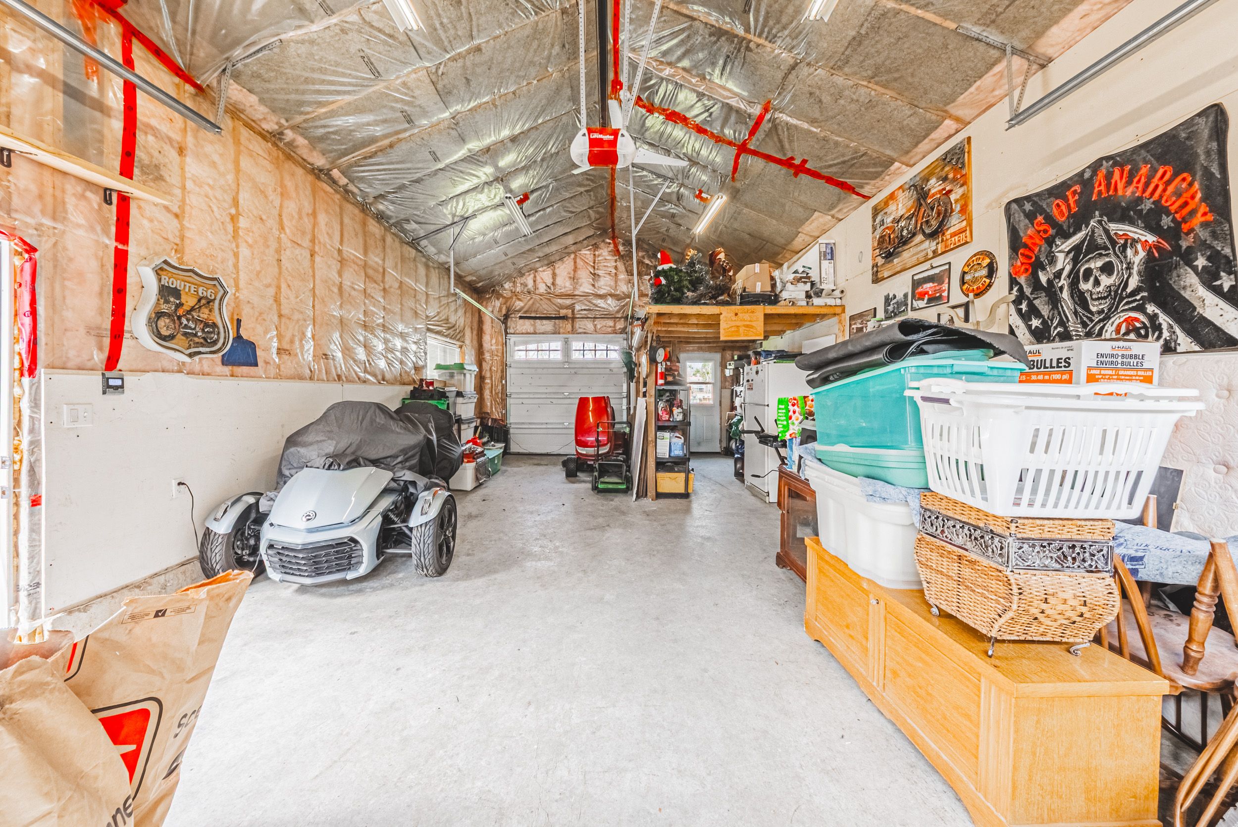 • Oversized garage/workshop with in-floor heating and extra storage space.