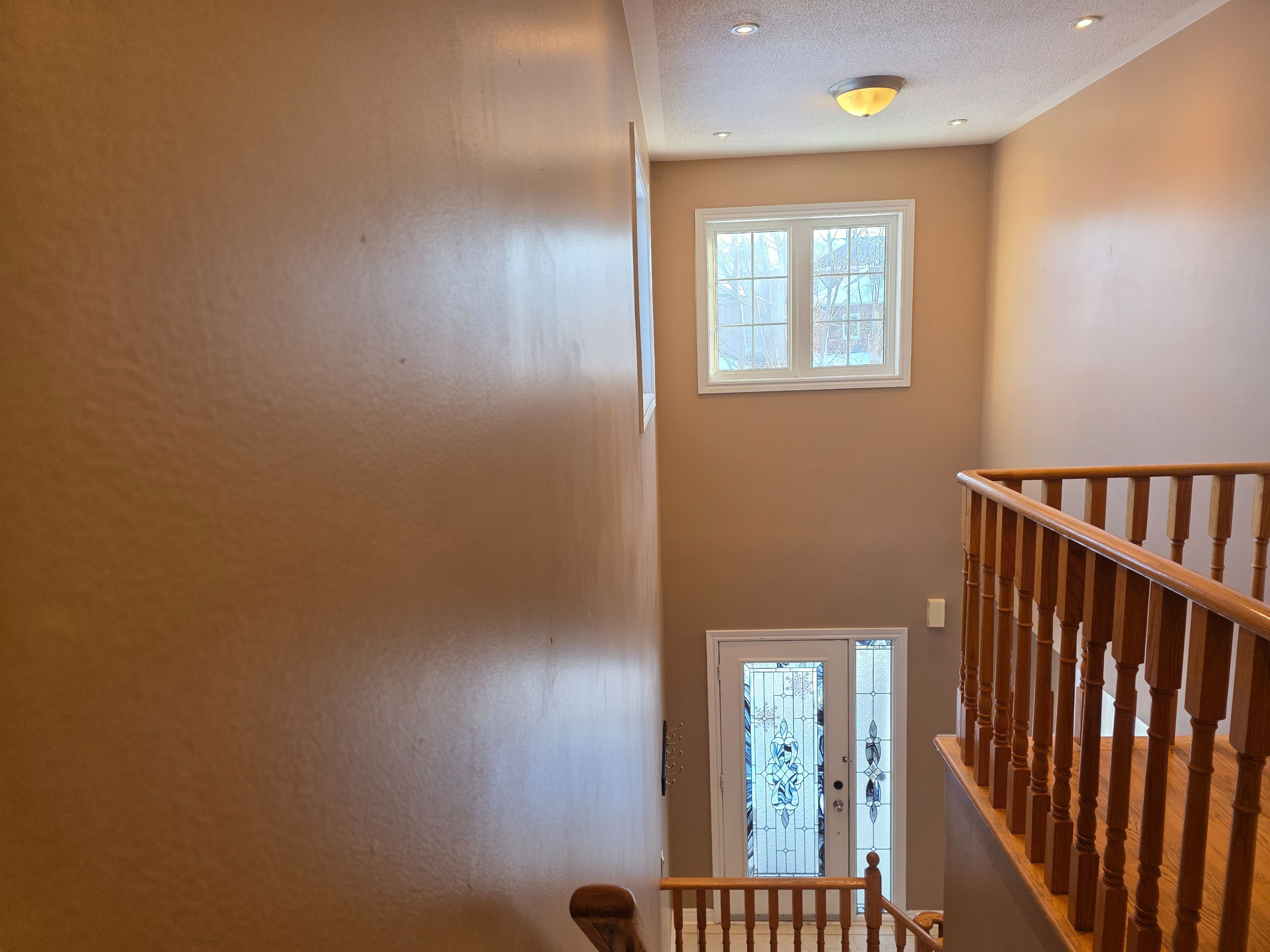 Well-kept practical design single family home facing south in quiet neighbourhood by the most major commercial district in town, stained glass main door entry, hardwood/ceramic floor thruout, m/f 9'ceiling, ceramic foyer open to 2/f with potlighting & windows, granite eat-in kitchen walkout stone patio, hardwood living/dining with side entrance thru double garage double driveway, oak stair to 2/f with 3 bedroom & 2 bathroom with marble counters.