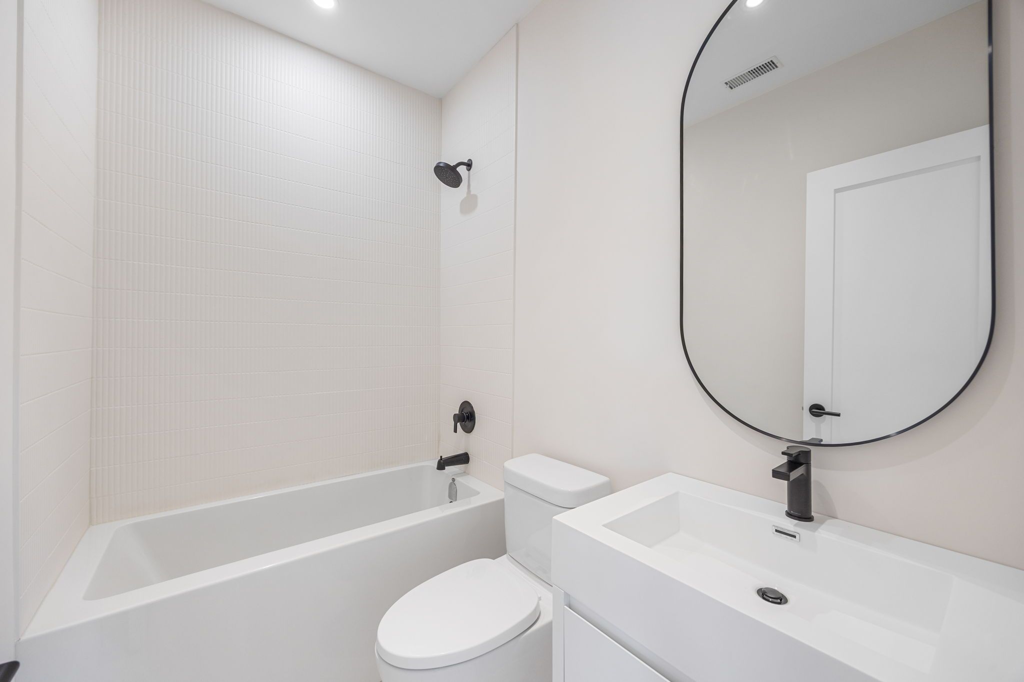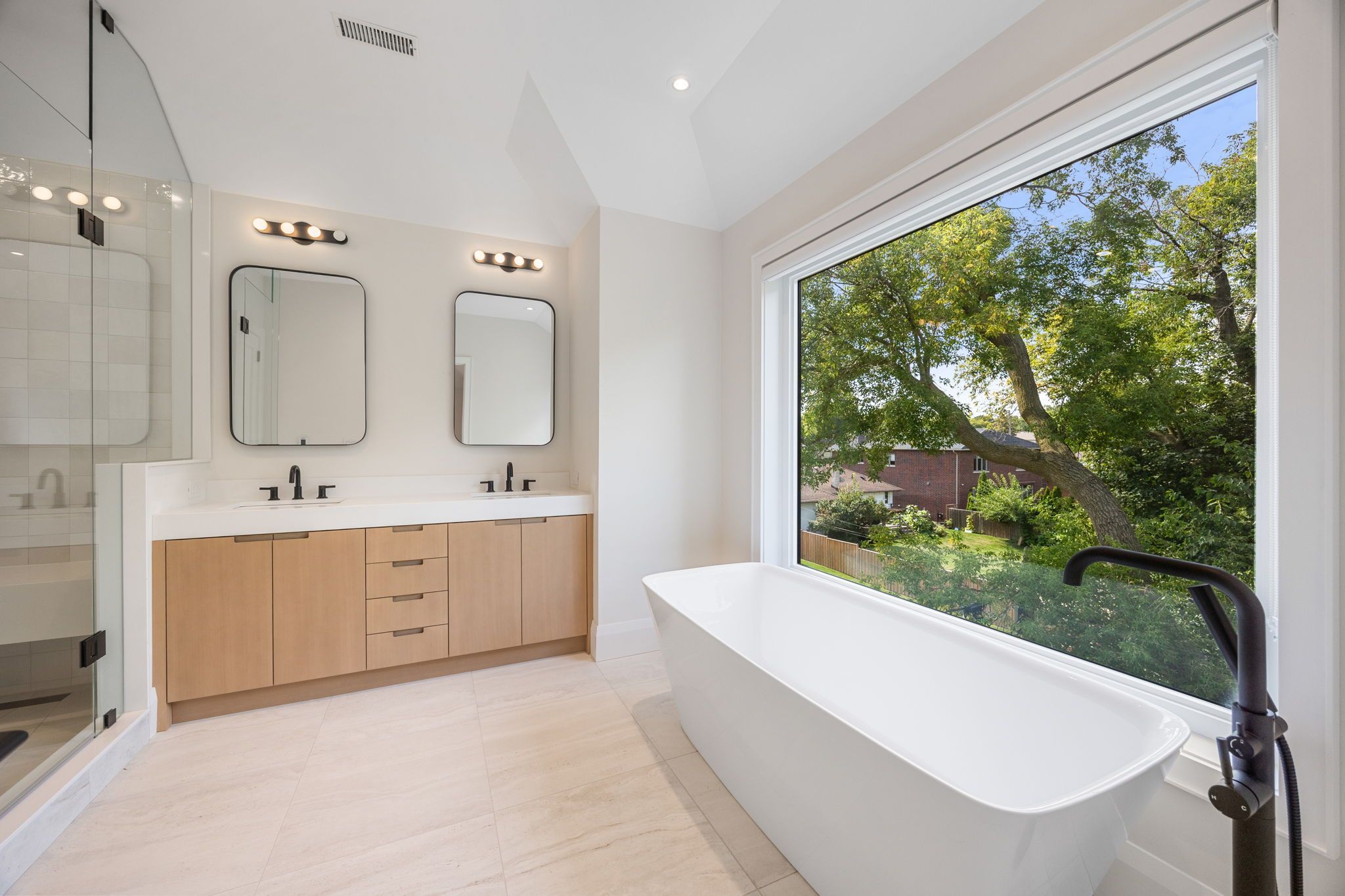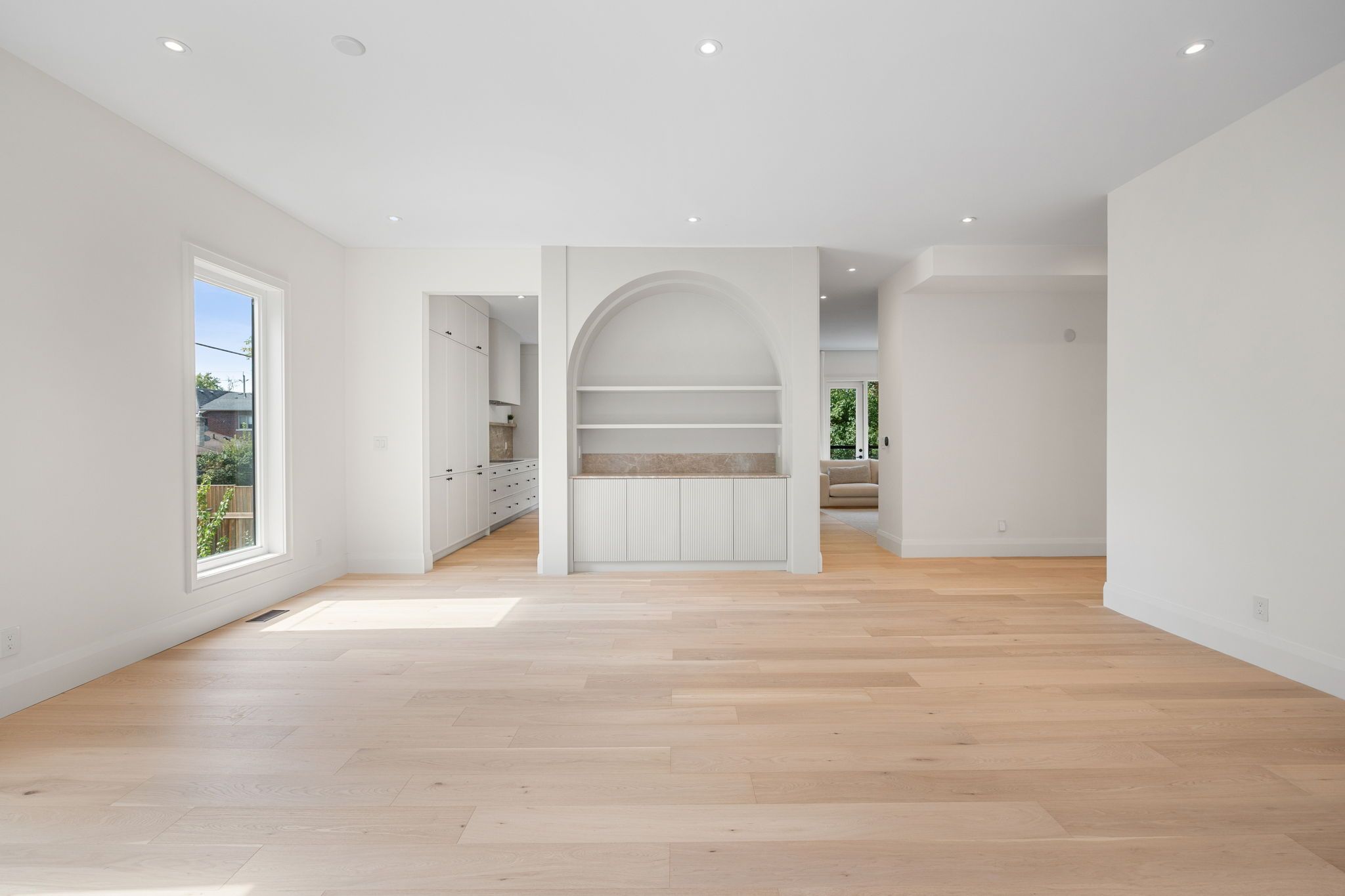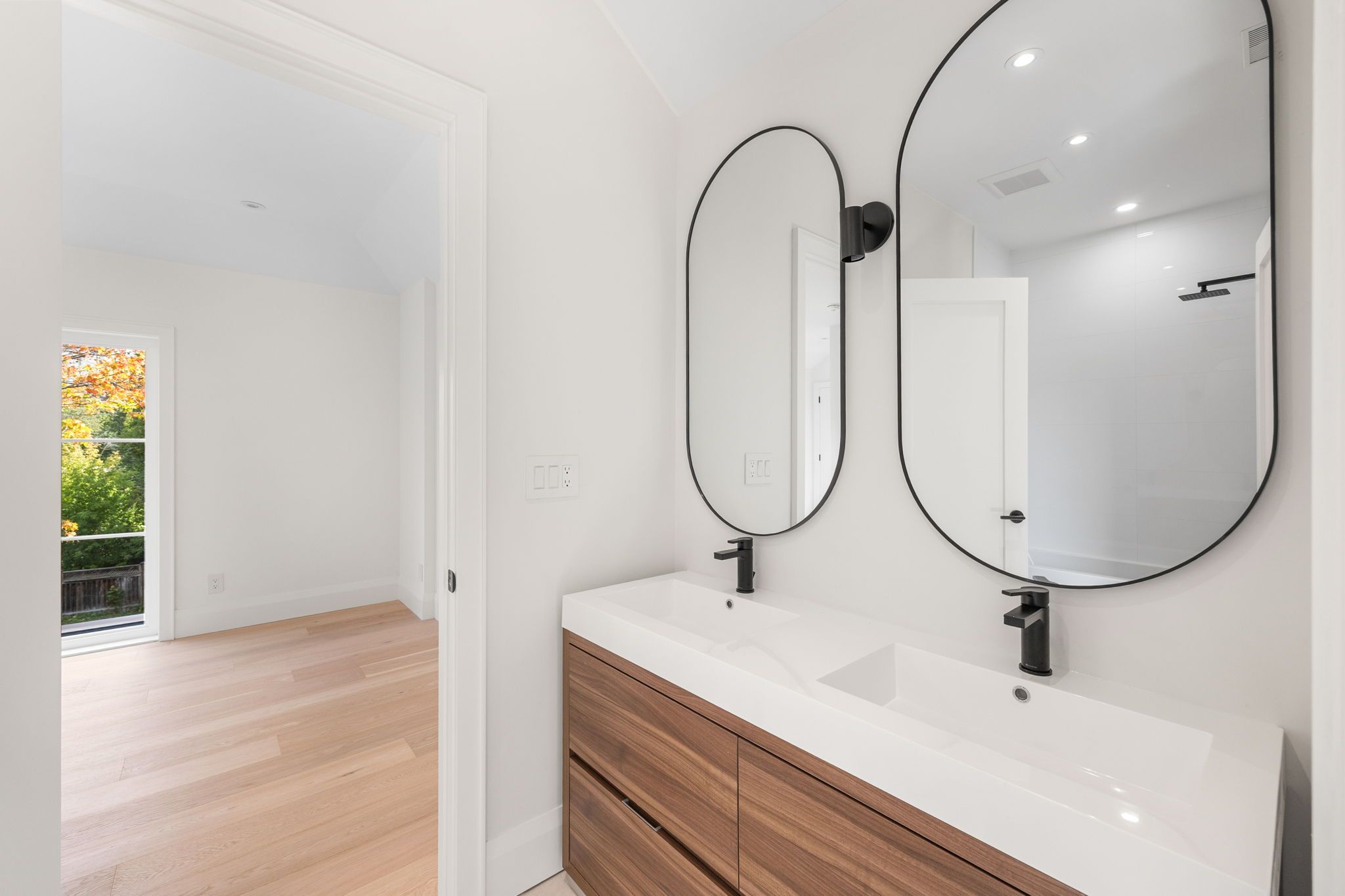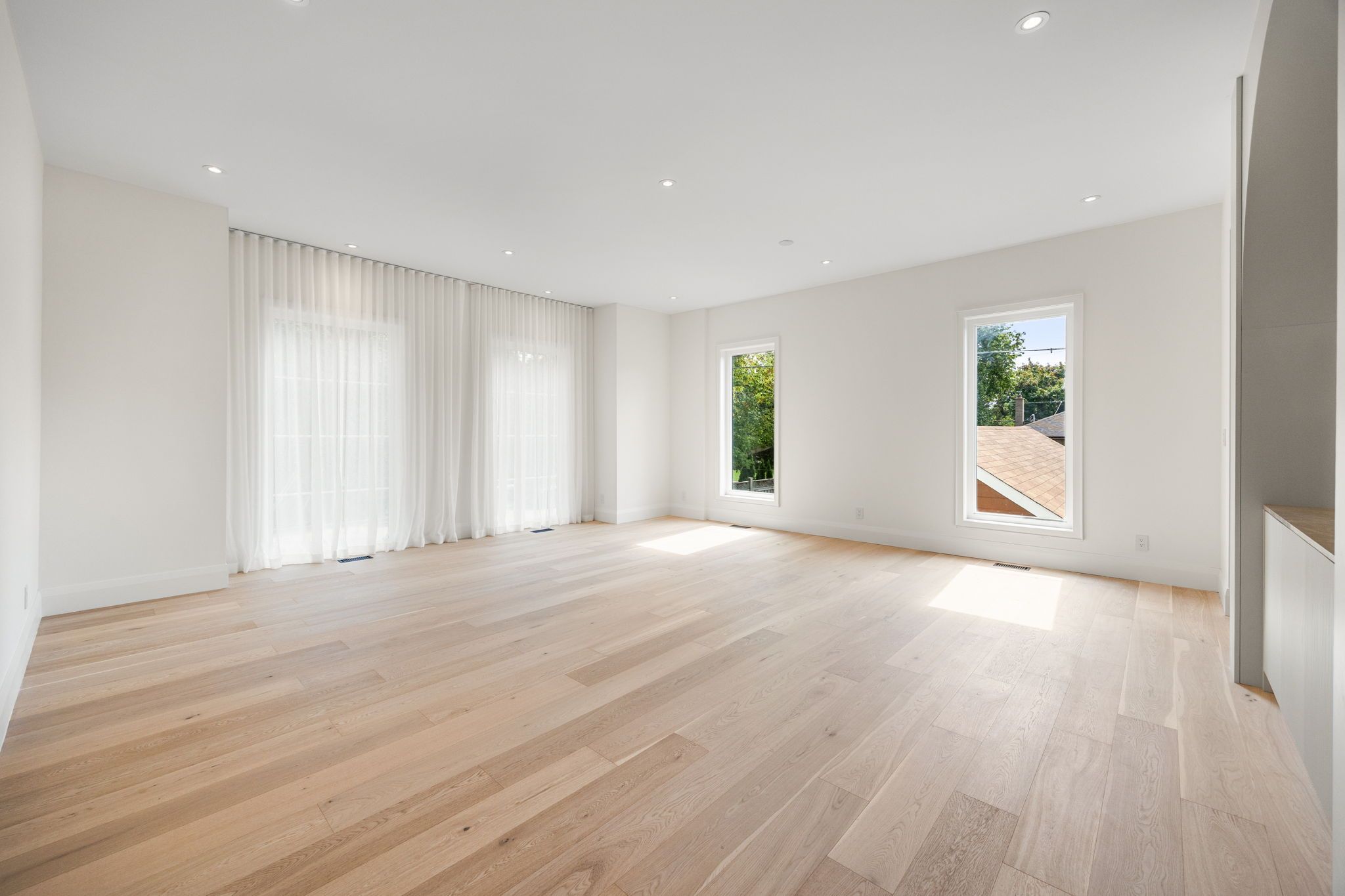 This expertly designed, fully turn-key custom home offers four spacious bedrooms and luxury finishes throughout. Located on an ultra-quiet, family-friendly street, the home features 10-ft main floor ceilings, and a walk-out basement with separate side entrance ideal for future rental or in-law suite. The chef's kitchen includes a 42" kitchenaid fridge, fisher & paykel induction cooktop, custom stone backsplash, custom designed rounded hood, and generous storage. The open-concept living and dining space is perfect for entertaining, featuring a custom arched bar with stone countertops. A custom home office with floor-to-ceiling library millwork sits just off the foyer, enclosed by reeded glass pocket doors and overlooking the serene, landscaped backyard. Upstairs, the oversized primary suite offers a fully customized walk-in closet and a spa-like ensuite with marble accents, soaker tub, heated floors, double vanity, and a glass shower with floating bench. Outside, enjoy a private backyard retreat complete with a beautifully designed saltwater pool, extensive landscaping, and a mature norway maple tree for natural shade. The large front yard provides a rare opportunity for additional recreational space or a future sport court. This home also includes over $10,000 in custom window coverings, an electric vehicle charger, heated floors in both the front foyer and the primary ensuite, a double car garage, and an oversized driveway with multiple car parking. Set back generously with a large sugar maple in the front yard and full separation between the basement and main living areas, this home is designed for both comfort and versatile living.