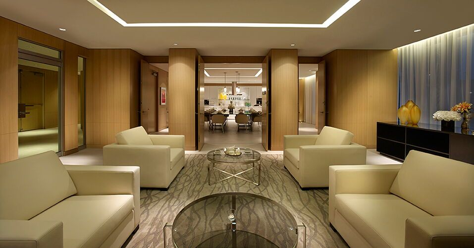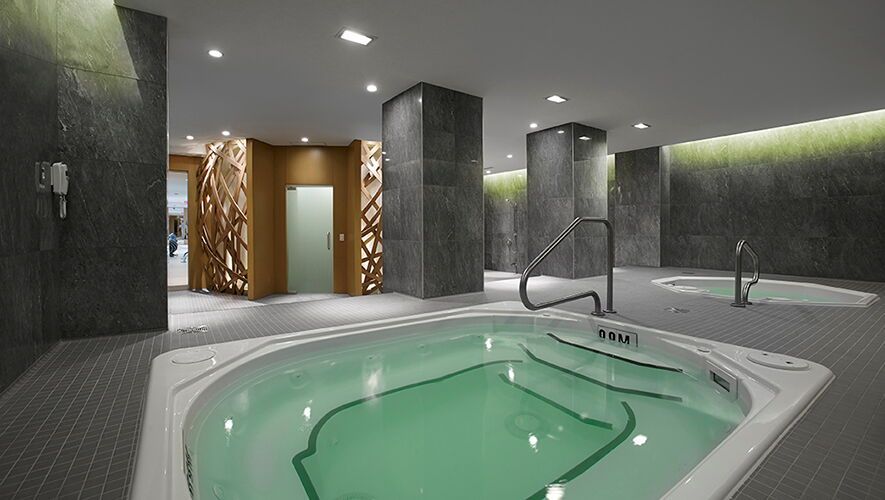• Resort-style amenities including fitness centre, yoga studio, and sauna.