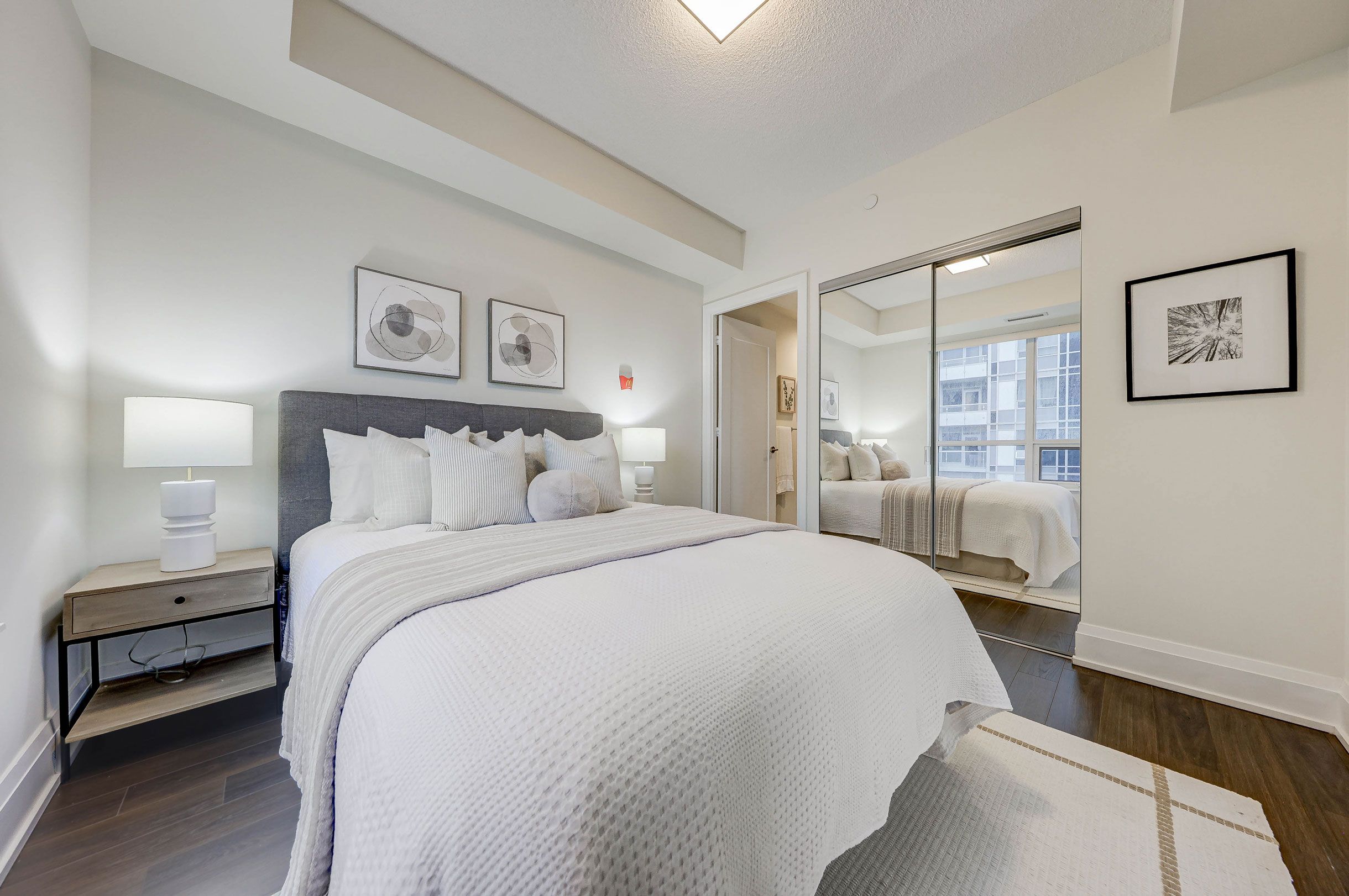 Welcome to aristo by tridel, an exceptional residence in the prestigious harrison garden community of north york. Spacious 2 br, 2 bath, se view corner unit filled with natural sunlight, freshly painted throughout, laminate flooring, and 9 ft ceiling. Modern kitchen with quartz countertop and backsplash, offering both style and functionality, an open concept layout ideal for comfortable living and entertaining. Park is just right at your doorstep. Close to ttc & subway, restaurants, library, entertainment and more. Minutes away from hwy 401. Excellent building amenities and a well-managed community. Dont miss this move-in ready home. A must see!