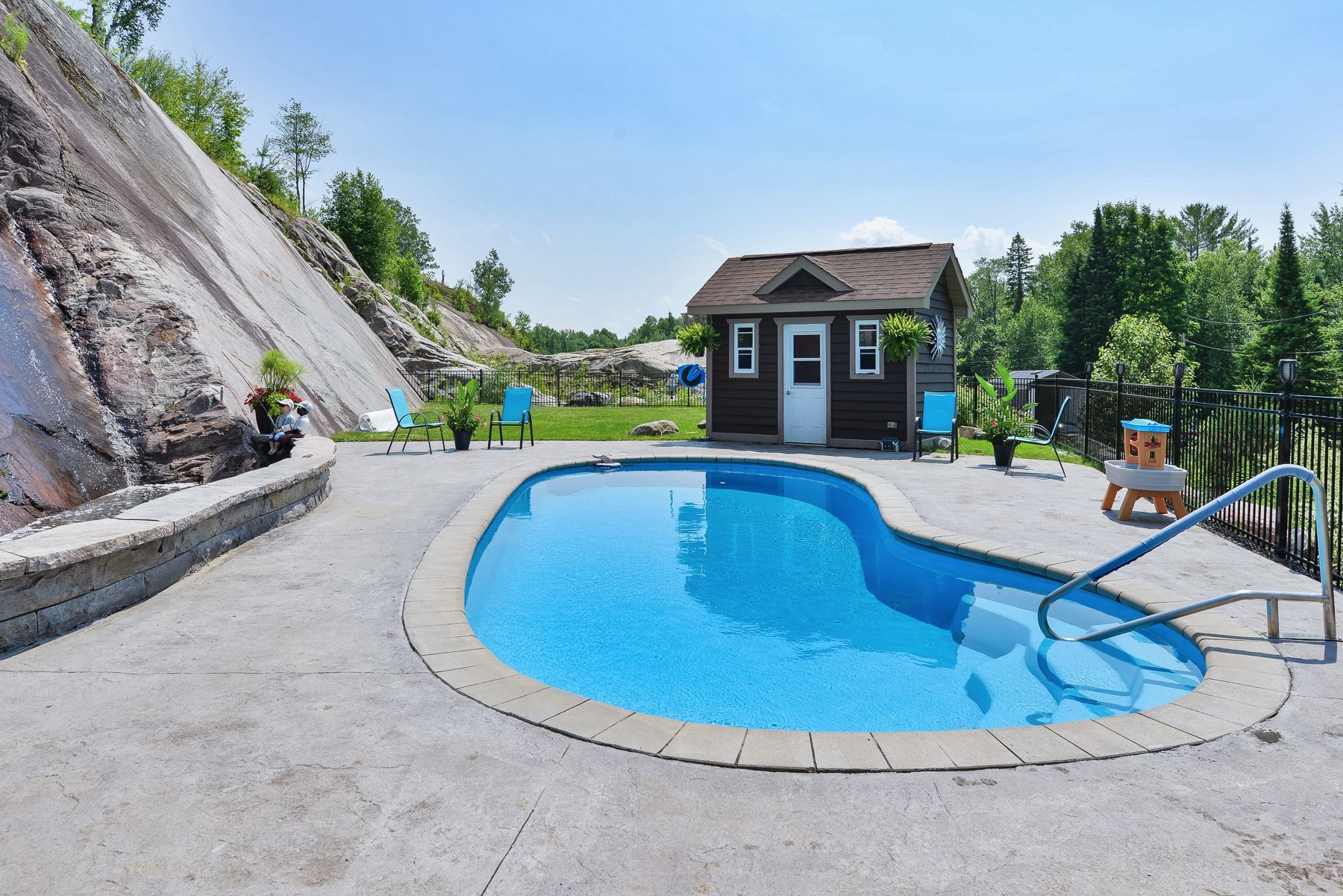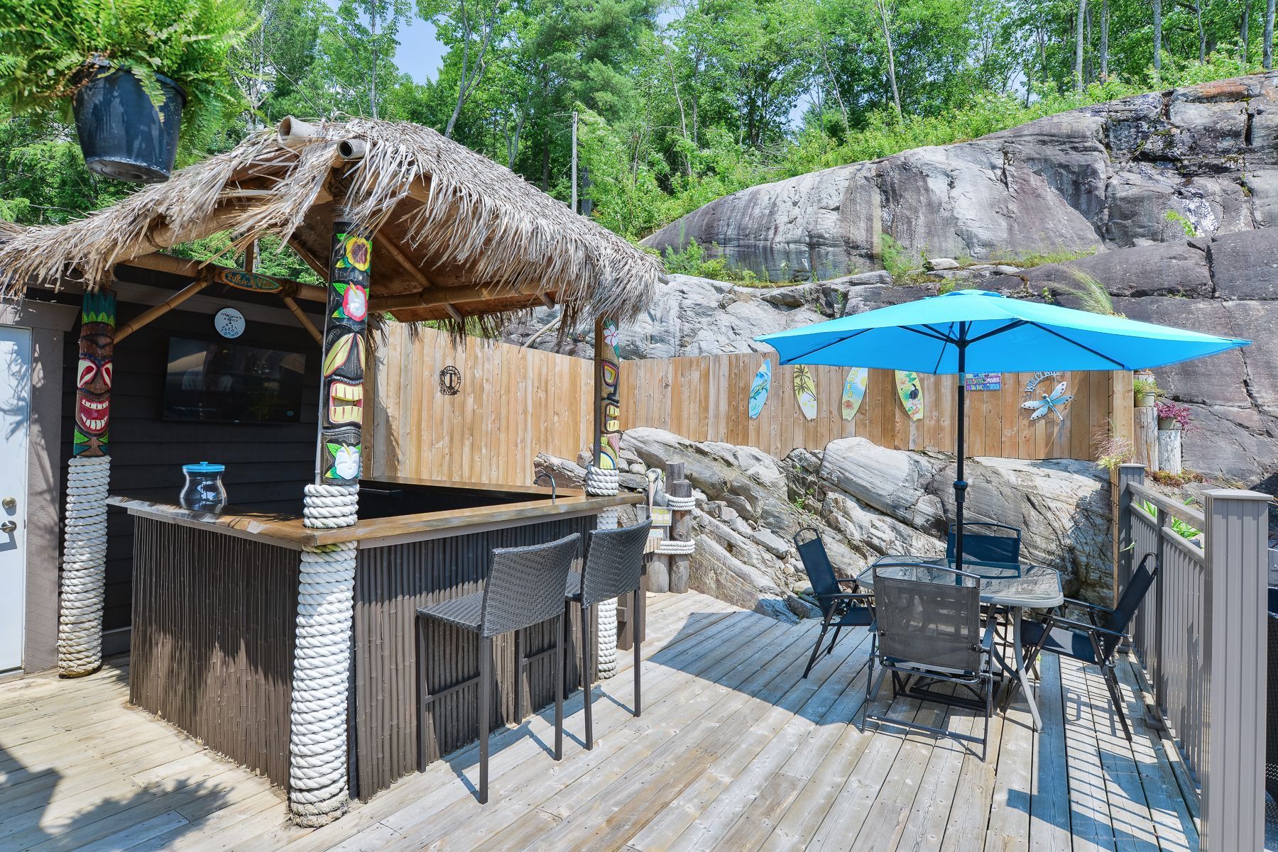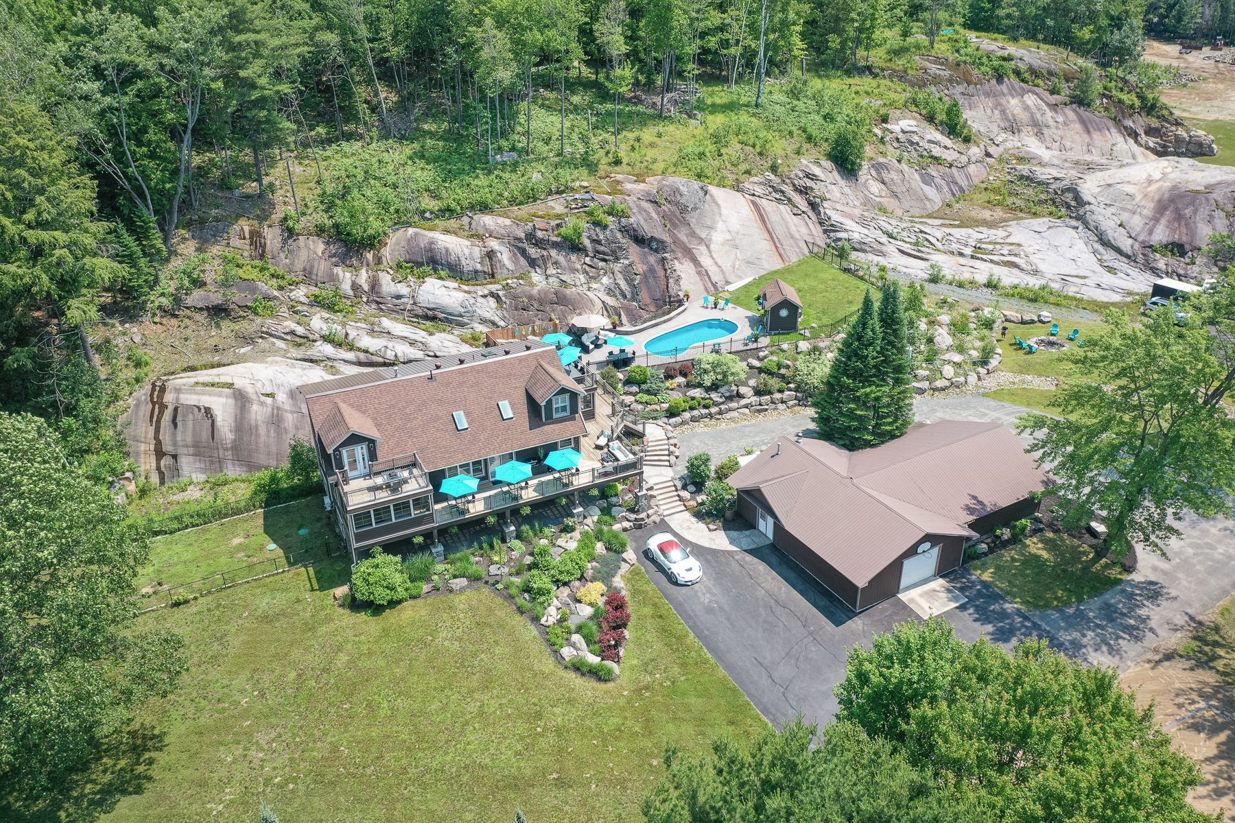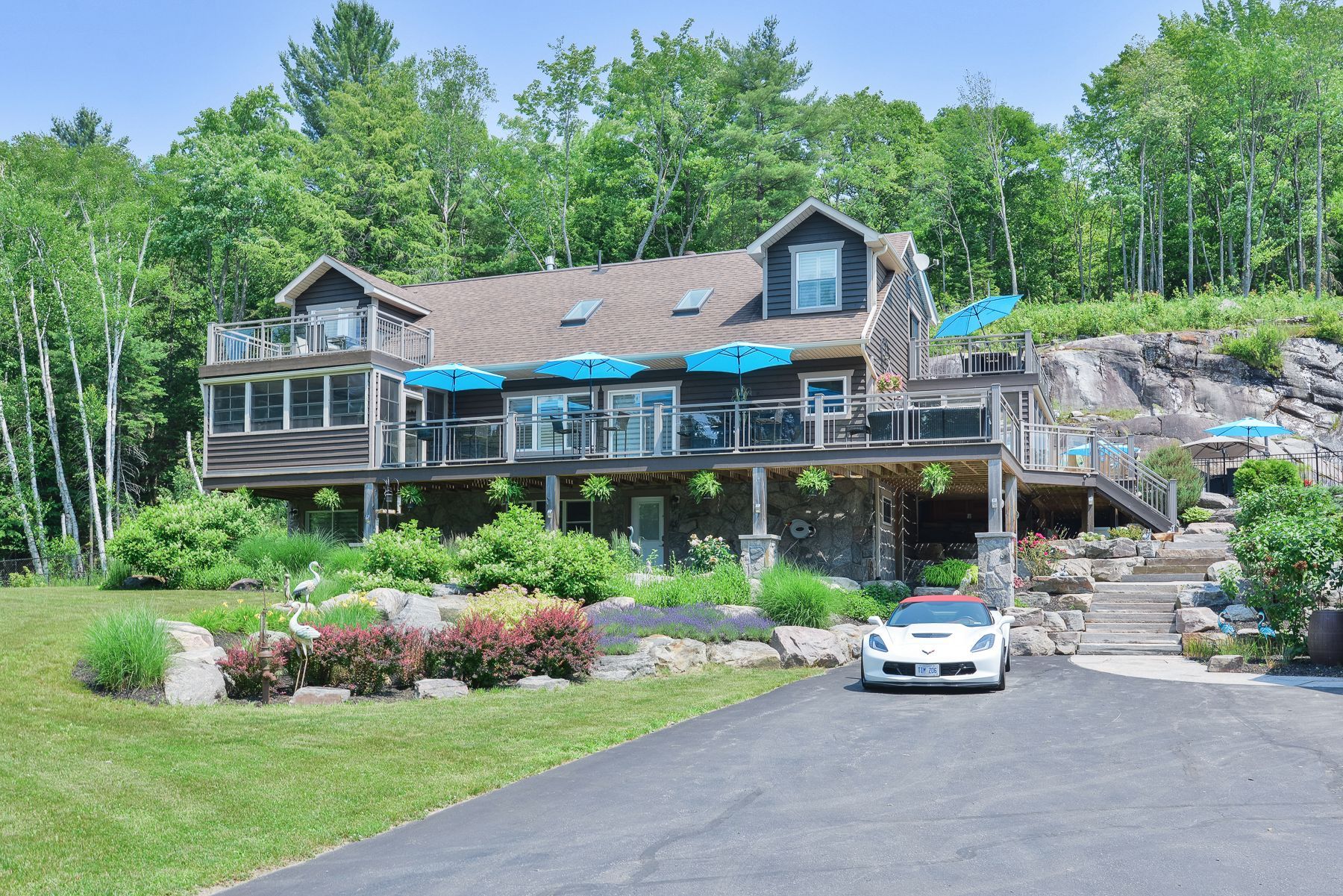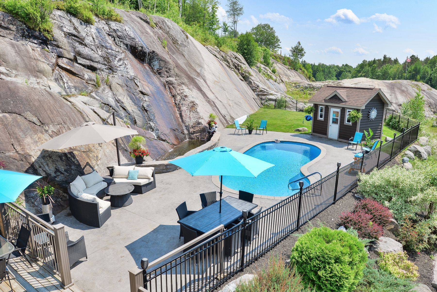 Spectacular, unique, unforgettable. These are just a few words to describe this magical, one of a kind property. Formerly featured in a muskoka magazine, the home and property offer plenty of space for entertaining, a growing family or simply reconnecting with nature and wildlife. Design elements, including local muskoka granite picked and split by the owners hand and built into the feature wall and kitchen island, all help to create a space that welcomes you from its front gates to its front door and beyond. Soaring vaulted ceilings and architectural beams in the main living area and primary bedroom, as well as a thoughtfully redesigned interior created during the building of a significant addition completed in 2016, provided the owner and designer an opportunity to create a spacious, interesting yet functional space. Breathtaking views from numerous balconies, windows and patios overlook the grounds, gardens, 30ft waterfall and approx. 500 ft of mother natures perfect river front. The in-ground salt water pool, tiki bar, infrared sauna, built in hot tub, large gym, theatre room, ball court, sandy beach with gentle water entry for swimming, dock for boating, waters edge bunkie (sleeping 4 comfortably), the huge 5 car garage, large rv shed with oil pit and even the bonfire lookout on top of the hill of your 11 acre property will afford you the last ray of sunshine with the setting sun to complete your daily living experience. Should you ever wish to leave your property, you are just a few short minutes to the heart of huntsville by car and a short boat ride along the river to lake vernon and further access to fairy, mary and peninsula lakes. Pictures may speak a thousand words but this property has thousands more to share with you in person. Private showings only.