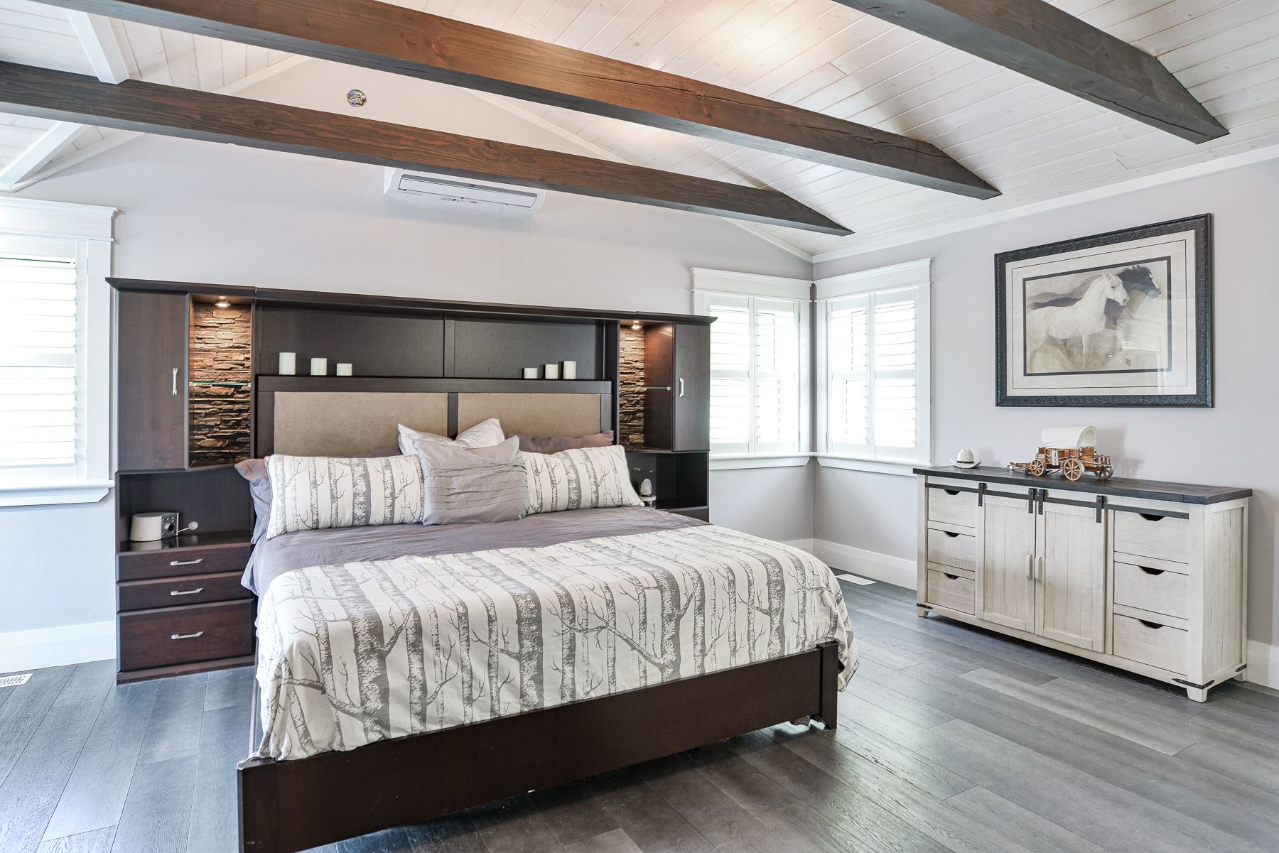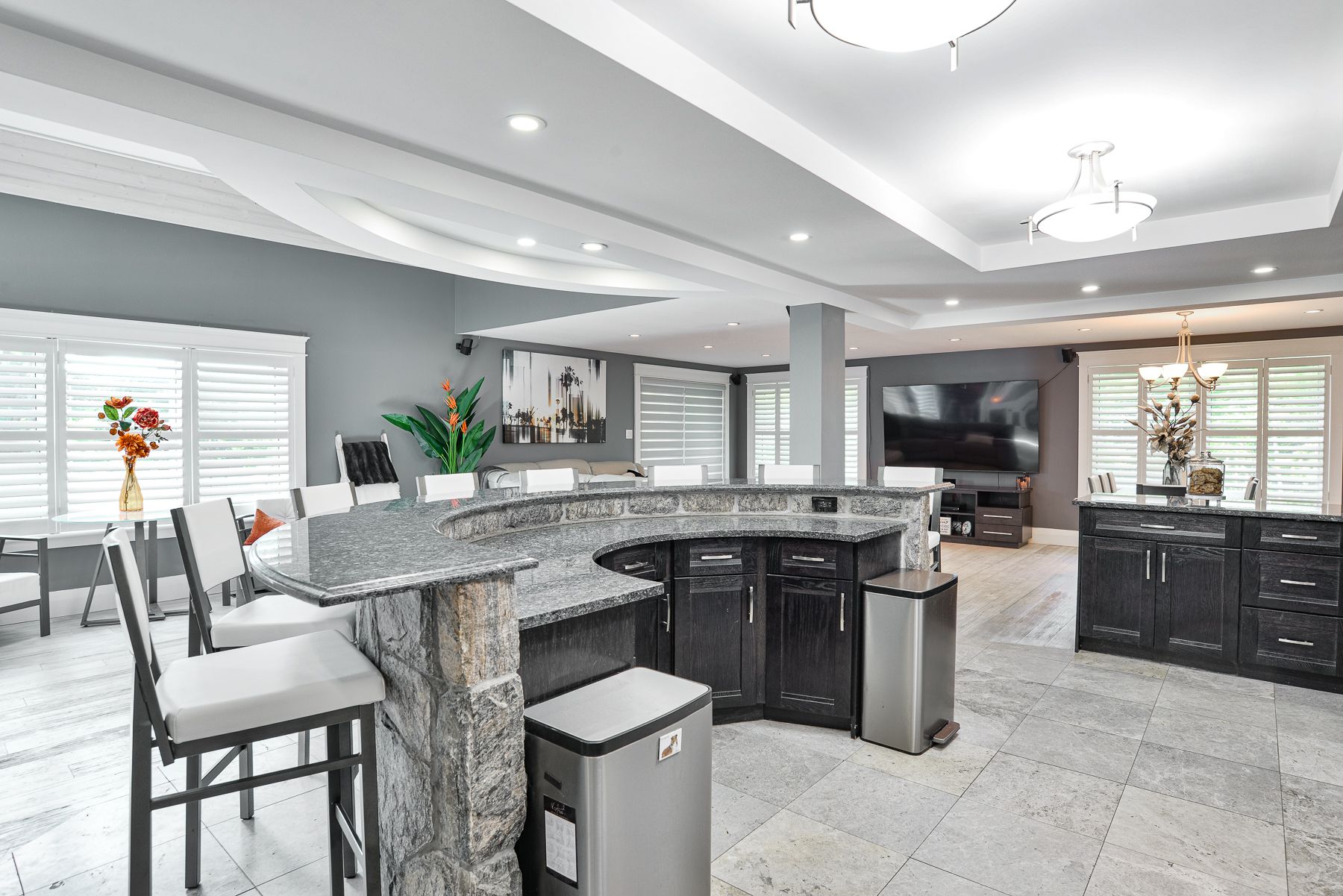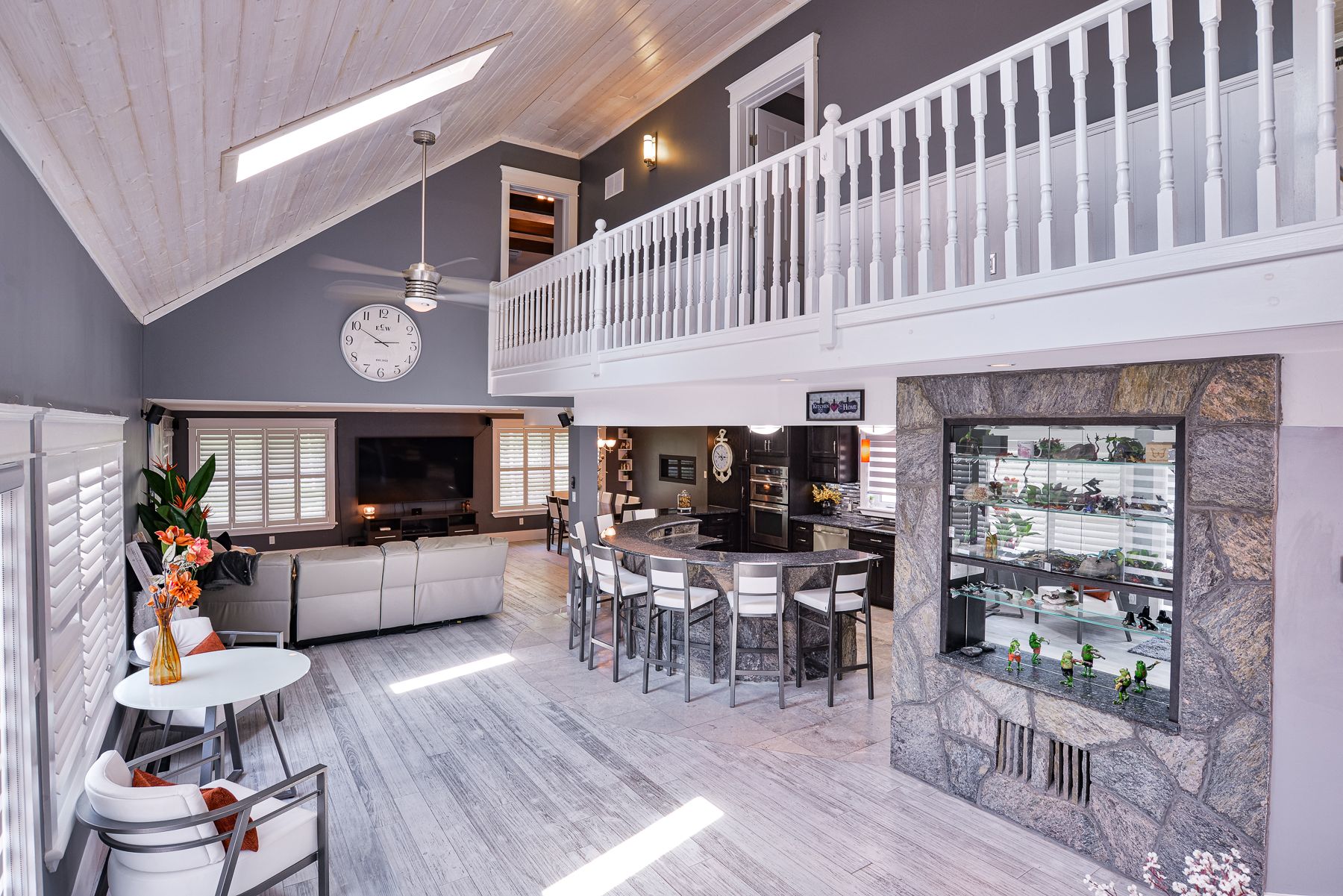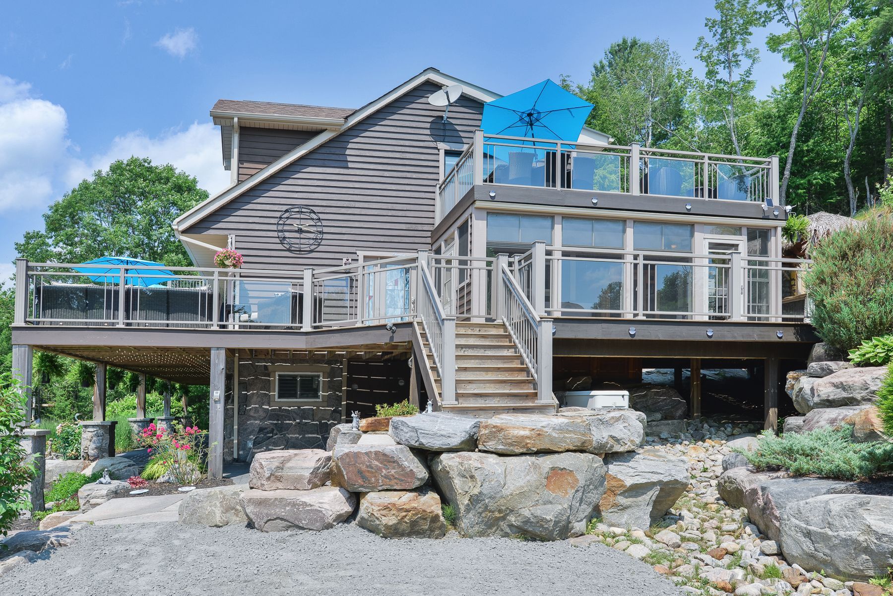Spectacular, unique, unforgettable. These are just a few words to describe this magical, one of a kind property. Formerly featured in a muskoka magazine, the home and property offer plenty of space for entertaining, a growing family or simply reconnecting with nature and wildlife. Design elements, including local muskoka granite picked and split by the owners hand and built into the feature wall and kitchen island, all help to create a space that welcomes you from its front gates to its front door and beyond. Soaring vaulted ceilings and architectural beams in the main living area and primary bedroom, as well as a thoughtfully redesigned interior created during the building of a significant addition completed in 2016, provided the owner and designer an opportunity to create a spacious, interesting yet functional space. Breathtaking views from numerous balconies, windows and patios overlook the grounds, gardens, 30ft waterfall and approx. 500 ft of mother natures perfect river front. The in-ground salt water pool, tiki bar, infrared sauna, built in hot tub, large gym, theatre room, ball court, sandy beach with gentle water entry for swimming, dock for boating, waters edge bunkie (sleeping 4 comfortably), the huge 5 car garage, large rv shed with oil pit and even the bonfire lookout on top of the hill of your 11 acre property will afford you the last ray of sunshine with the setting sun to complete your daily living experience. Should you ever wish to leave your property, you are just a few short minutes to the heart of huntsville by car and a short boat ride along the river to lake vernon and further access to fairy, mary and peninsula lakes. Pictures may speak a thousand words but this property has thousands more to share with you in person. Private showings only.