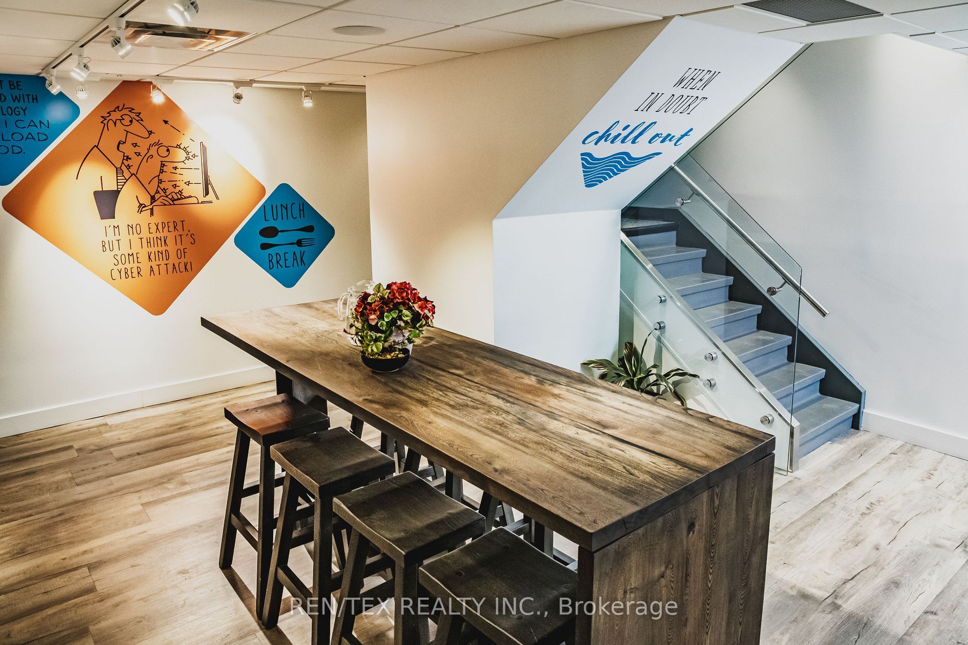 • Move-in ready office with four large private offices and a boardroom.