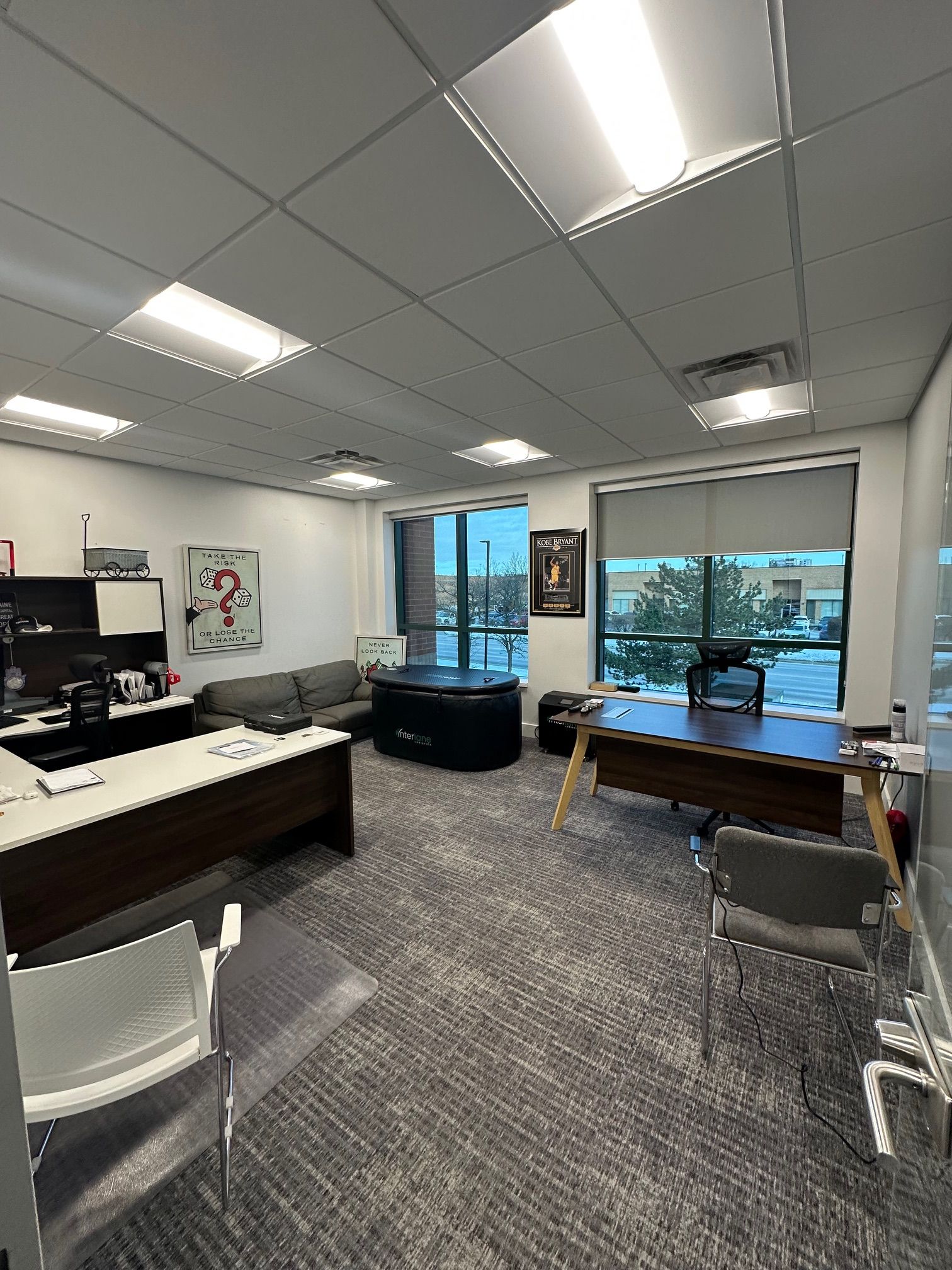 Solid, secure and very bright recently renovated 2nd floor office space. Large windows. Main entrance with key fob, separate and secure entrance. Prominent signage available. 3 very large private/classroom offices, 1 small private, large general office, large windows, 2 x 2 piece washrooms, kitchenette, above average parking. See attached floor plan