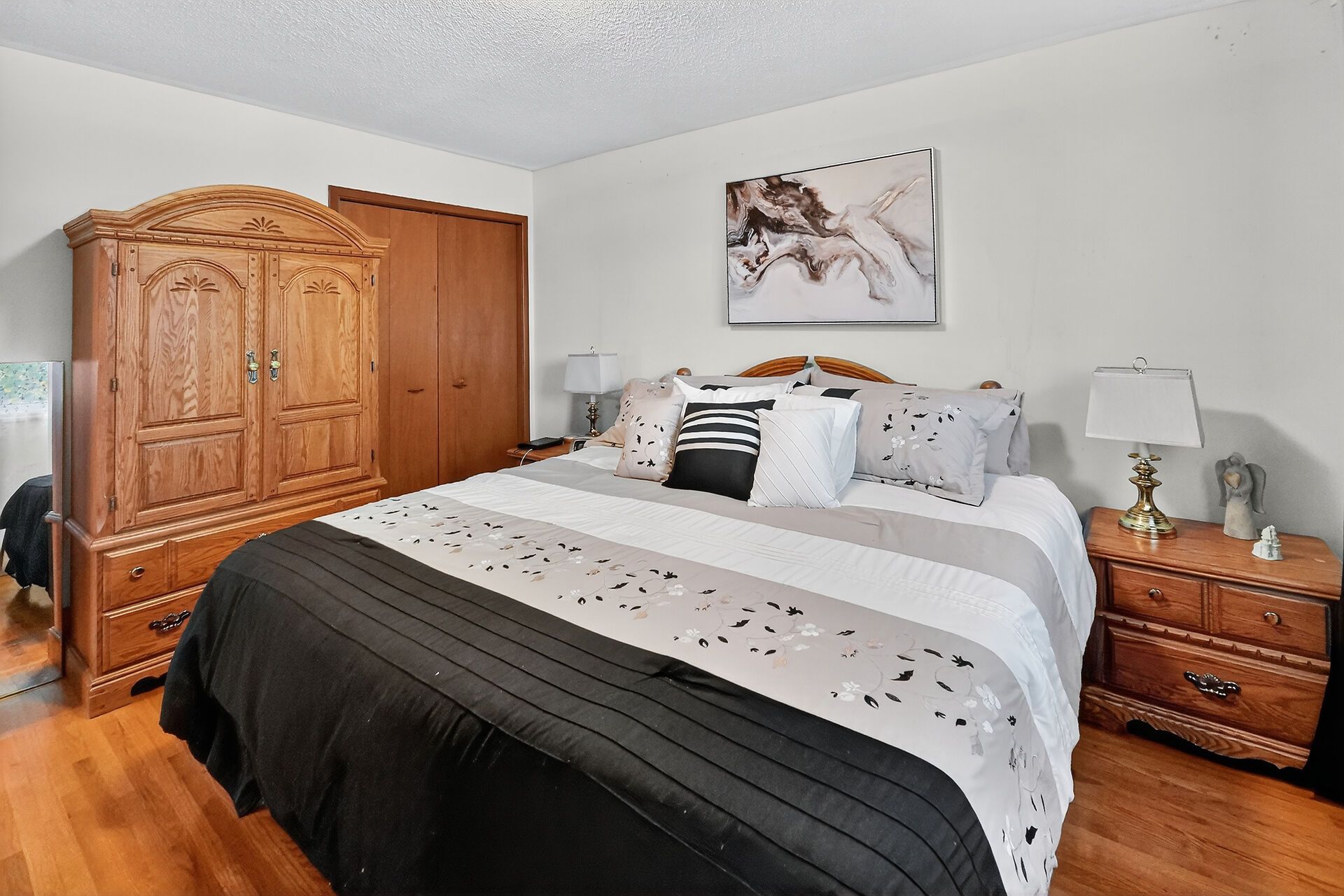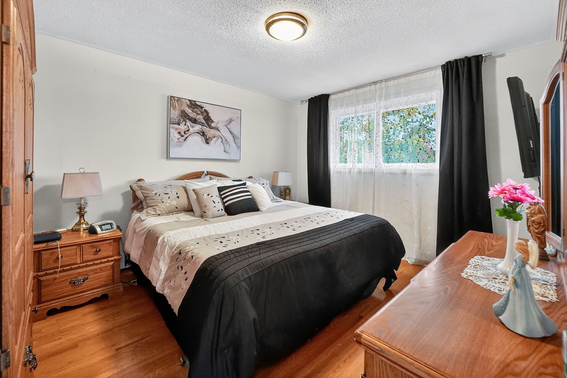 Welcome home to this impeccably cared-for elevated bungalow, where comfort and thoughtful updates come together beautifully. The renovated kitchen boasts plenty of cabinetry, a functional island for meal prep or gathering, and polished granite countertops. It opens seamlessly to a bright, airy living room featuring hardwood floors and updated main-floor windows that fill the space with natural light. The main level offers three spacious bedrooms, all with hardwood flooring, and a modern, well-designed 4-piece bathroom. Downstairs, you'll find a welcoming family room with a cozy gas fireplace-perfect for relaxing evenings. A versatile bonus area provides options for a playroom, craft space, or home gym, alongside a fourth bedroom and a convenient laundry room. Outside, enjoy a fully fenced, private backyard complete with a patio and storage shed-ideal for outdoor dining or weekend unwinding. Move-in ready and full of charm, this home delivers the space, style, and ease you've been looking for-perfect for first-time buyers, families, or those looking to downsize comfortably.