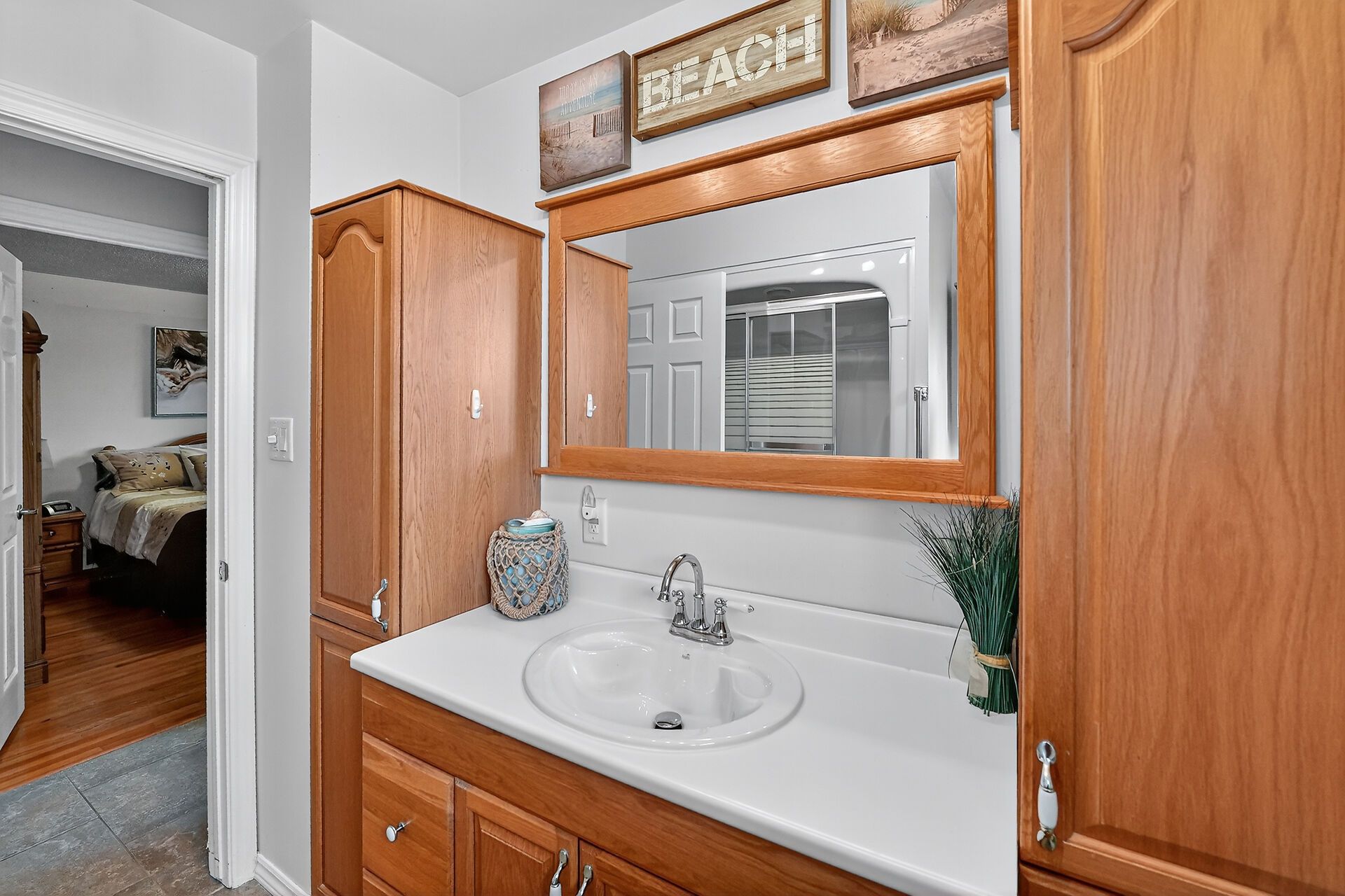 • Renovated kitchen with ample cabinetry and granite countertops.