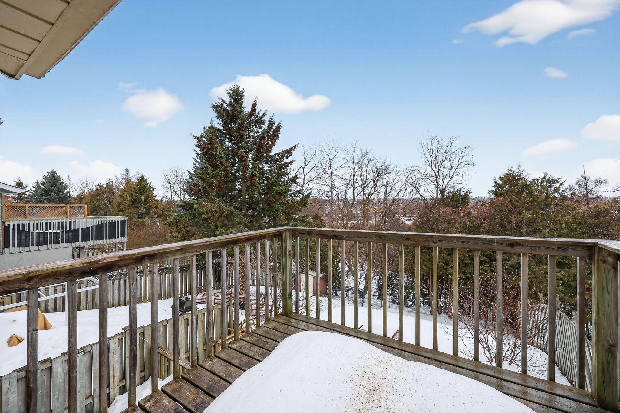 • Kitchen offers plenty of cupboard space and a dining area with deck access.