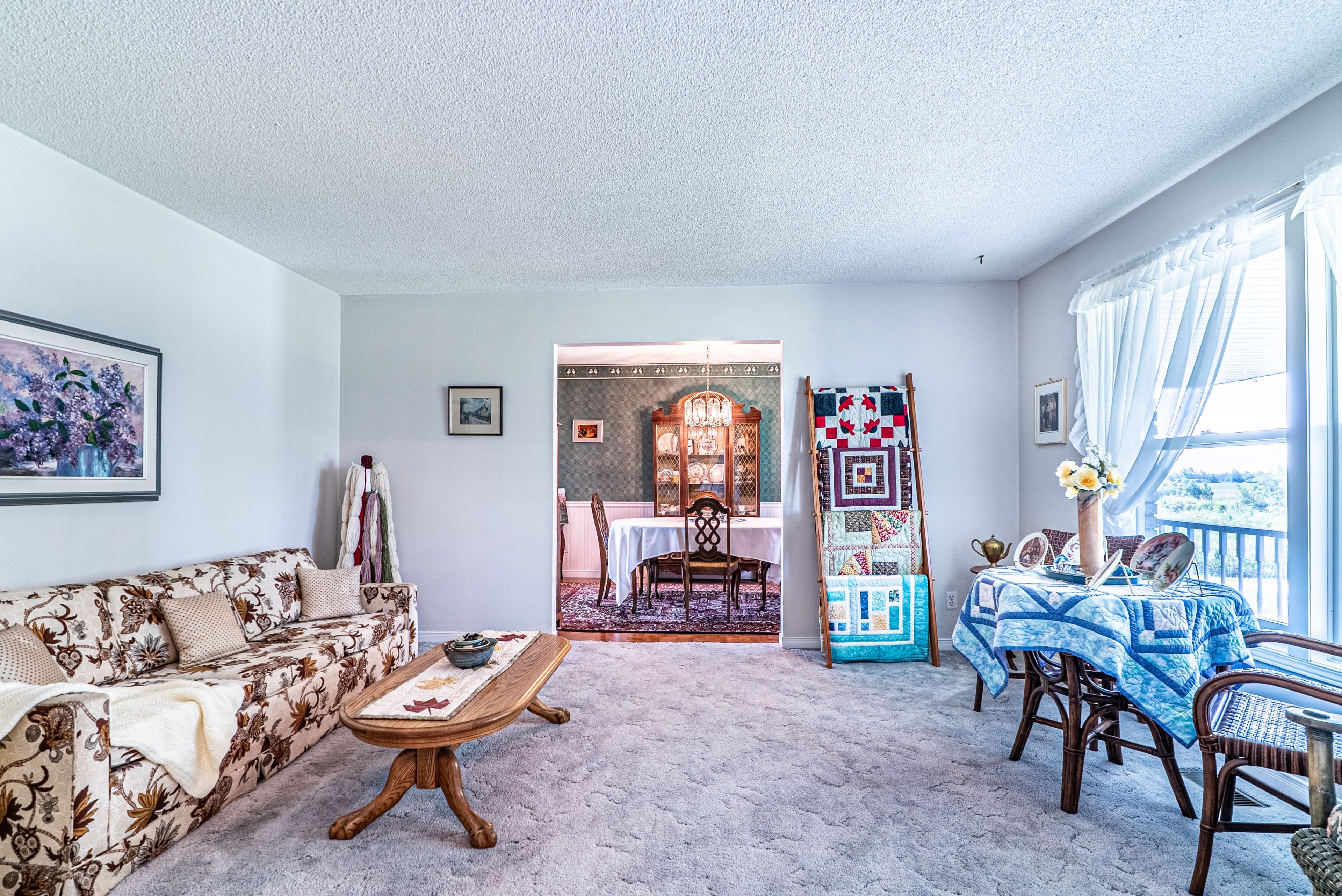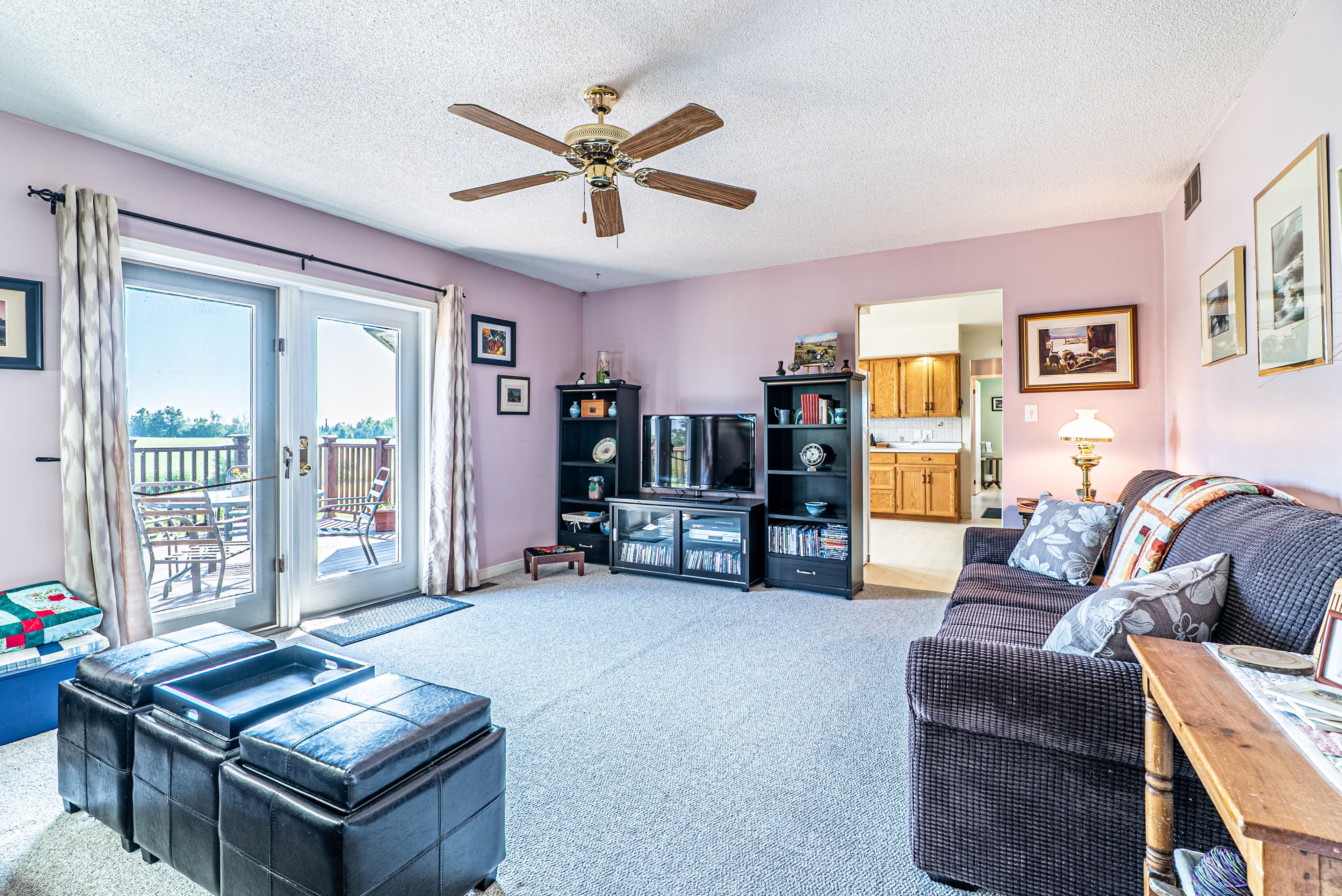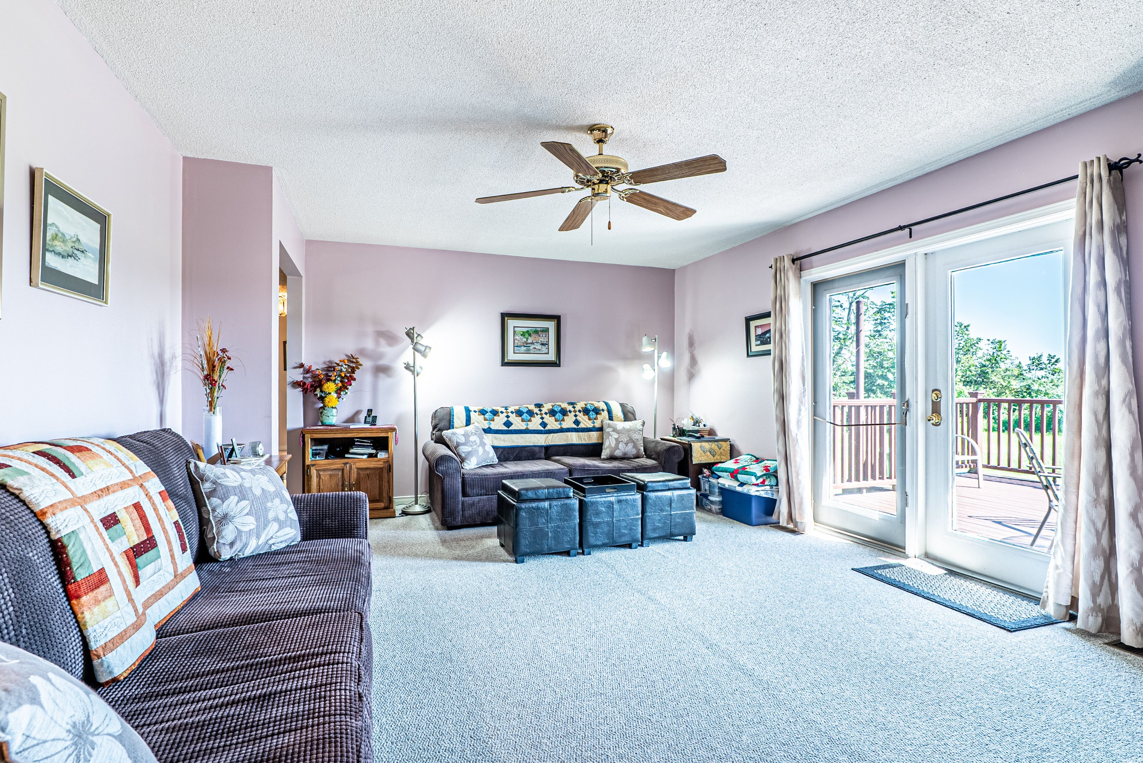 • Bright living room with a walkout to a spacious deck for relaxation.