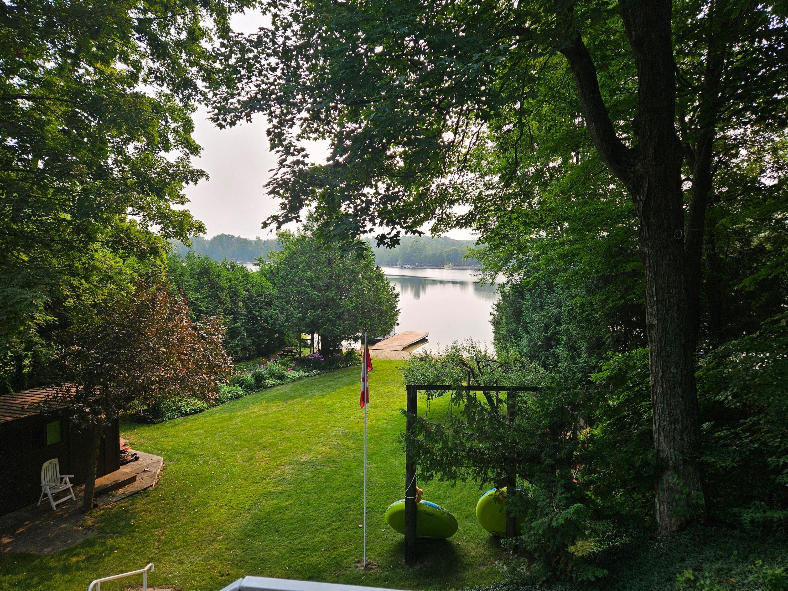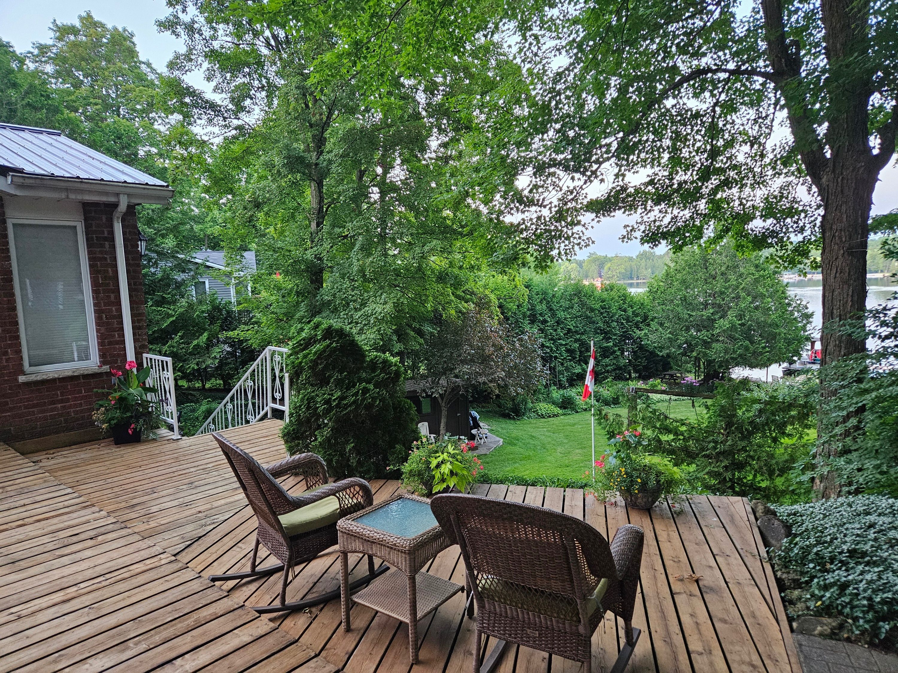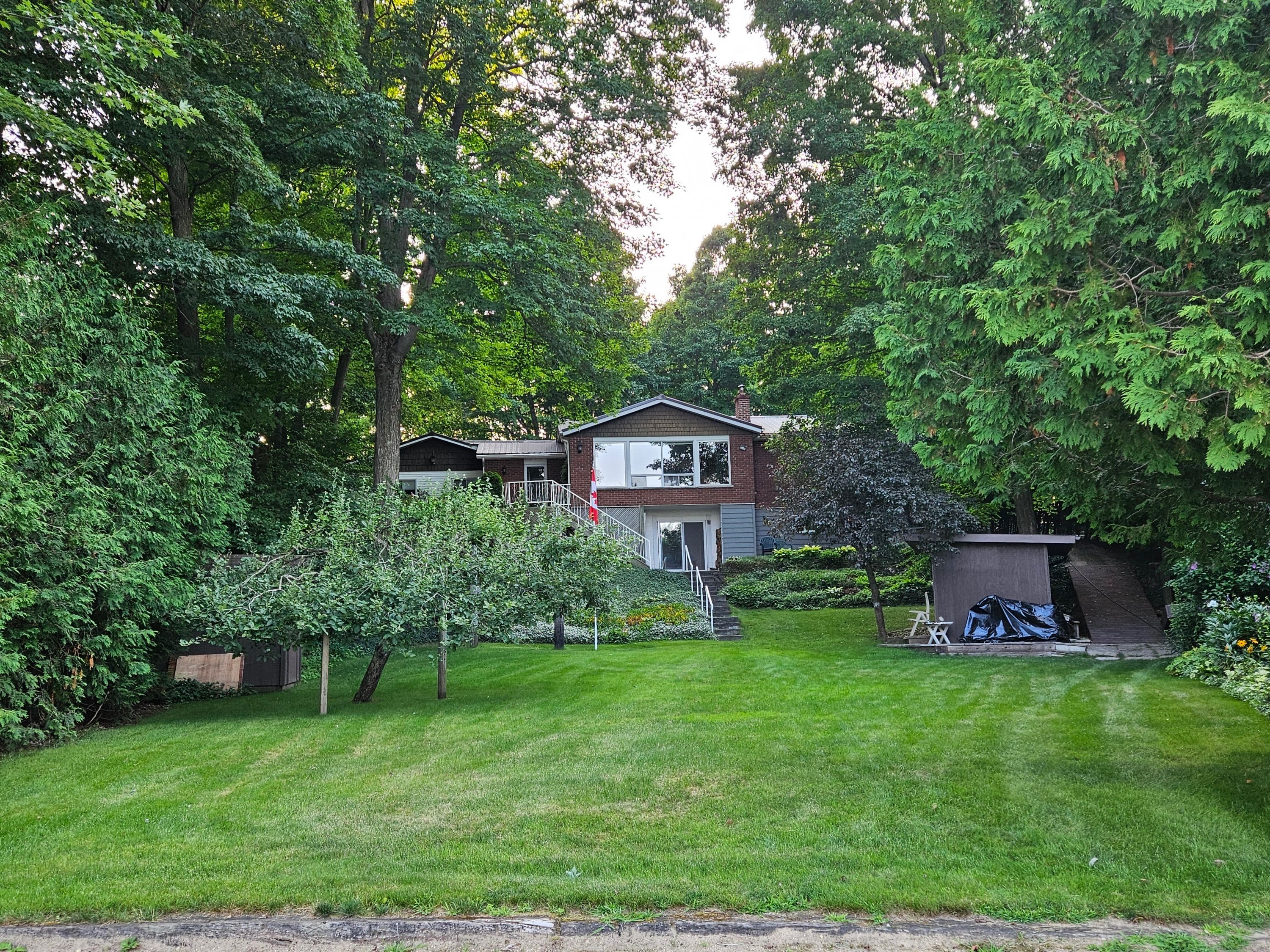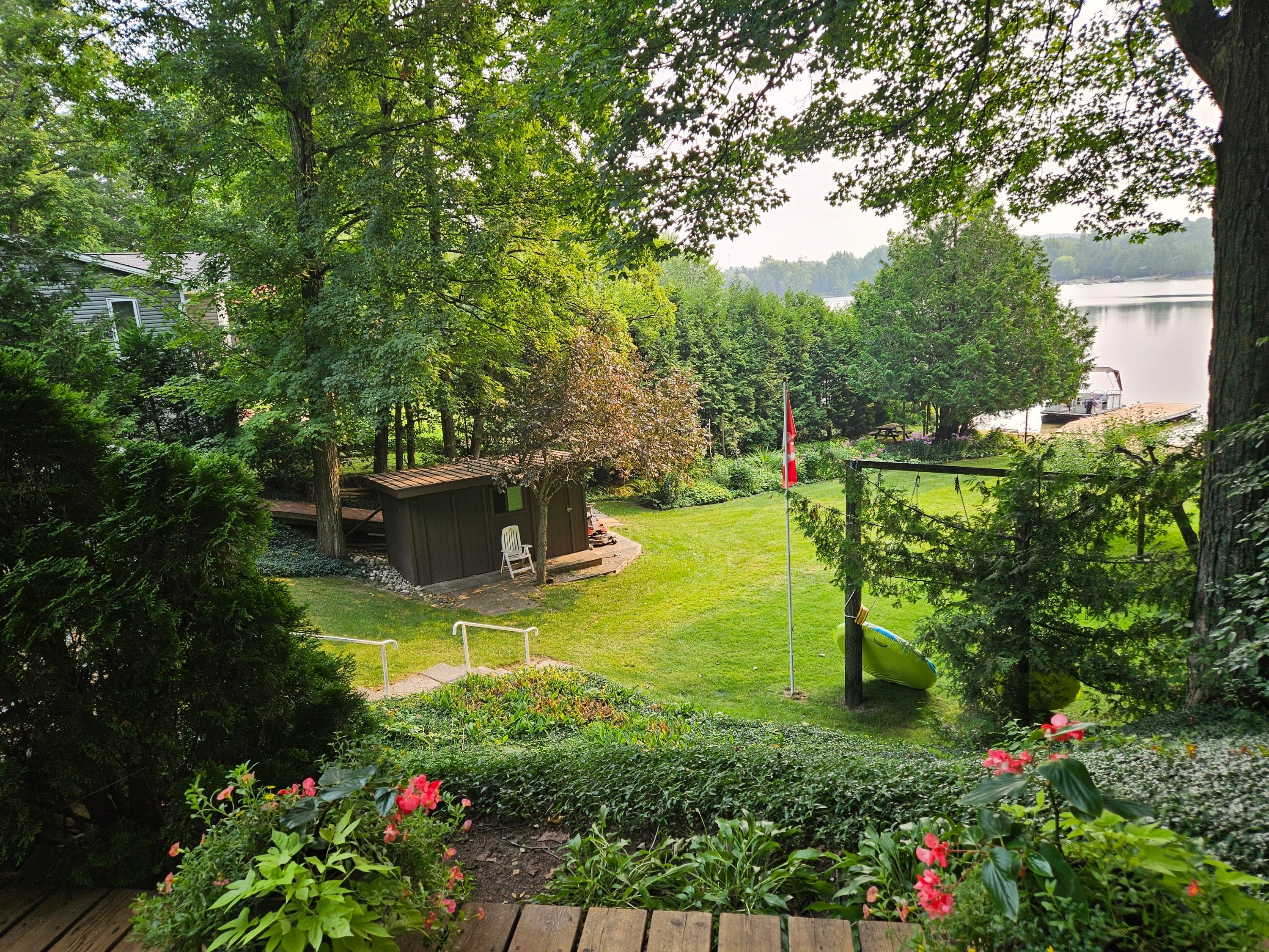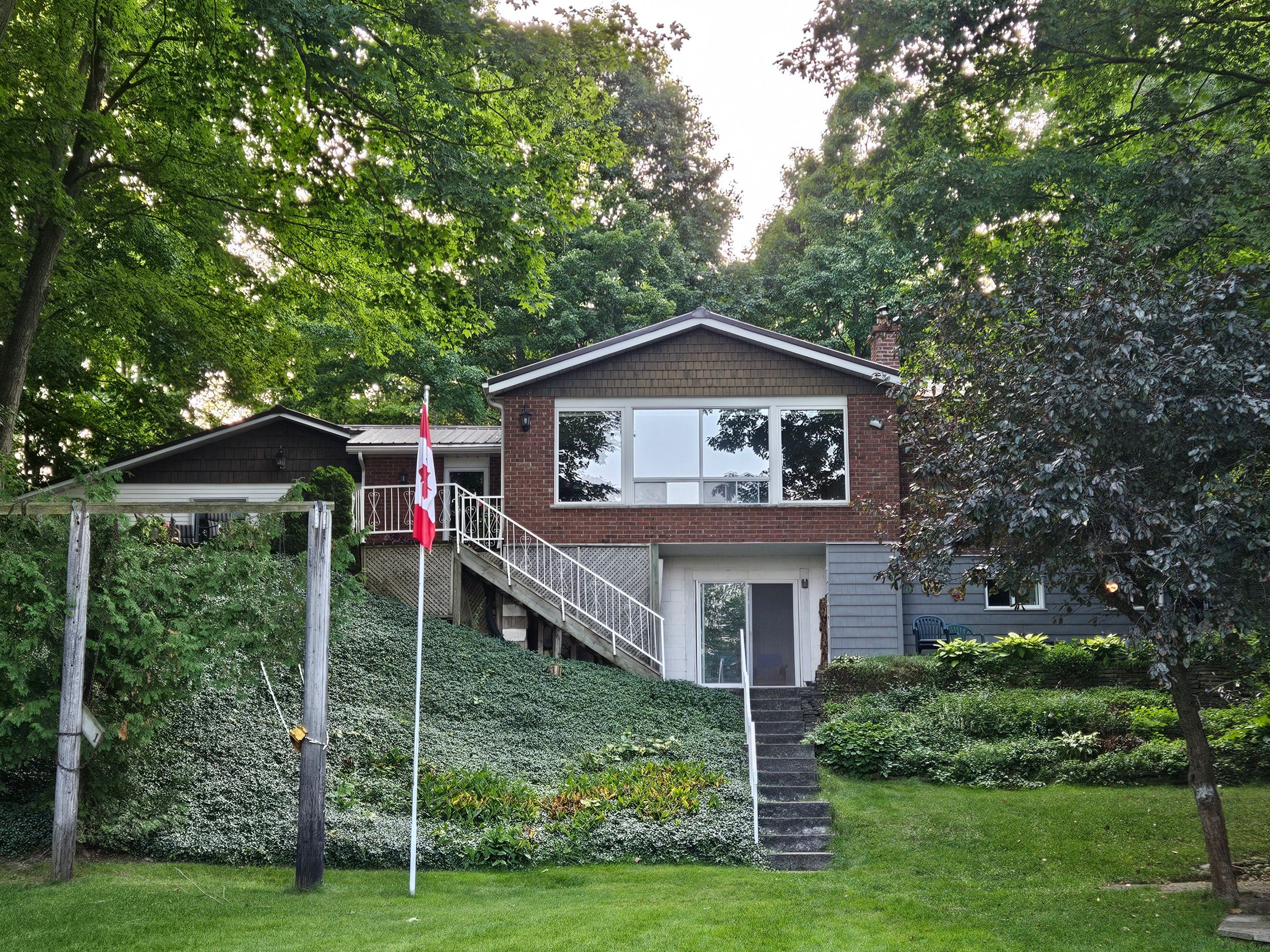 Wake up to peaceful waterfront living in this beautifully maintained 5-bedroom, 2. 5-bath detached brick bungalow with direct water access to mccullough lake - the perfect setting for year-round enjoyment or a relaxing retirement retreat. Designed with comfort and functionality in mind, the main floor features a bright open-concept living area ideal for entertaining or everyday living. The renovated eat-in kitchen (2010) offers ample cabinetry and workspace, flowing seamlessly into the spacious living room highlighted by large windows and patio doors leading to a generous deck overlooking the water - the perfect spot for morning coffee or evening sunsets. Private primary suite with closet, office area, and 4-piece ensuite. A second bedroom and convenient 2-piece bath complete the main level. The finished basement extends your living space with a cozy family room featuring an airtight woodstove, dedicated office area, three additional bedrooms, a 3-piece bathroom, and laundry - offering flexibility for guests, hobbies, or multigenerational living. Outside, you'll appreciate the practical extras: three garden sheds for storage, plus an insulated workshop (32'4" x 7'8") located off the garage - perfect for projects, tools, or extra workspace. Set in a welcoming community just minutes from the local community centre with pickleball courts and curling club, this property offers the ideal balance of tranquility and connection. Whether you're looking to retire in comfort or simply enjoy waterfront living, this inviting bungalow is ready to welcome you home.