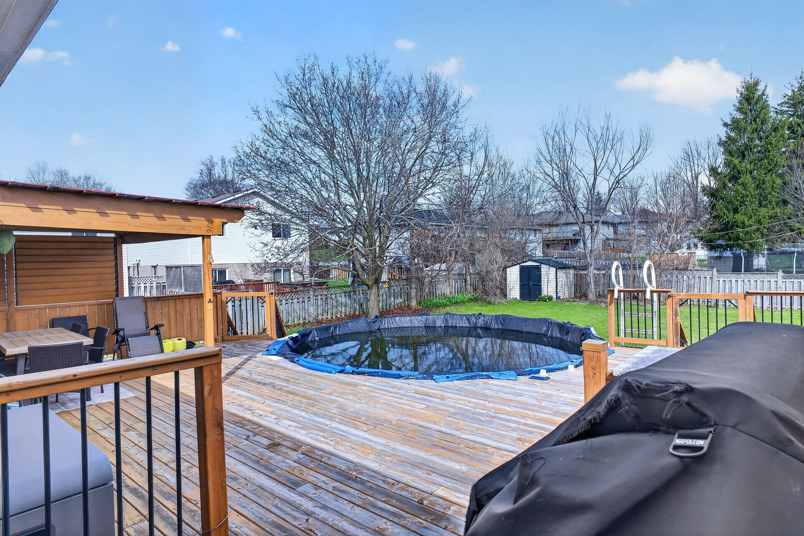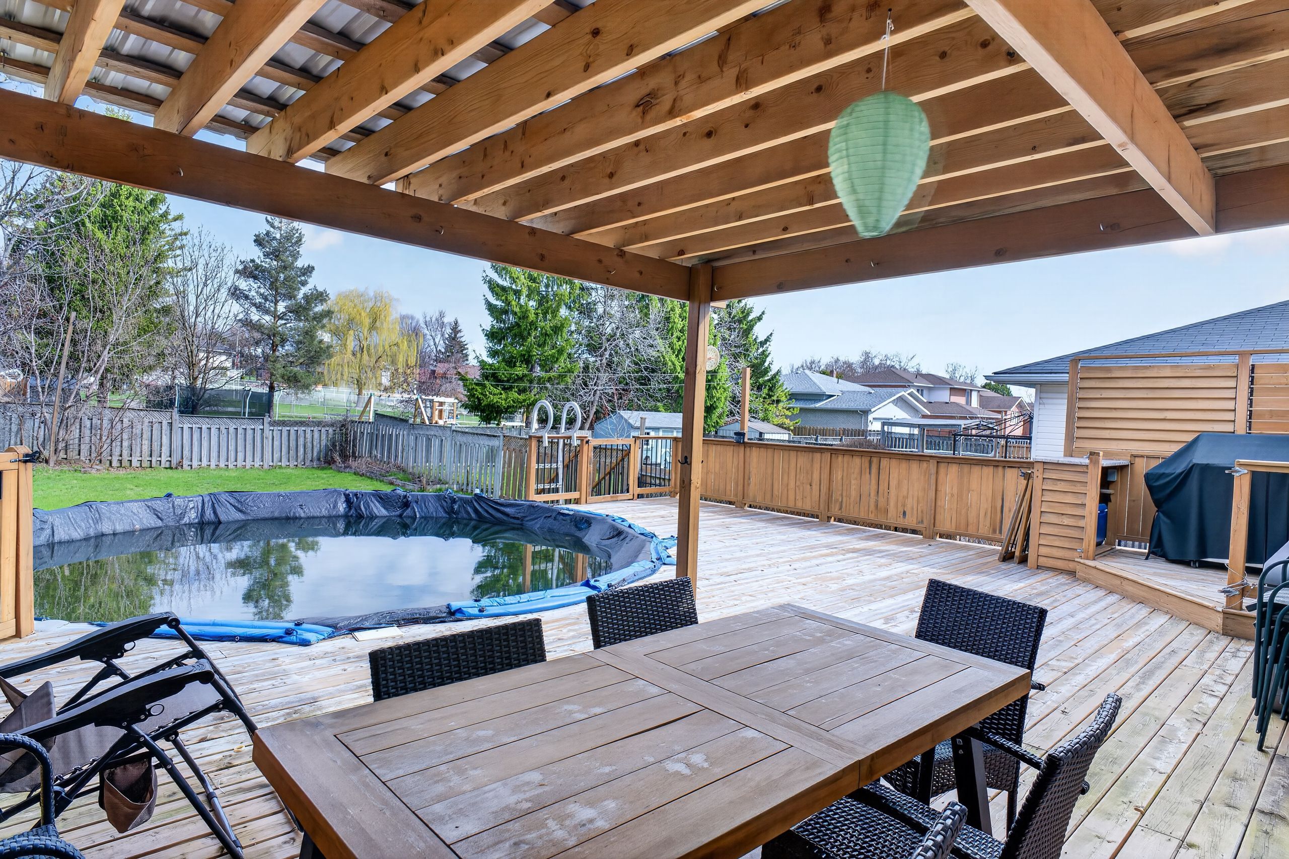 • Private backyard oasis with a spacious deck and inviting pool.