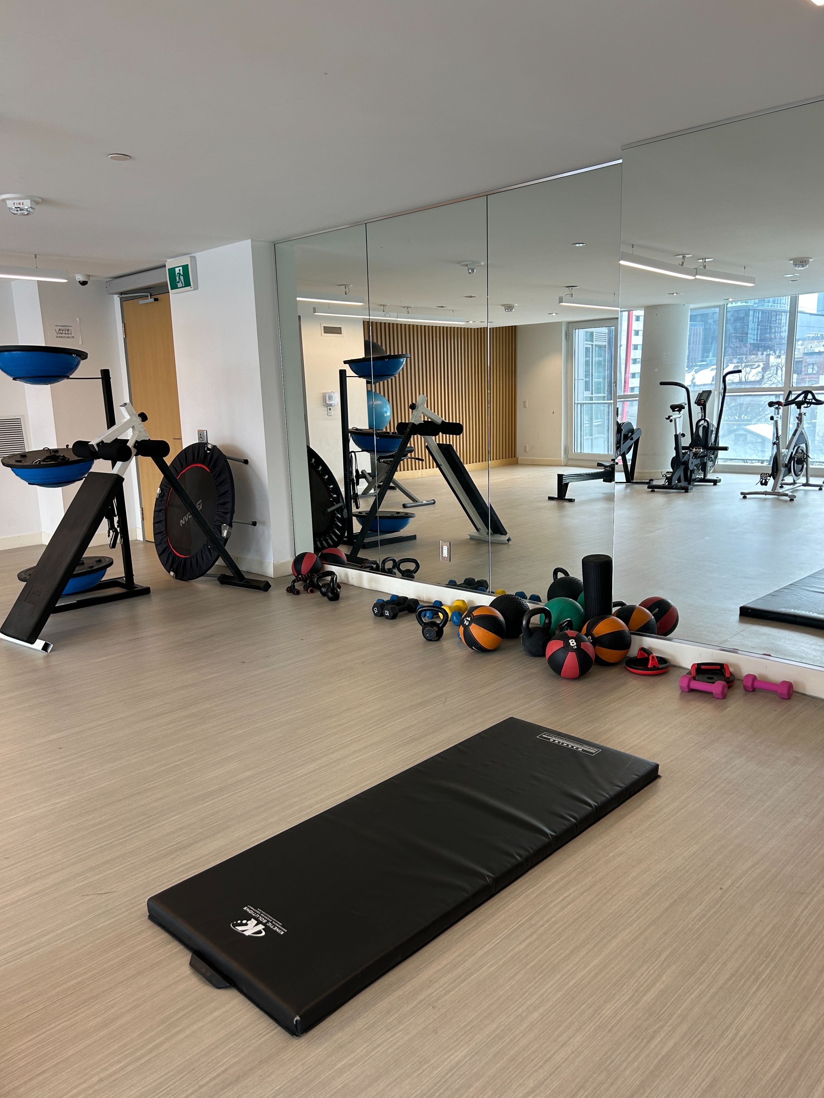 • Access to a fitness center, 24-hour concierge, and rooftop terrace with BBQs.