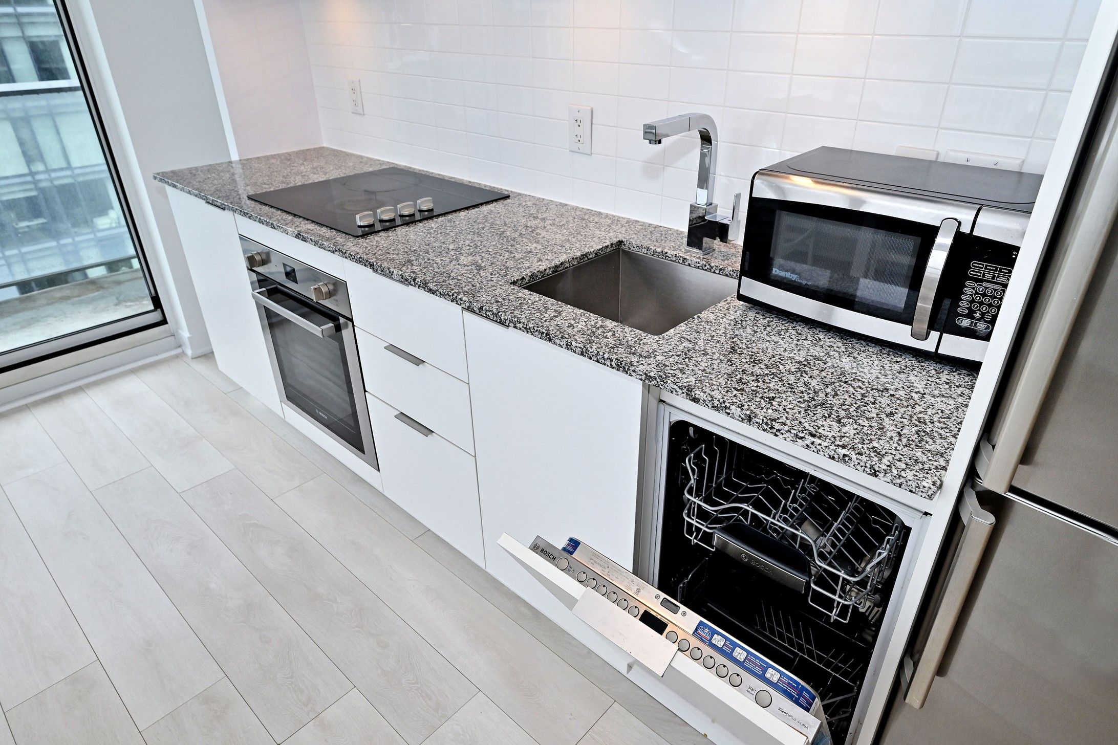 Exceptional, magnificent, executive unit with 2 balconies located in the highly sought-after moss park neighborhood. This bright, sun-filled, stunning, and absolutely outstanding 1 bedroom corner unit with amazing north east exposure at the luxurious east united condos stands out by details of pure luxury boasting premium functional layout. Modern wide plank engineering hardwood floor throughout, floor to ceiling windows, upscale gourmet kitchen, granite countertop, backsplash, double mirrored closet in primary bedroom. Open concept living and dining area impeccably designed for entertainment and adorable time. Chic and cozy 2 balconies with gorgeous east and north views generate pleasure, initiates relaxation making life happy and so beautiful. Just move-in, enjoy, and have fun!!! State of the art amenities include 24 hours concierge, rooftop terrace with b. B. Q, fitness room, yoga studio, art studio, games room, pet spa, outdoor theatre, plenty of visitors underground free parking spots, bike storage, and guest suites. Walking distance to great shopping, fine dining & bars, st. Lawrence market, distillery district, george brown college, t. T. C. Subway line & streetcar stops, sugar beach park, and lake ontario. Proximity to financial district, union station, scotiabank arena, rogers centre, harbourfront, and billy bishop airport. Convenient and quick access to gardiner expressway and don valley parkway. Excellent combination of luxury, location, and value!!!
