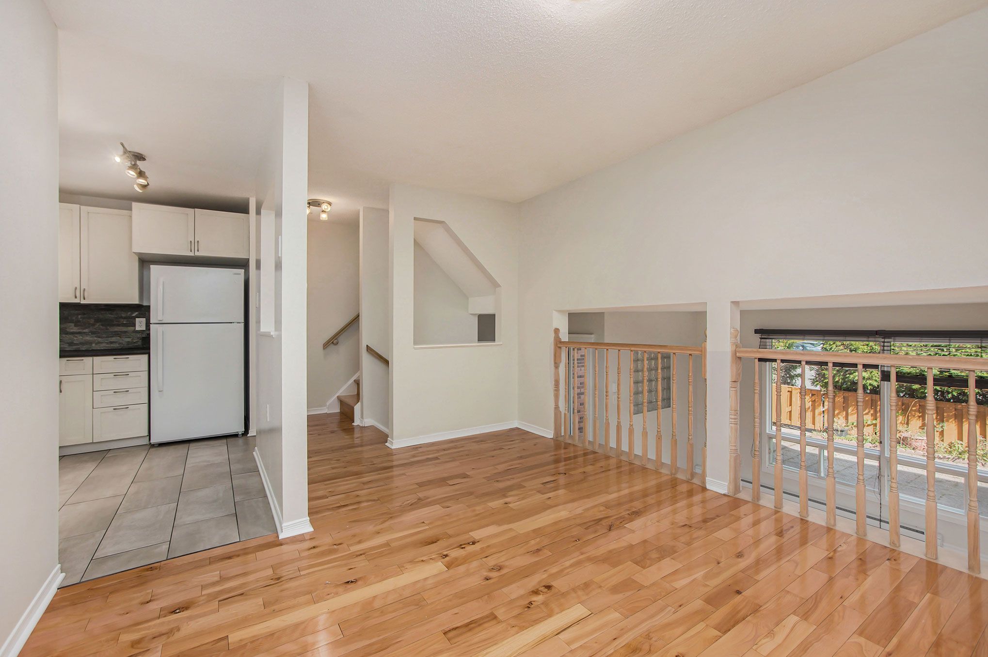 Beautifully renovated 3-bedroom freehold townhome with 2 baths and 2 parking spaces in a quiet, family-friendly neighborhood beside a large park and community centre. Walking trails, transit, and shopping are all nearby for ultimate convenience. Inside, enjoy hardwood flooring on the main, staircase, and upper levels, plus a finished basement with ceramic tile. Recent updates include: fresh paint (2022), roof (2021), renovated upper bath (2020), modern kitchen with appliances (2019), and a newly landscaped front yard (2025). Association fee of $195. 75/month covers snow removal, private road repairs, and lawn maintenance. A rare opportunity to own a freehold home at an affordable price. Move-in ready and waiting for you!