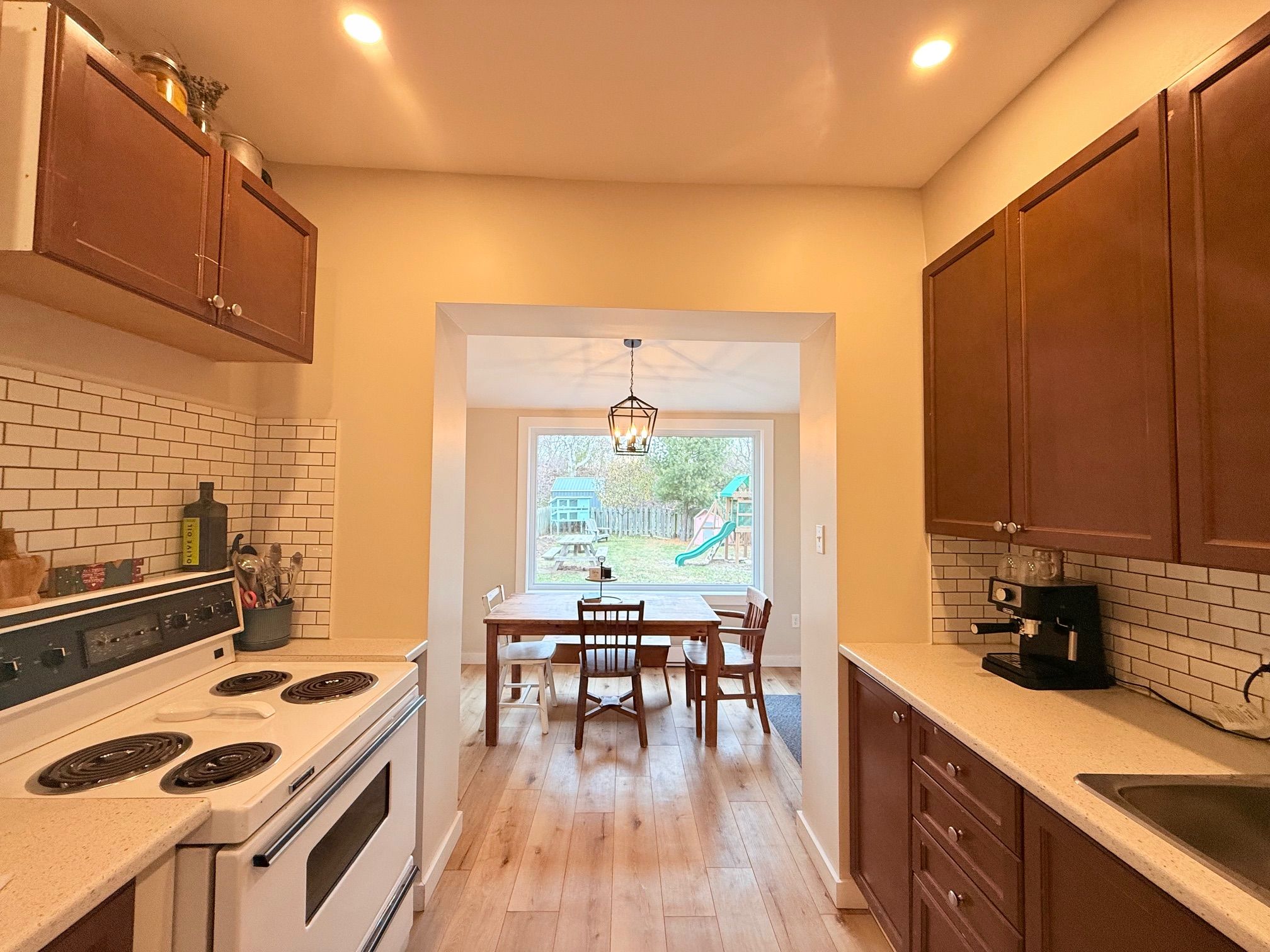 • Bright eat-in kitchen with ample counter space and lots of natural light.