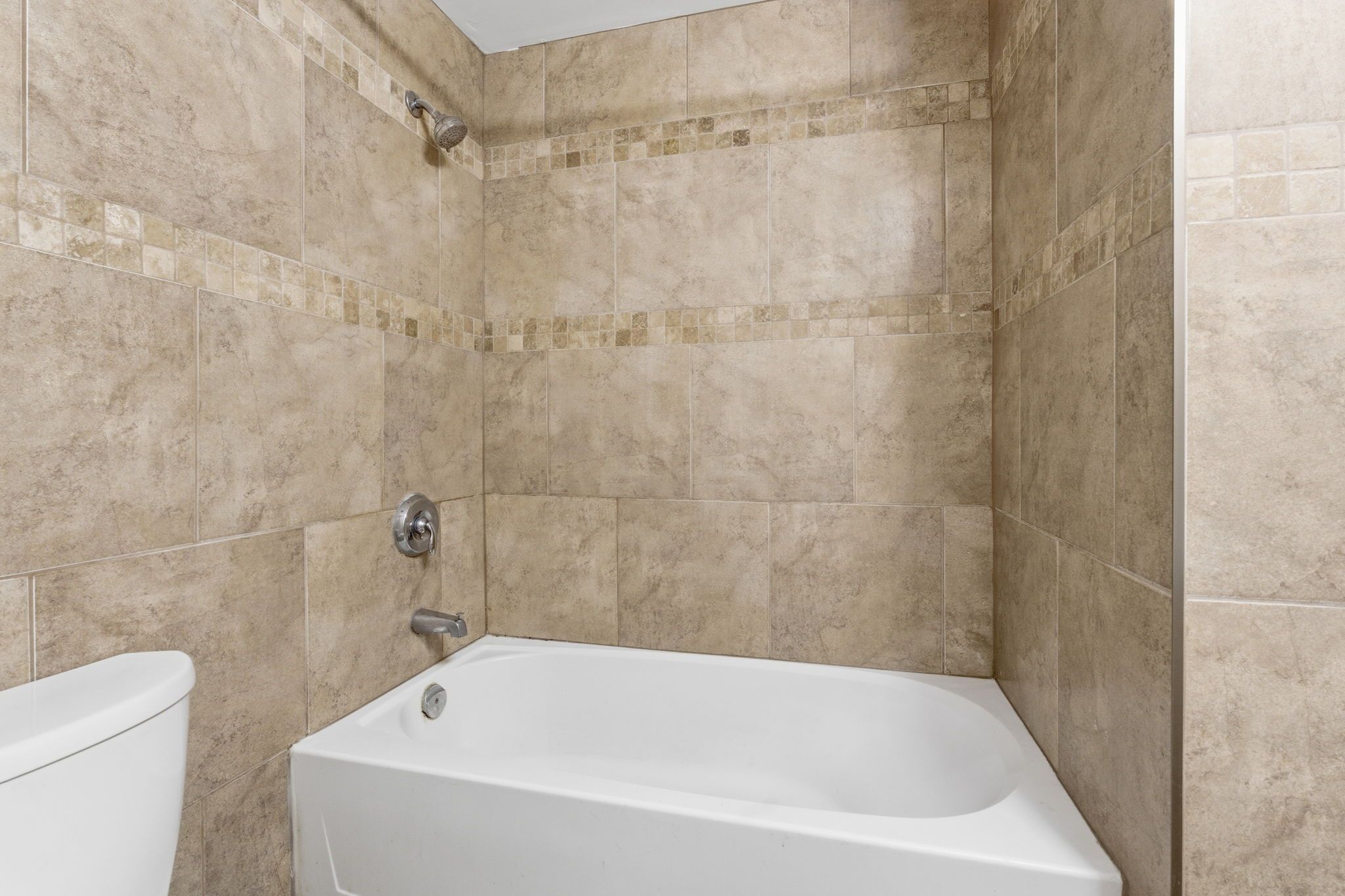 • Modern kitchen with soft-closing cabinets and tiled backsplash.