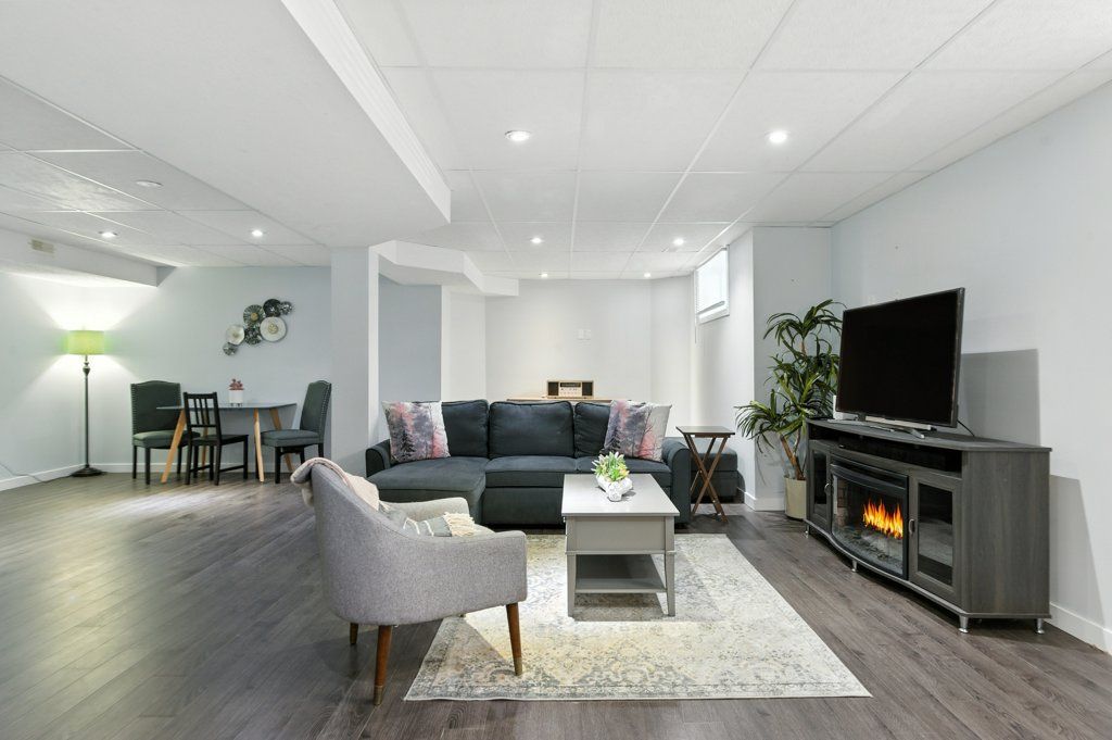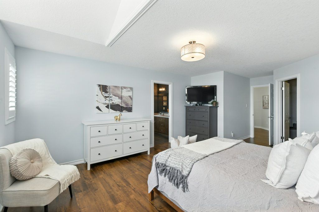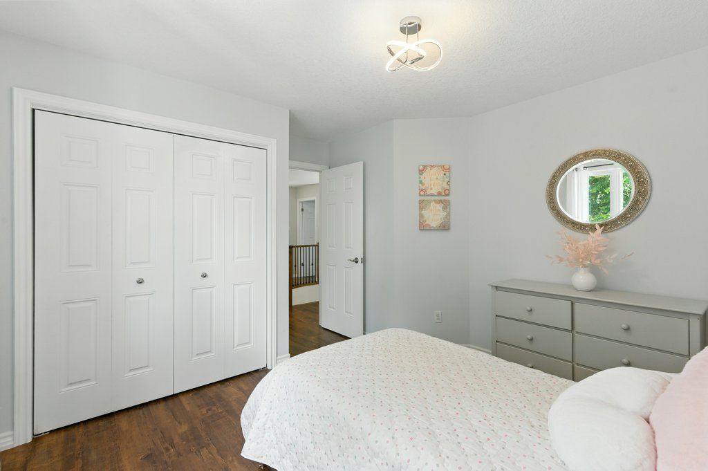 Beautiful, quiet family neighbourhood. This two-storey detached home offers 4+1 bedrooms, 4 baths, finished from top to bottom and located in a sought-after neighbourhood, the perfect mix of privacy and convenience. Nestled close to a park and backing onto walking trails, surrounded by tall trees and landscaped gardens, this property is a true family retreat. Step inside to a welcoming foyer open to above. Open-concept living and dining room with hardwood floors. The upgraded kitchen features custom cabinetry, newer stainless steel appliances, one of kind riverbed granite counters, a raised breakfast bar, and a sunny breakfast area with walkout to the backyard. Open concept cozy family room with fireplace, guest bathroom, and laundry with garage access complete the main floor. Upstairs, the private primary suite includes a fireplace, a massive walk-in closet, and a spa-like ensuite with soaker tub, glass shower, double vanity, and water closet (private toilet room). Three additional bedrooms with ample closets and a full bathroom provide plenty of family space. The fully finished basement adds versatility with a spacious rec room, guest or in-law bedroom, full 3-piece bathroom, plus options for a home office, gym, or extra bedroom. Outdoors, enjoy a double driveway, double garage, and a private backyard retreat with colourful gardens and a gazebo. Located just minutes to fergus, guelph, waterloo/kitchener, schools, shopping, major highway and lots of amenities around elora & fergus. This home is clean, bright and move-in ready.