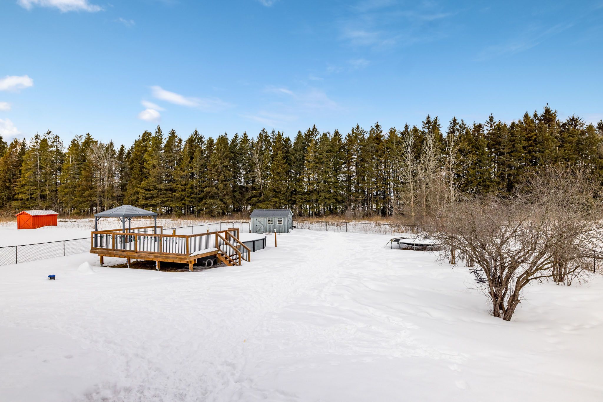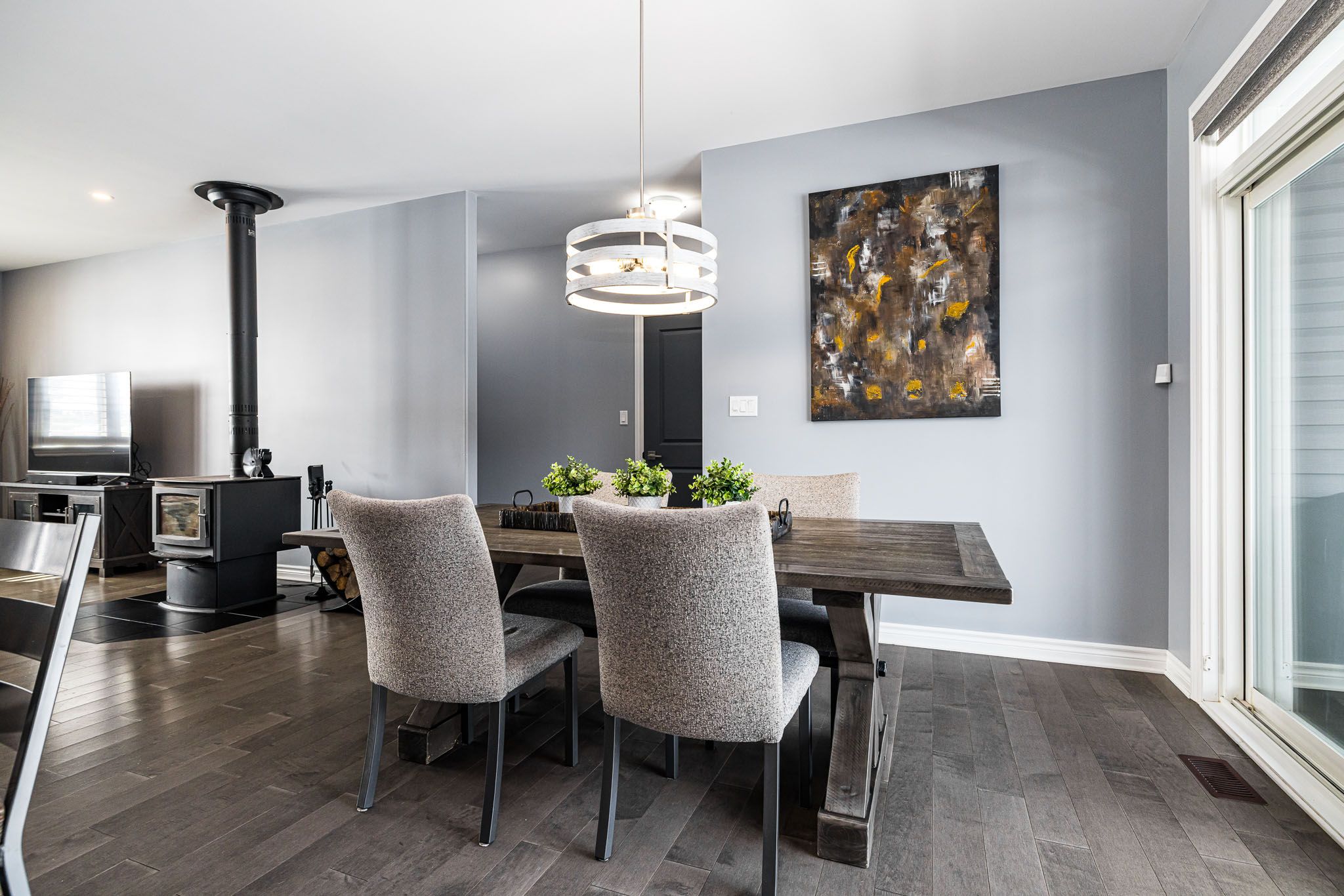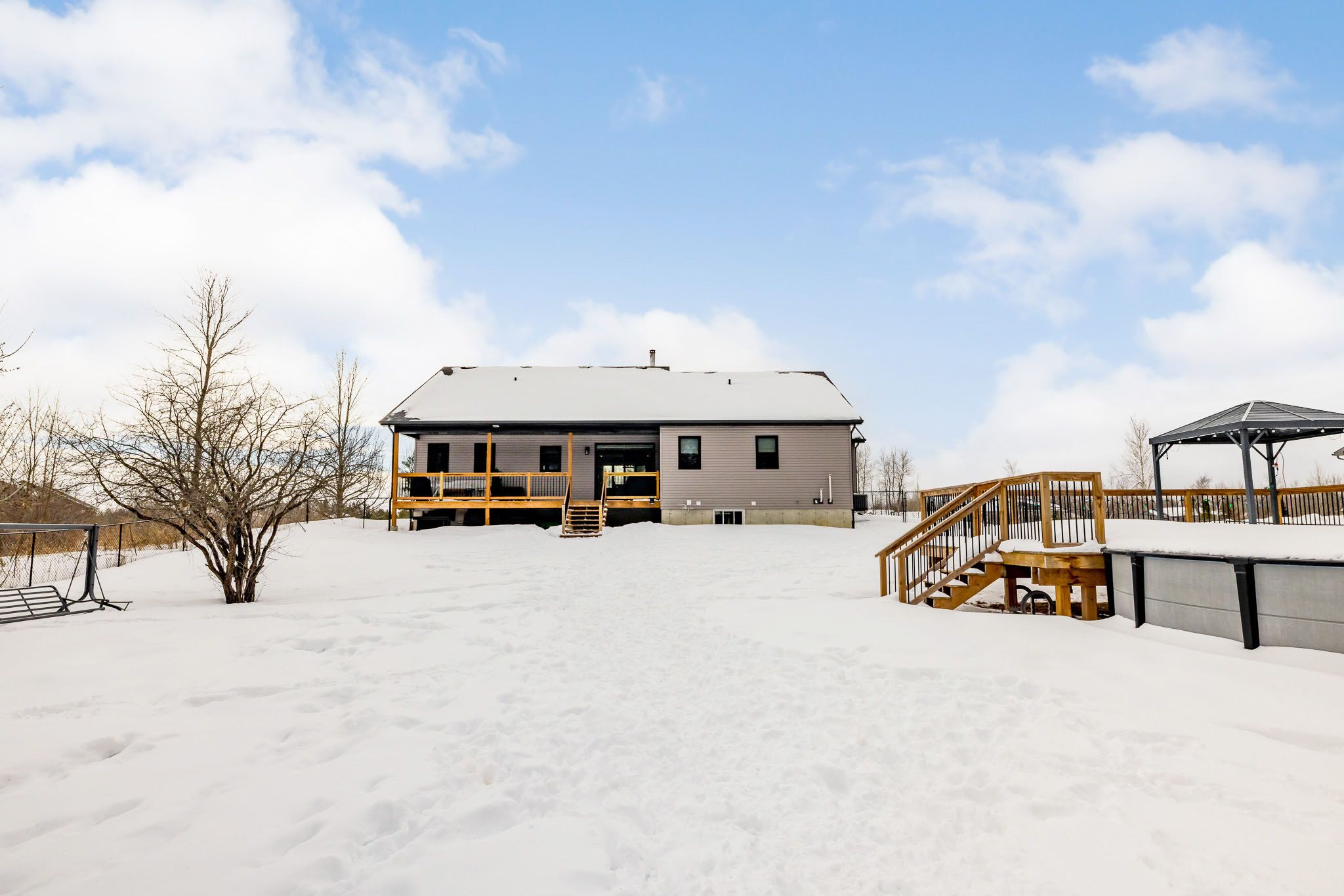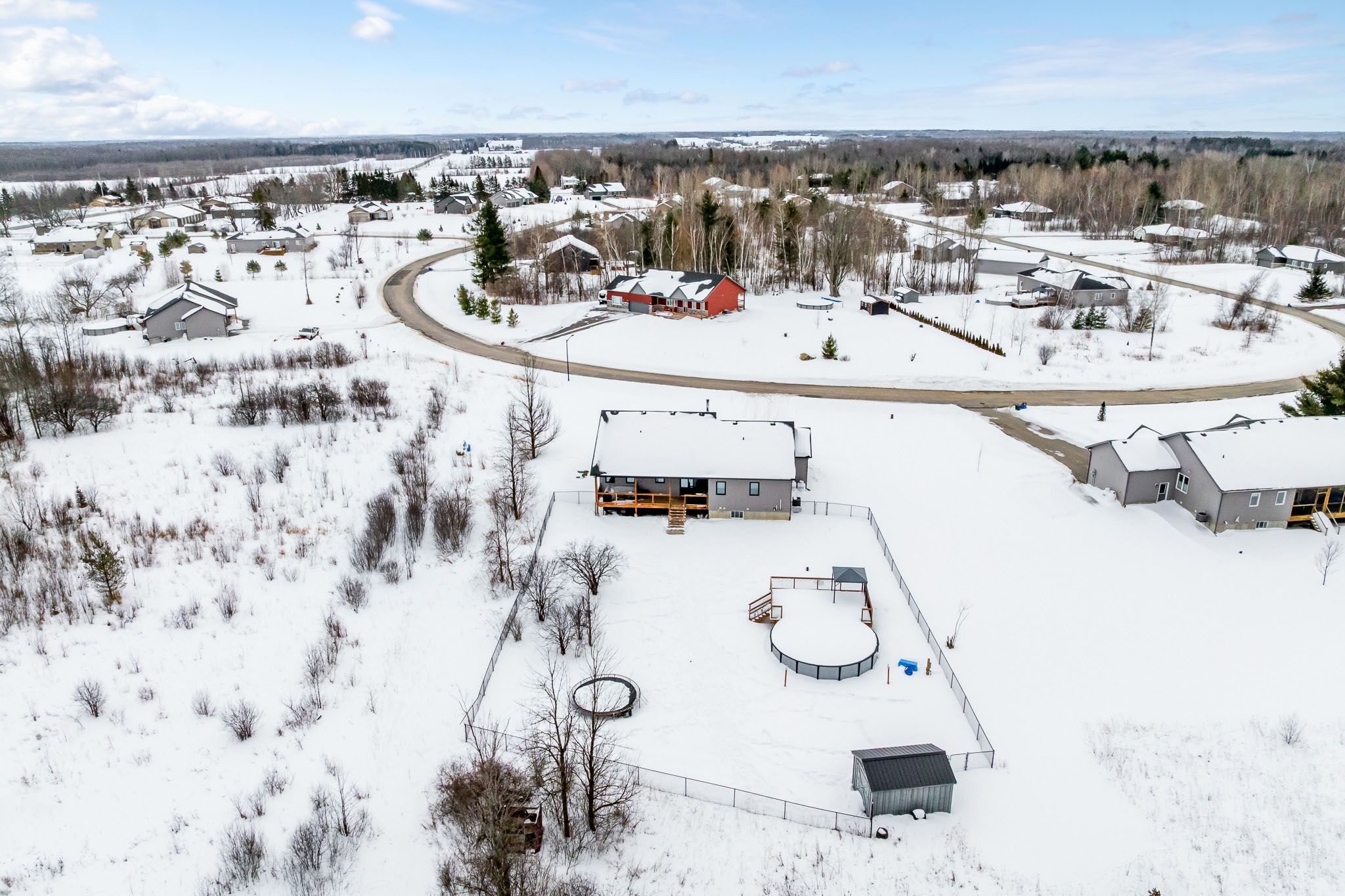 Welcome to 120 stirling crescent - a standout property on a private, treed oversized lot in a quiet kemptville suburb. This exceptional home offers spacious living, versatile spaces and outdoor features that make everyday life feel like a retreat. With 5 bedrooms and 3 bathrooms, this home is perfect for families needing room to grow. High-end finishes throughout the main floor include engineered hardwood, generous natural light and thoughtful design. The gourmet kitchen showcases stone countertops, stainless appliances and ample cabinet space, ideal for everyday meals and entertaining alike. A bright living room with a cozy wood stove creates a welcoming centrepiece for family gatherings. The main level also includes a convenient laundry room. The primary suite is a peaceful haven with a 4-piece ensuite bathroom featuring a soaker tub and a walk-in closet. Two additional bedrooms and a full family bathroom complete the main floor layout. The finished basement expands your living space even further with a large rec room perfect for games, media, or a second living area, plus two additional bedrooms, full bathroom and a generous storage area currently set up as a gym - plus plenty of space for seasonal gear and extras. Step outside to enjoy the expansive deck overlooking the fenced backyard, complete with an above-ground pool, pool deck and shed - perfect for summer fun and outdoor entertaining.