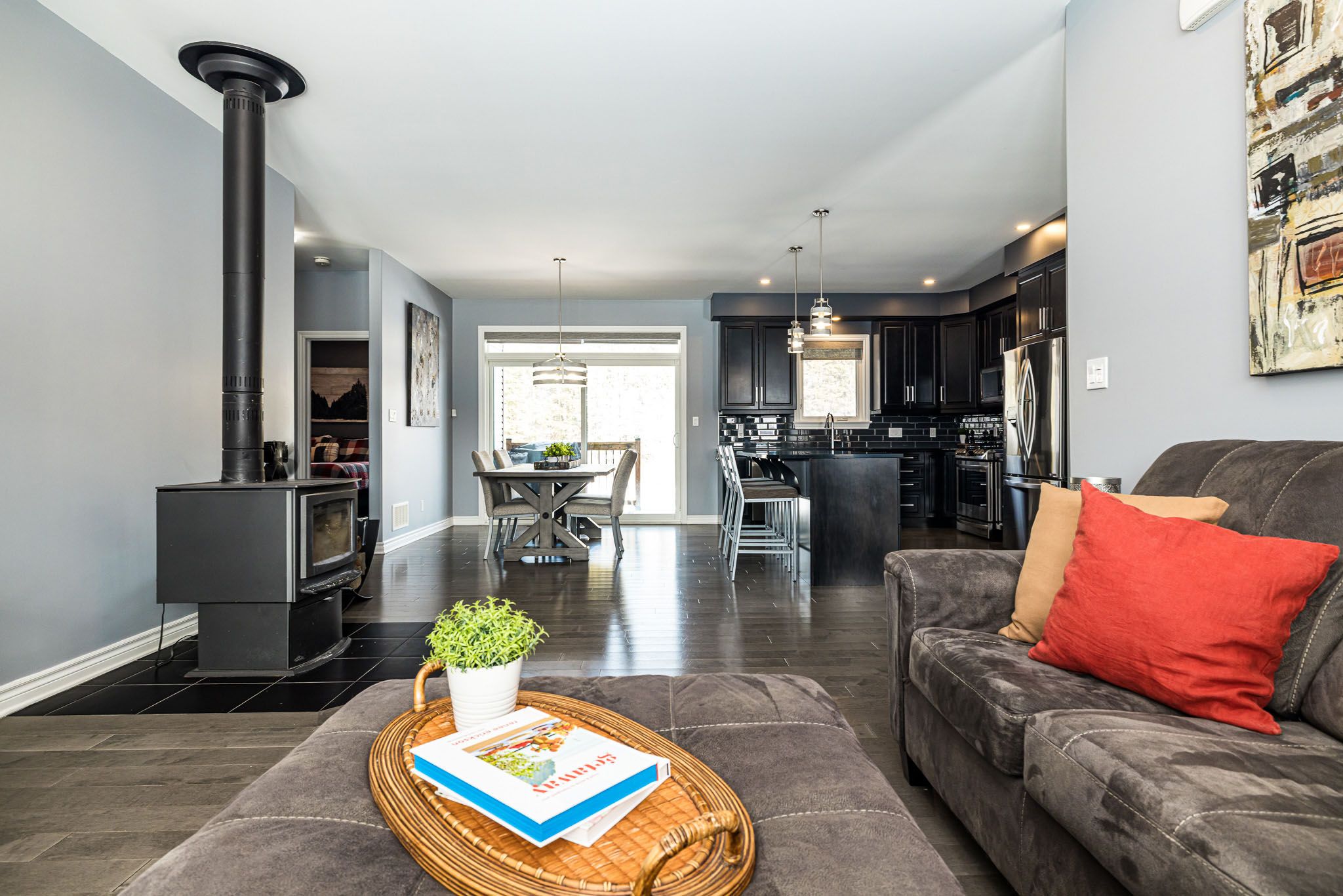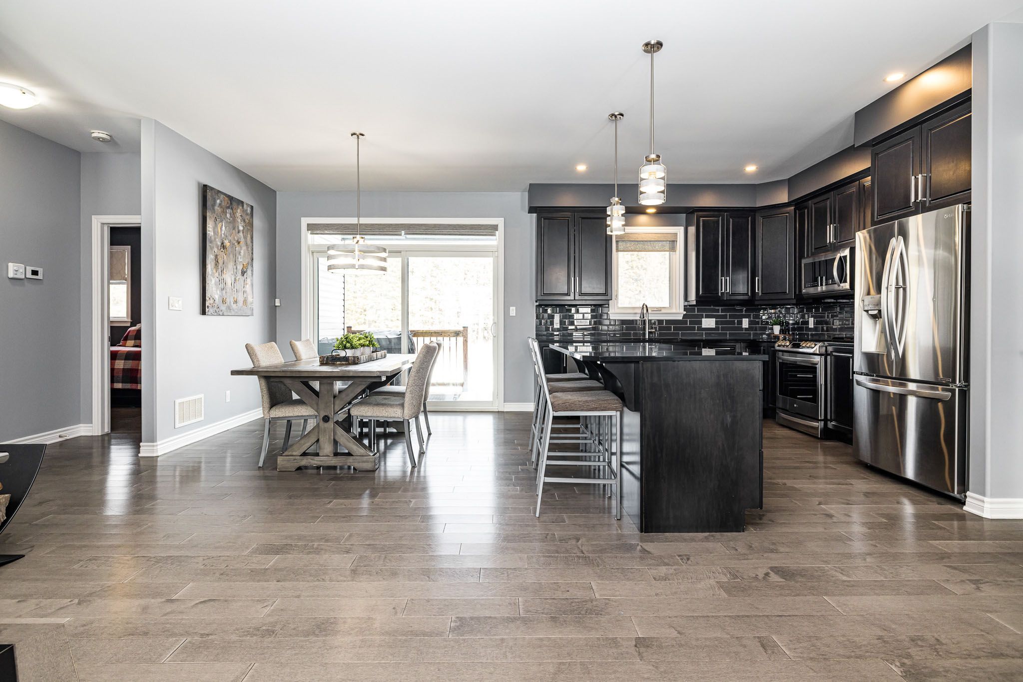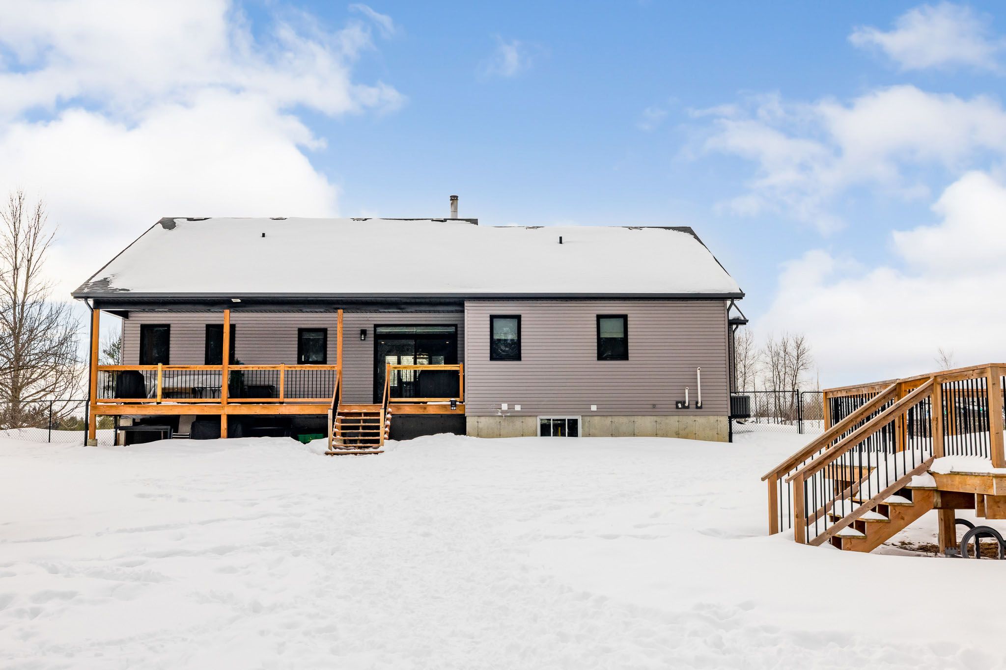 Welcome to 120 stirling crescent, a beautifully appointed home set on a private, oversized treed lot in a quiet kemptville neighbourhood. Designed for both comfort and versatility, this property offers generous living spaces and outdoor features that make everyday living feel like a retreat. Featuring 5 bedrooms and 3 bathrooms, this home is ideal for growing families or those seeking extra space to live, work and unwind. The main level showcases engineered hardwood flooring, abundant natural light and a thoughtfully designed layout. At the heart of the home, the gourmet kitchen offers stone countertops, stainless steel appliances, and ample cabinetry-perfect for both daily living and entertaining. The bright living room, centred around a cozy wood stove, creates a warm and inviting space for gathering. The main floor also includes a convenient laundry room, along with a serene primary suite complete with a walk-in closet and a 4-piece ensuite featuring a relaxing soaker tub. Two additional bedrooms and a full family bathroom complete this level. The fully finished basement adds even more flexibility, offering a spacious rec room ideal for games, movie nights or a secondary living area, along with two additional bedrooms, a full bathroom and a large storage area currently set up as a home gym, with plenty of room for seasonal storage. Outdoors, enjoy a large deck overlooking the fenced backyard, complete with an above-ground pool, pool deck and storage shed - perfect for summer entertaining and family fun.