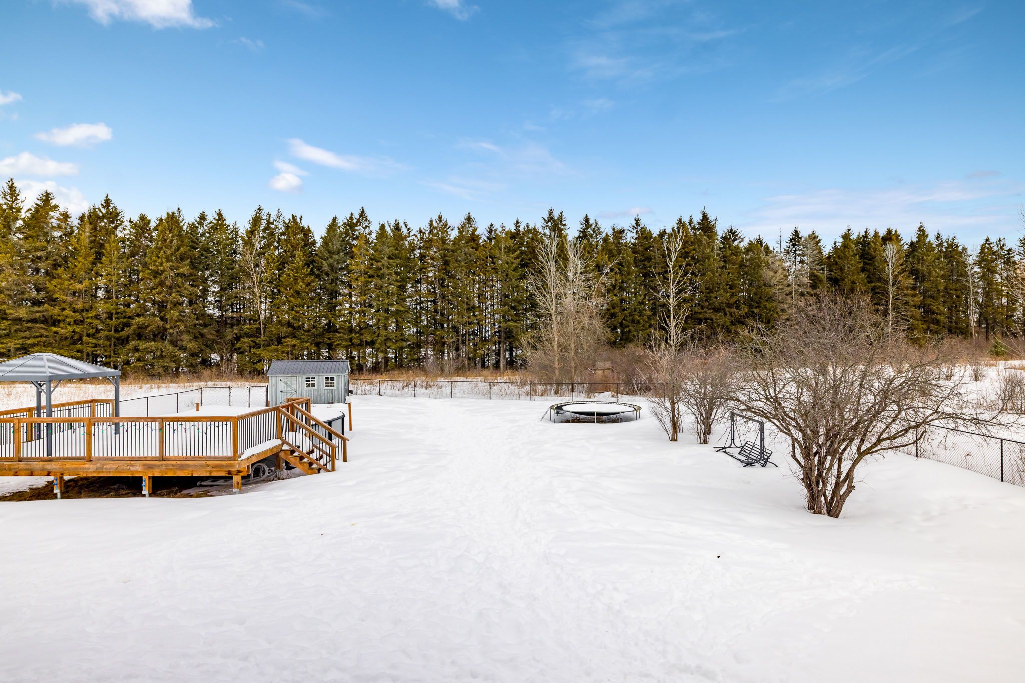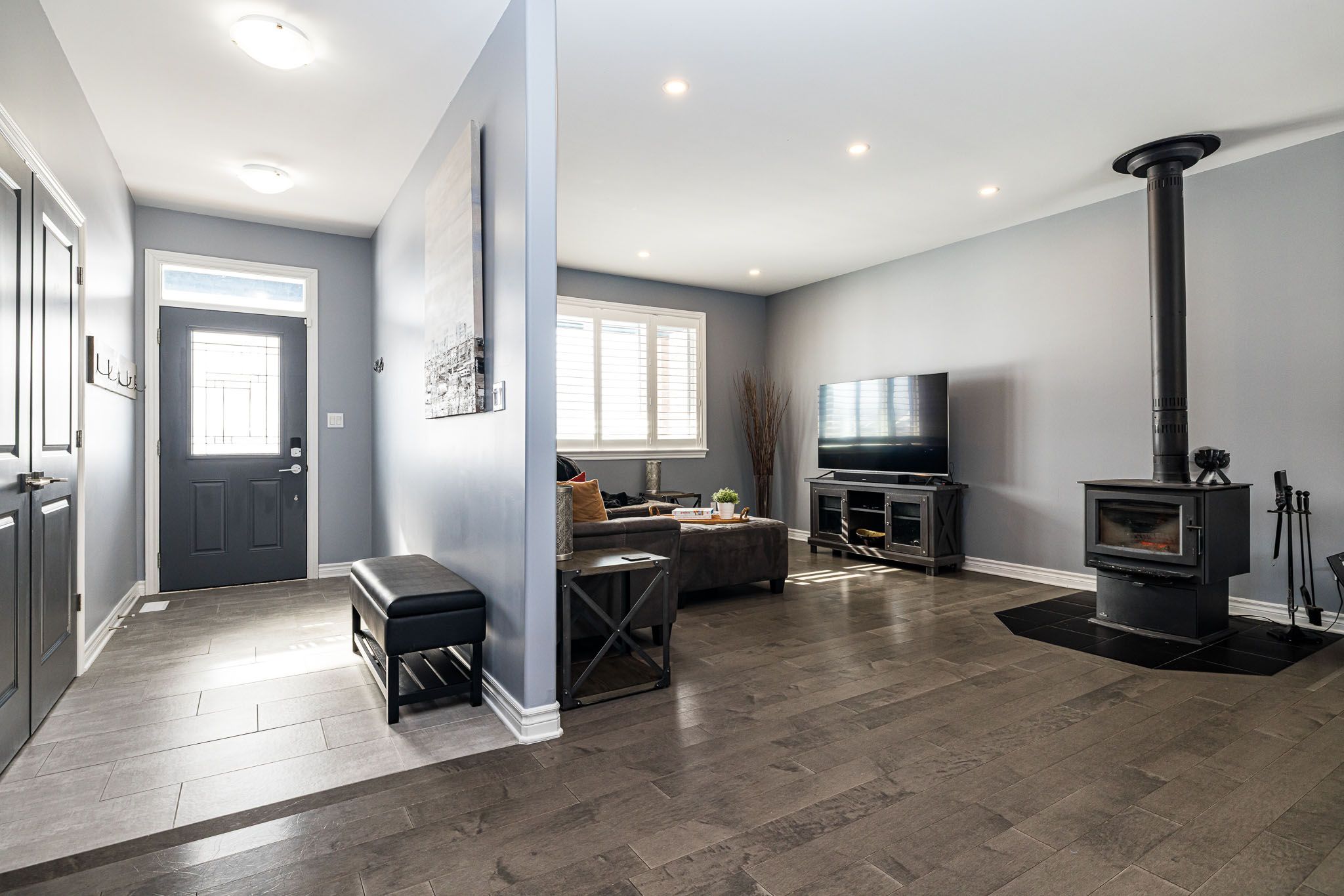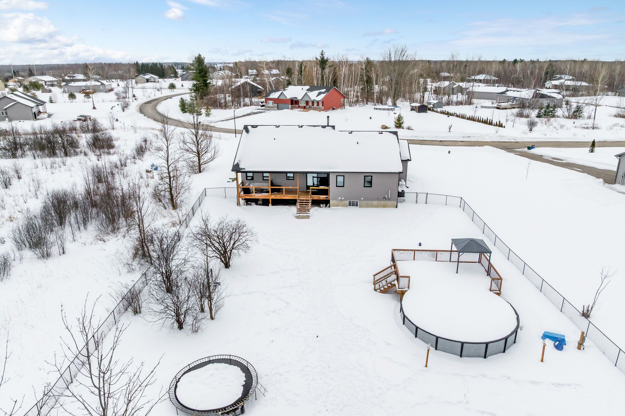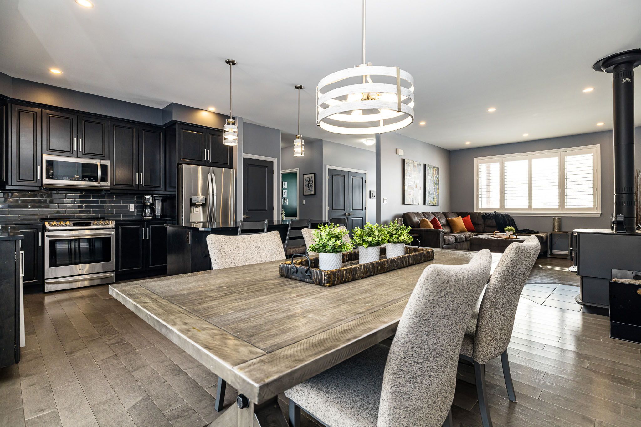 Welcome to 120 stirling crescent, a beautifully appointed home set on a private, oversized treed lot in a quiet kemptville neighbourhood. Designed for both comfort and versatility, this property offers generous living spaces and outdoor features that make everyday living feel like a retreat. Featuring 5 bedrooms and 3 bathrooms, this home is ideal for growing families or those seeking extra space to live, work and unwind. The main level showcases engineered hardwood flooring, abundant natural light and a thoughtfully designed layout. At the heart of the home, the gourmet kitchen offers stone countertops, stainless steel appliances, and ample cabinetry-perfect for both daily living and entertaining. The bright living room, centred around a cozy wood stove, creates a warm and inviting space for gathering. The main floor also includes a convenient laundry room, along with a serene primary suite complete with a walk-in closet and a 4-piece ensuite featuring a relaxing soaker tub. Two additional bedrooms and a full family bathroom complete this level. The fully finished basement adds even more flexibility, offering a spacious rec room ideal for games, movie nights or a secondary living area, along with two additional bedrooms, a full bathroom and a large storage area currently set up as a home gym, with plenty of room for seasonal storage. Outdoors, enjoy a large deck overlooking the fenced backyard, complete with an above-ground pool, pool deck and storage shed - perfect for summer entertaining and family fun.