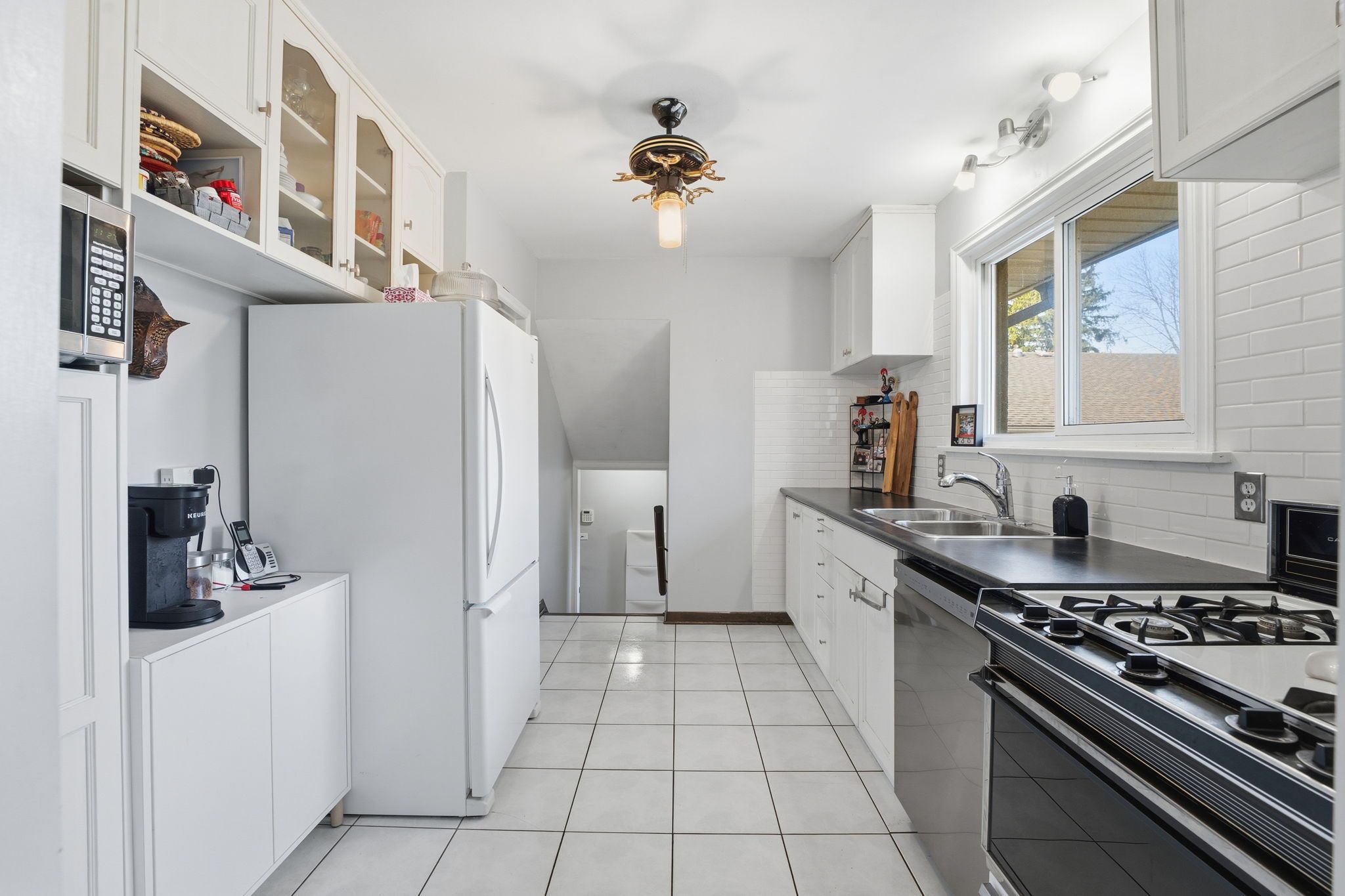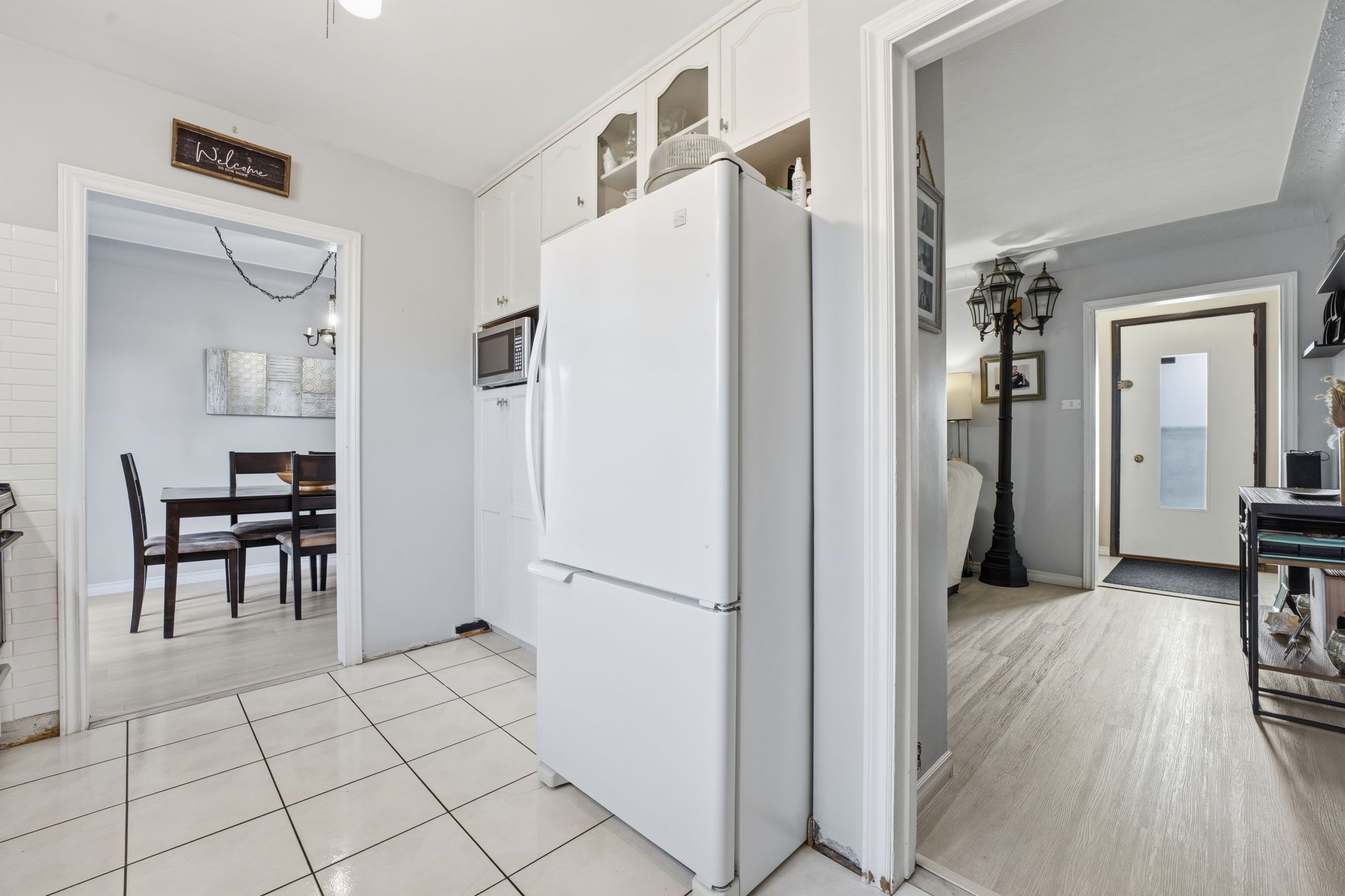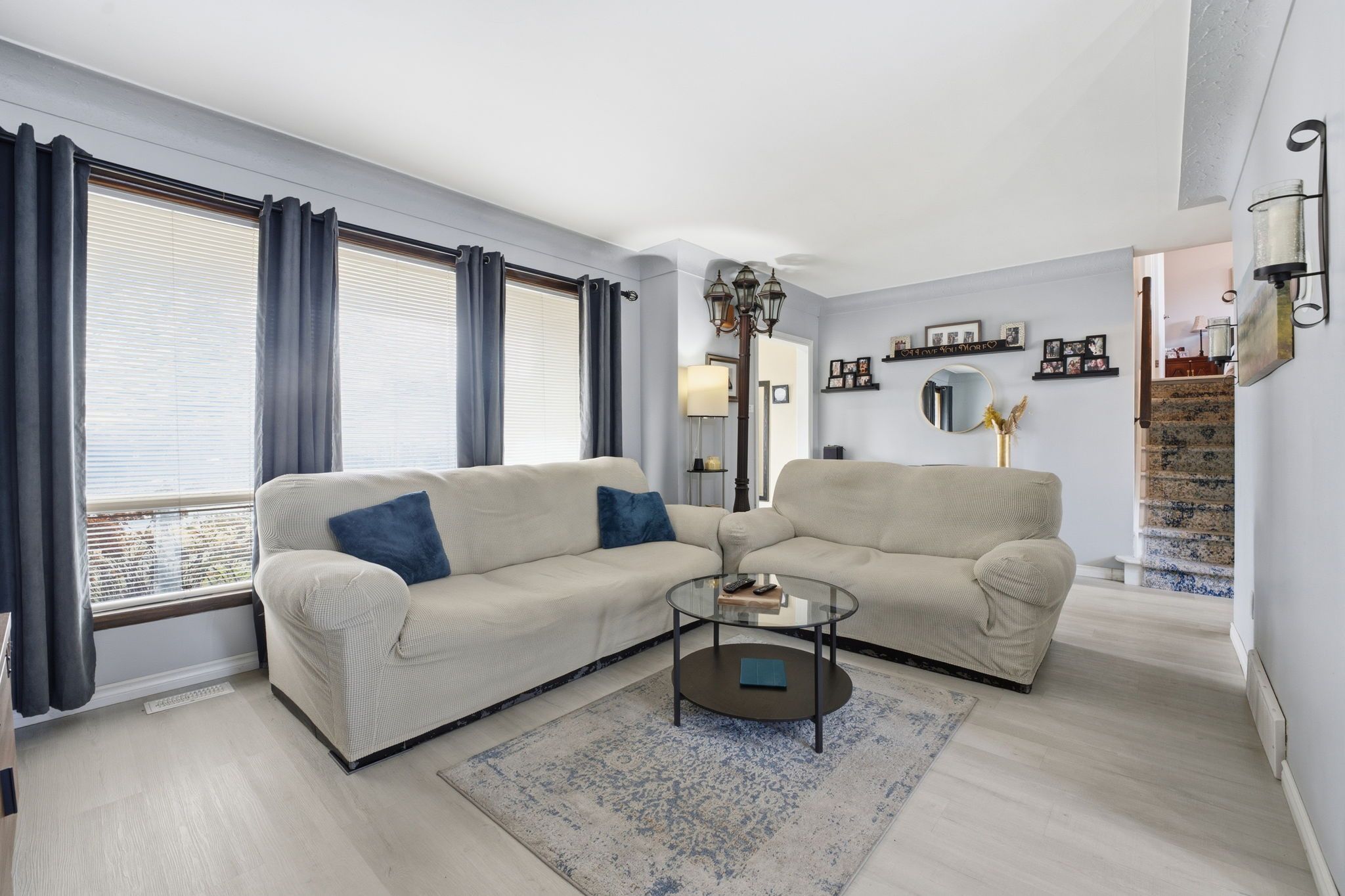 • Bright main floor with spacious living room and open dining area.