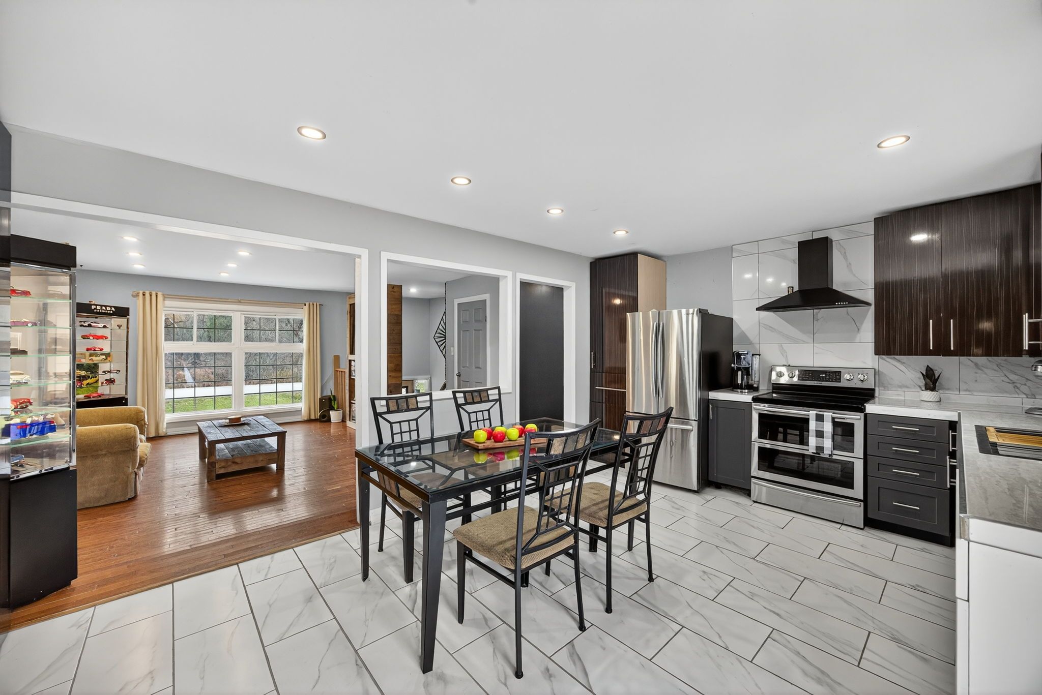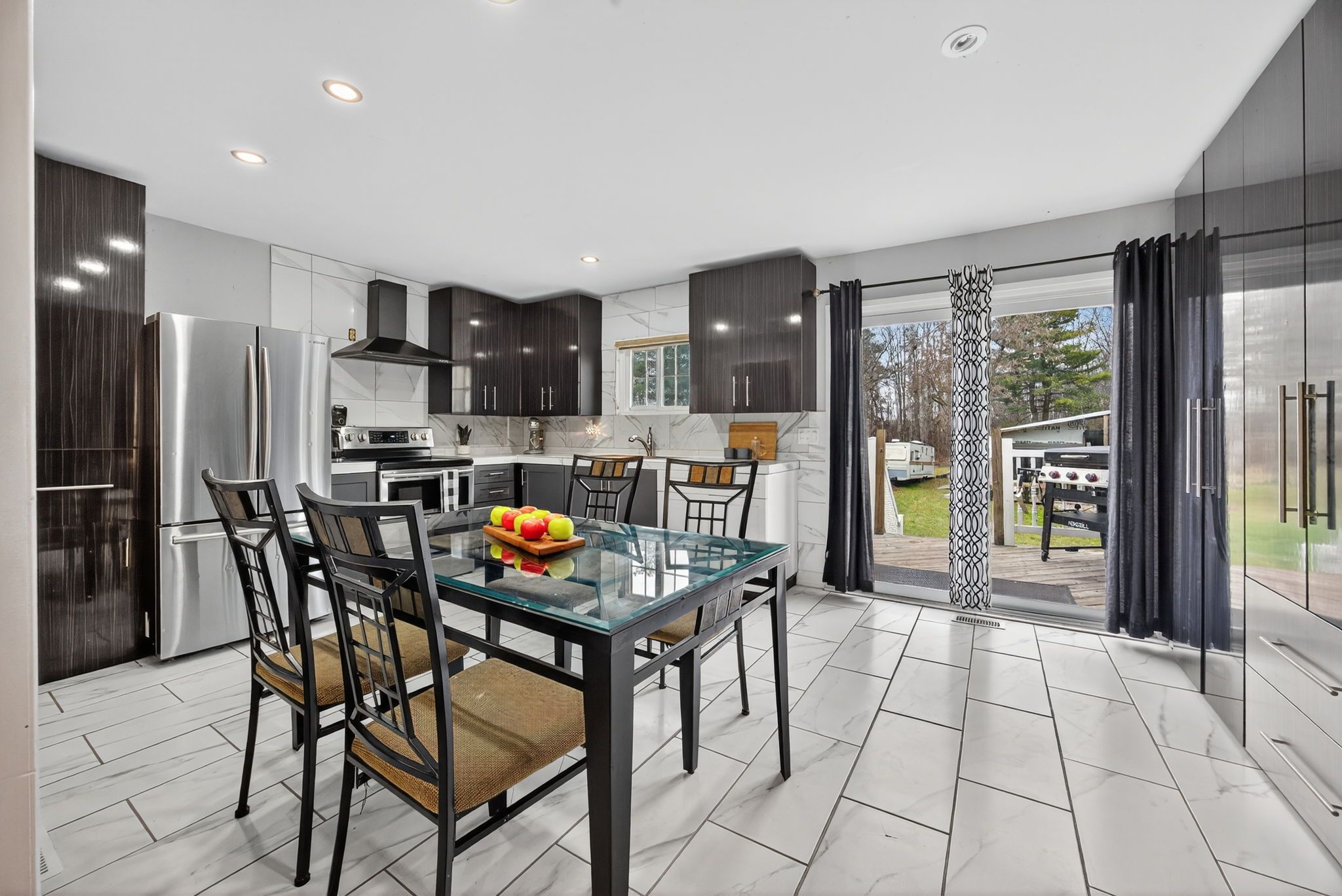 Raised-bungalow nestled on 0. 5 acre private lot with no neighbours behind in the quiet community of new lowell! Bonus 24' x 36' - 925 sqft detached shop is fully insulated & heated with its own 100 amp electrical panel, fitting 6 cars, & is perfect for hobbyists, extra storage, or mechanics with driveway extended straight to garage. Over 2,600+ of available living space, main level features open concept space with large window overlooking front yard, pot lights, & hardwood flooring throughout! Fully renovated eat-in kitchen (2024) with ceramic tiles, marble countertops (2024), lots of cabinetry space, newer appliances (2020) & walk-out to backyard deck! 3 spacious bedrooms each with hardwood flooring & closet space! Plus newly renovated 4 piece bathroom & combined main level laundry for extra convenience! Fully finished lower level in-law suite features new trim & broadloom flooring (2024), separate entrance from garage, cozy living space with gas fireplace plus secondary rec room with 2 piece bathroom is a perfect hangout space! Full kitchen with stove & fridge, 2 spacious bedrooms, & updated 3 piece bathroom. Perfect for extended family to stay or for additional income! Massive backyard with new garden shed (2024), spacious wood deck off of kitchen, tons of green space for children to play, or perfect for hosting summer bbq's & enjoying the quiet small town surroundings! Extended 2 car garage is completely drywalled with access to backyard & basement. Recent updates include: owned hot water tank (2022), water softener, new doors (2022), windows & roof (2017), 200amp panel for house + 100amp panel to detached garage, & freshly painted! Enjoy small town living surrounded by open fields, parks, campgrounds, & conservation areas, while still being a short 10 minute drive to angus & all major amenities!