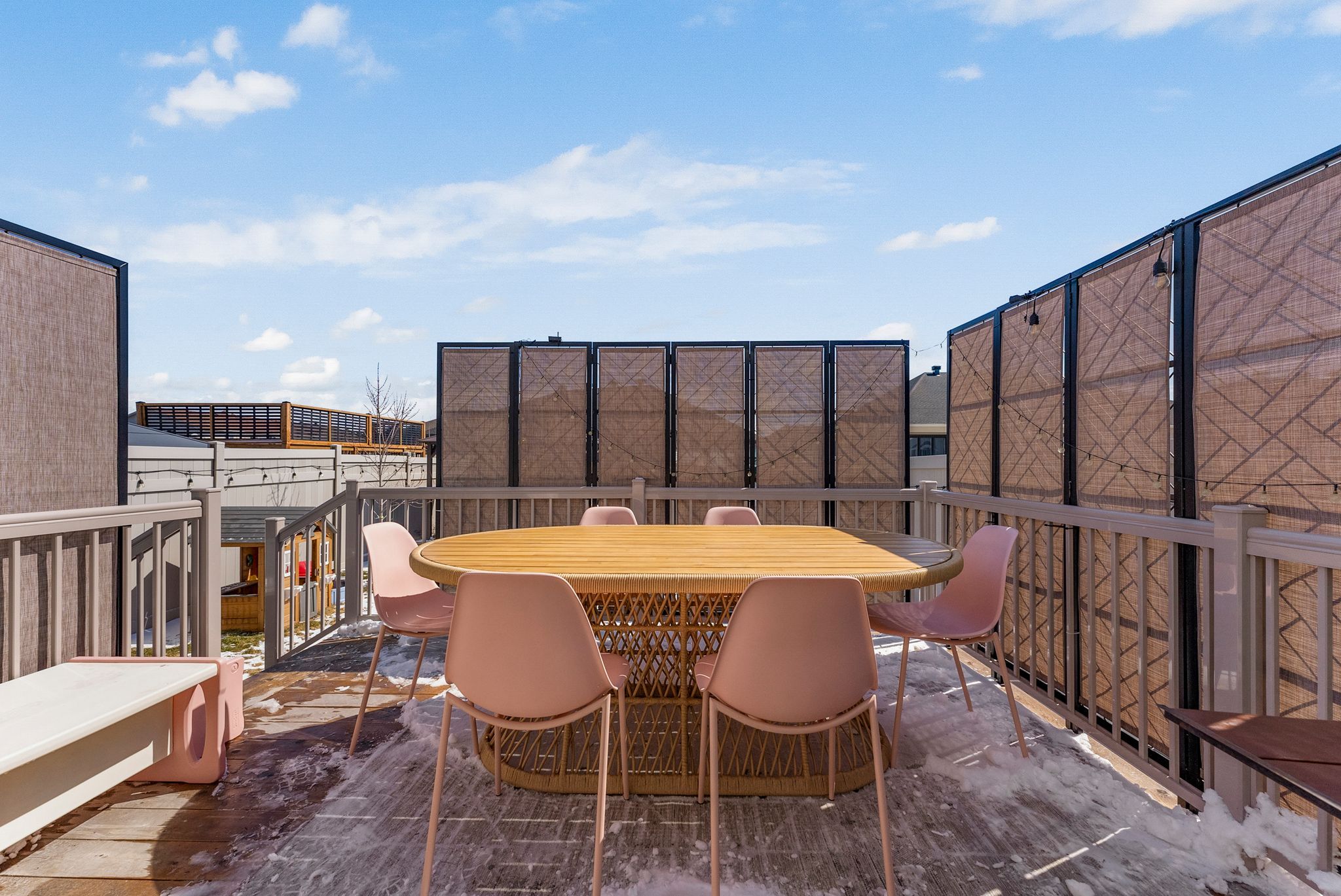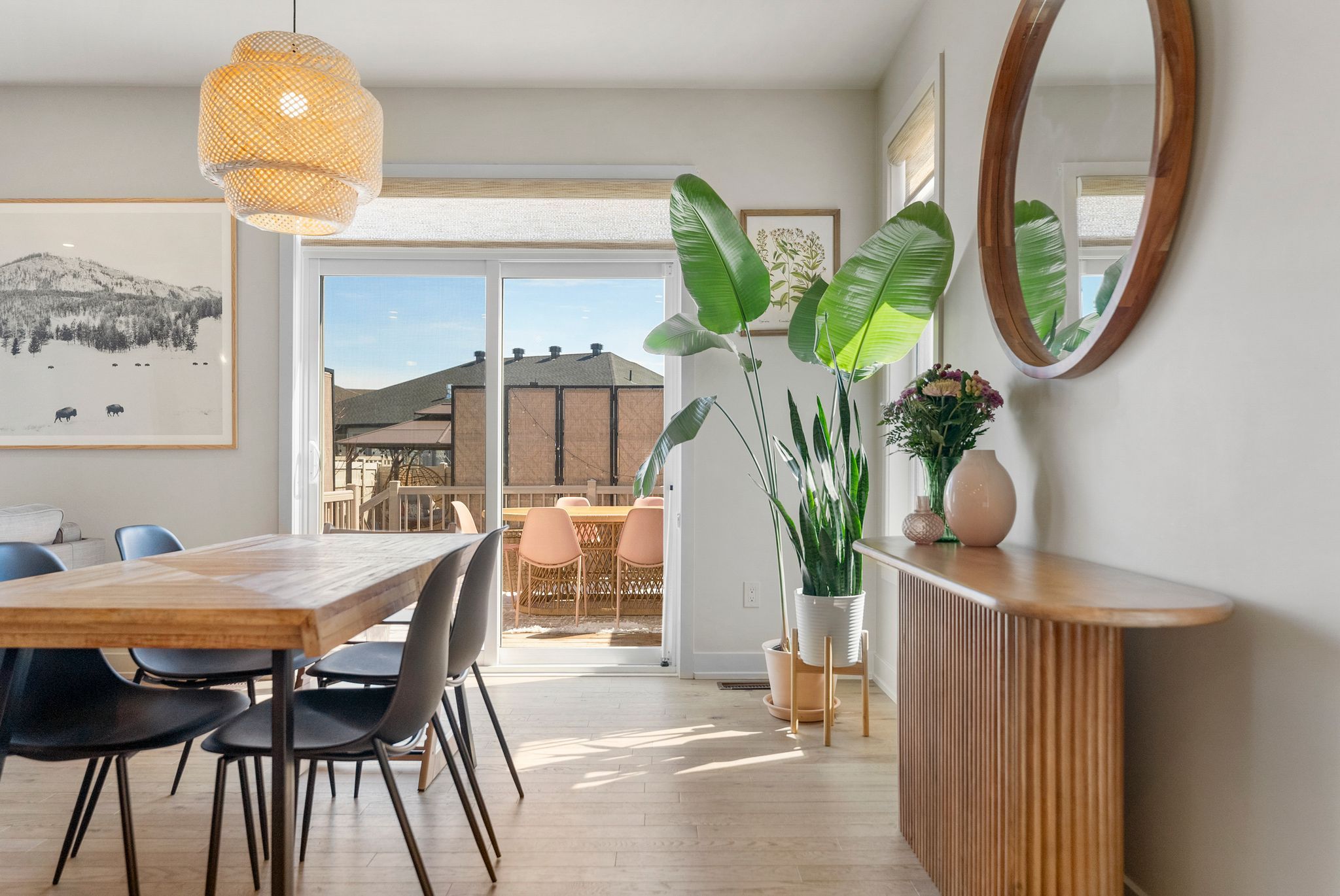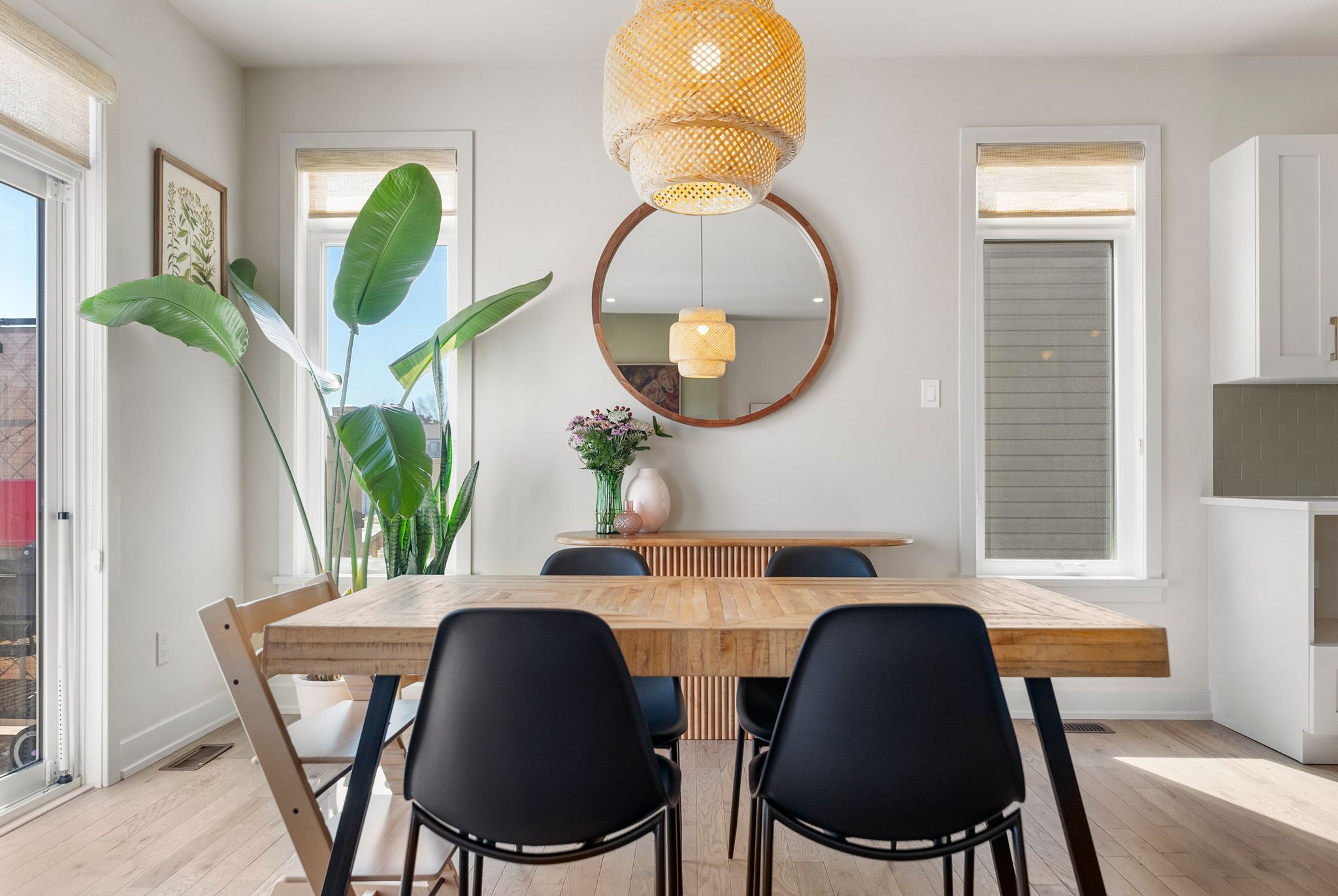 • Spacious kitchen with quartz countertops and outdoor access for hosting.