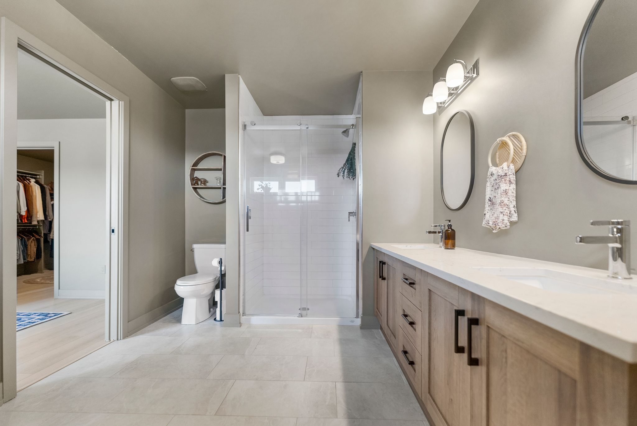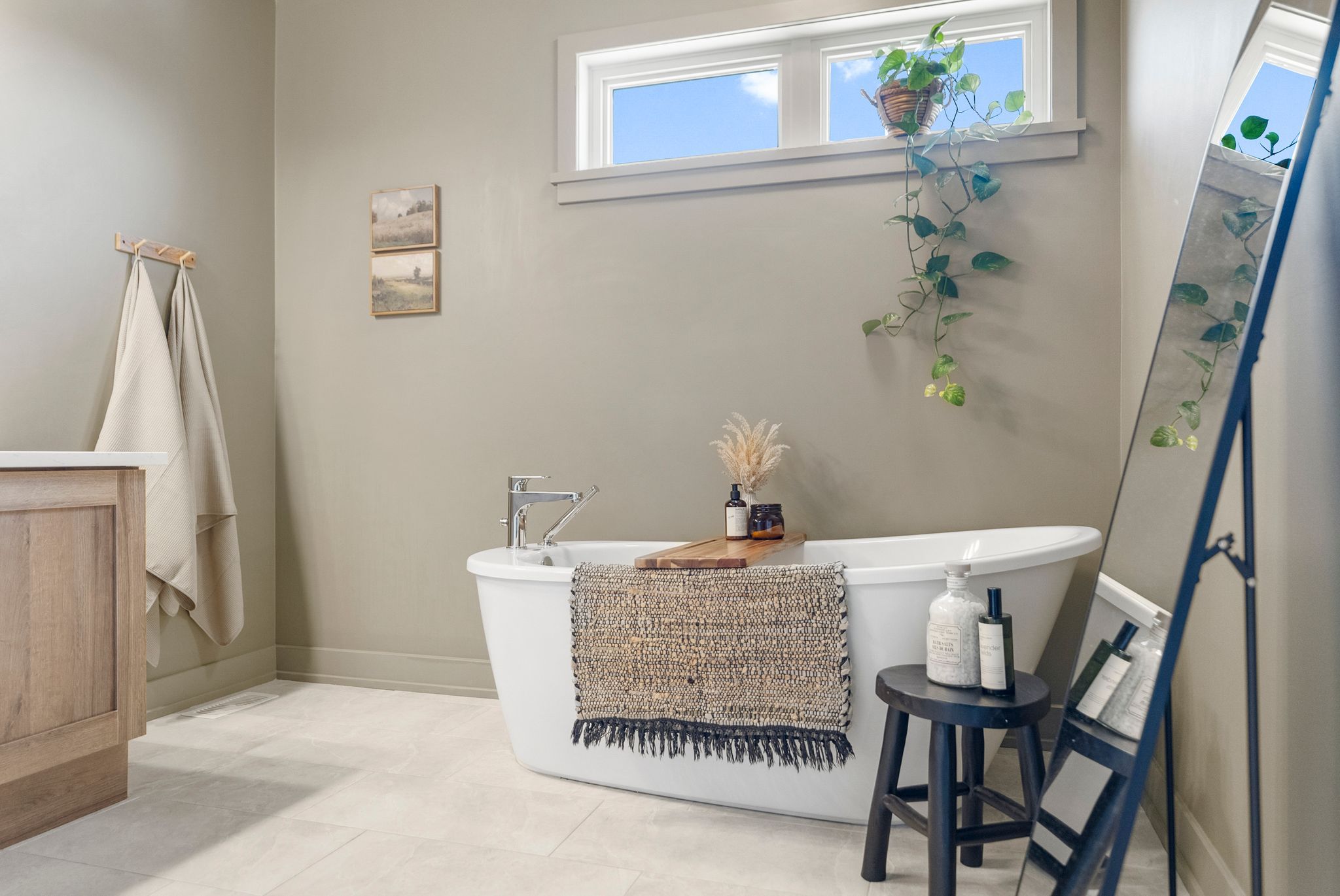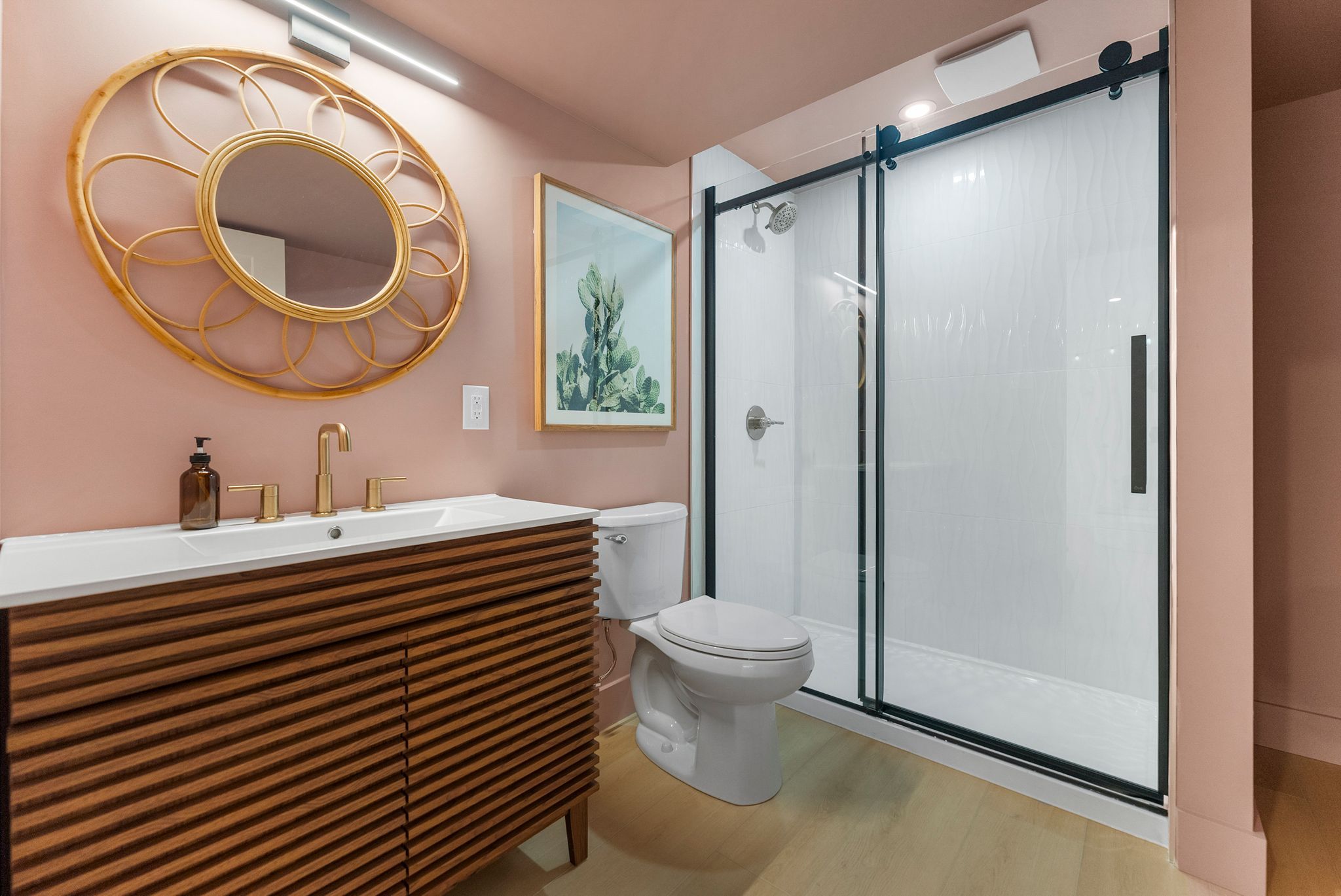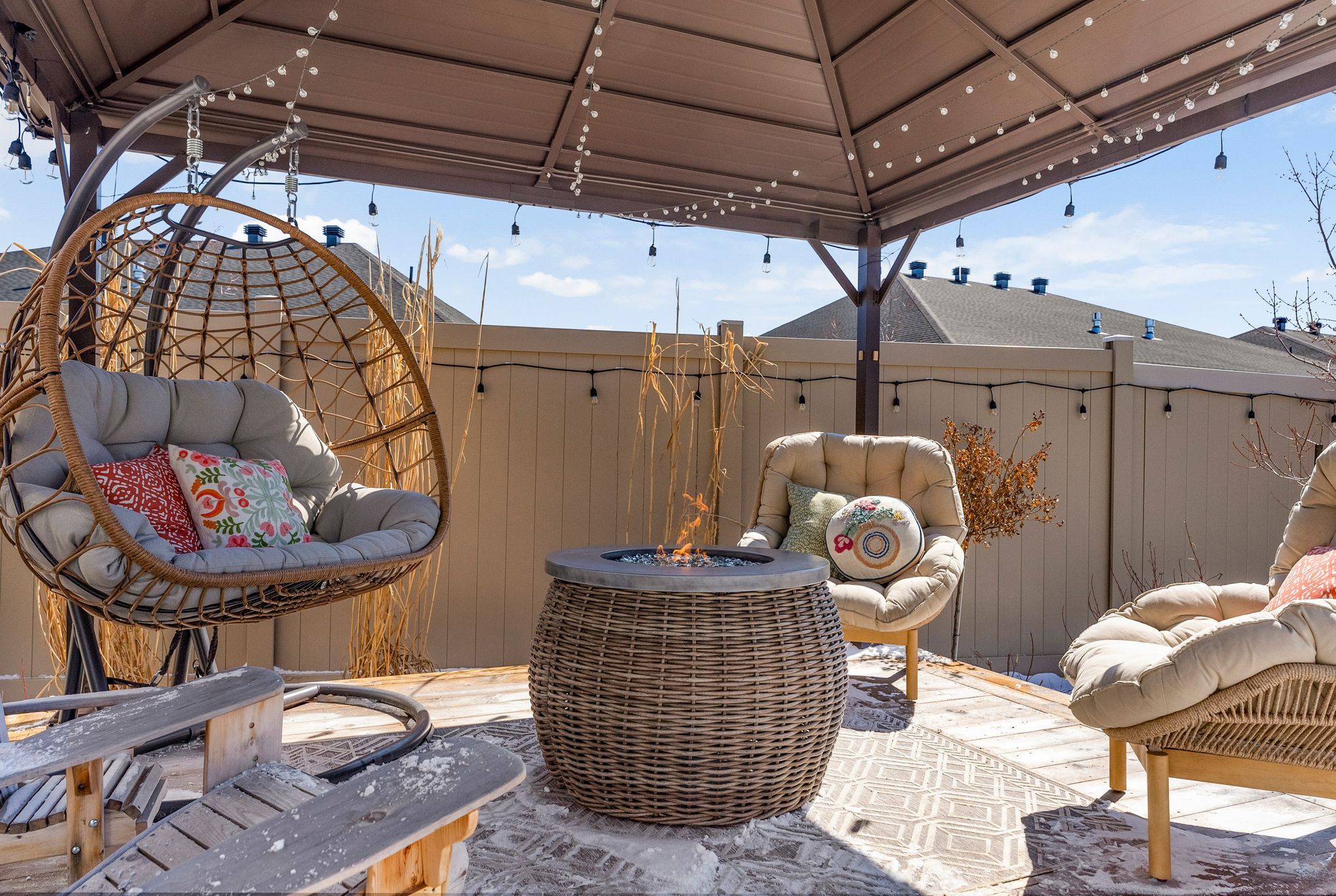 • Spacious kitchen with quartz countertops and outdoor access for hosting.