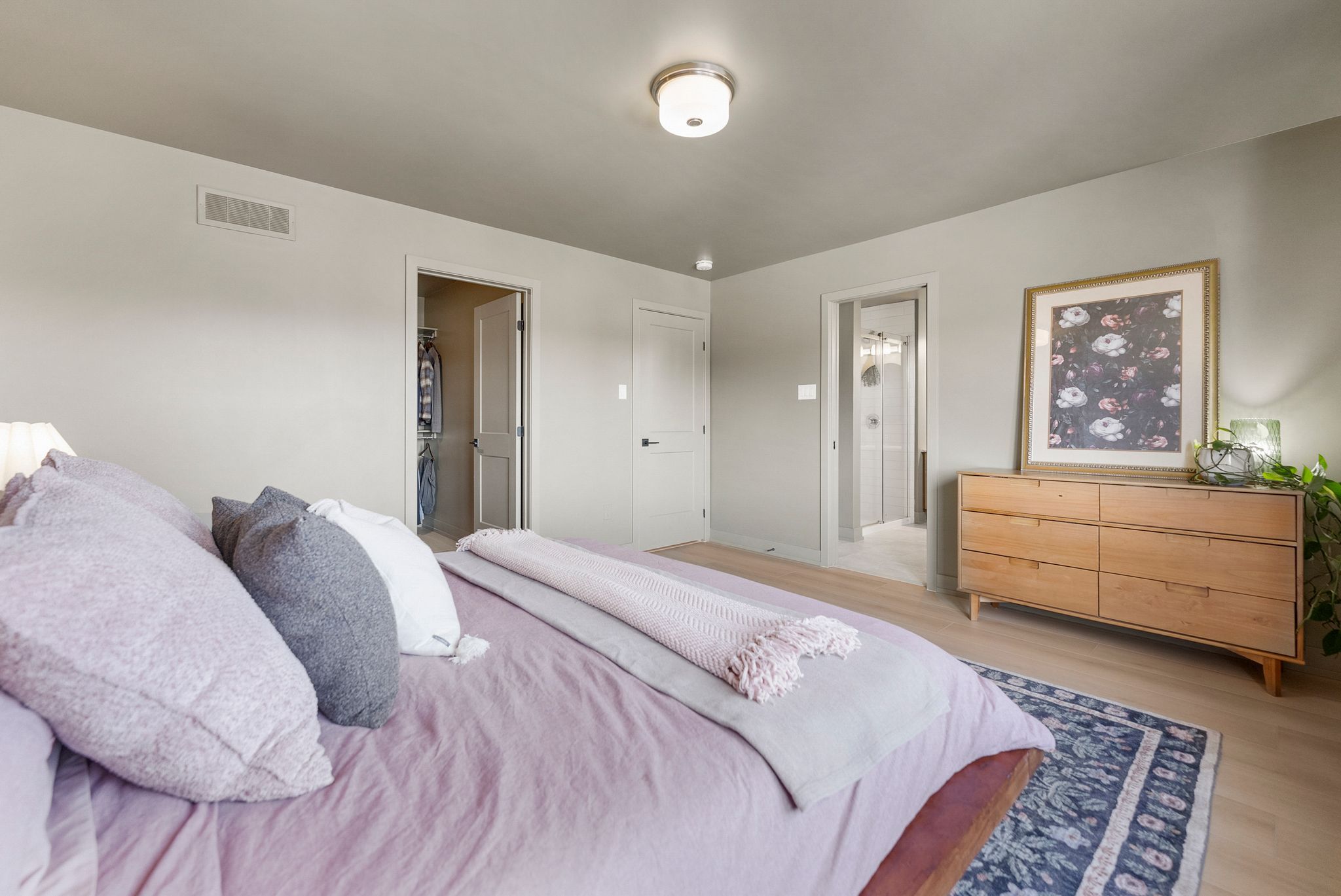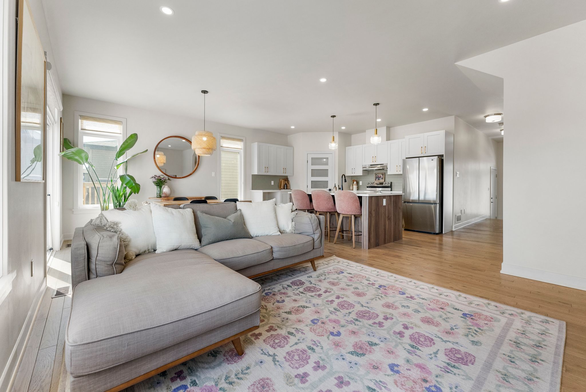 • Bright, open-concept floor plan with 9ft ceilings and hardwood floors.