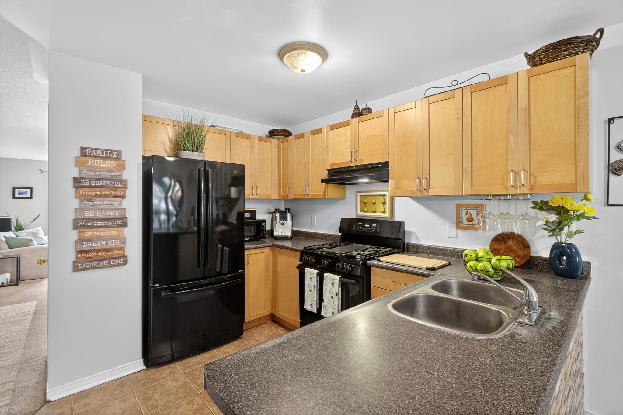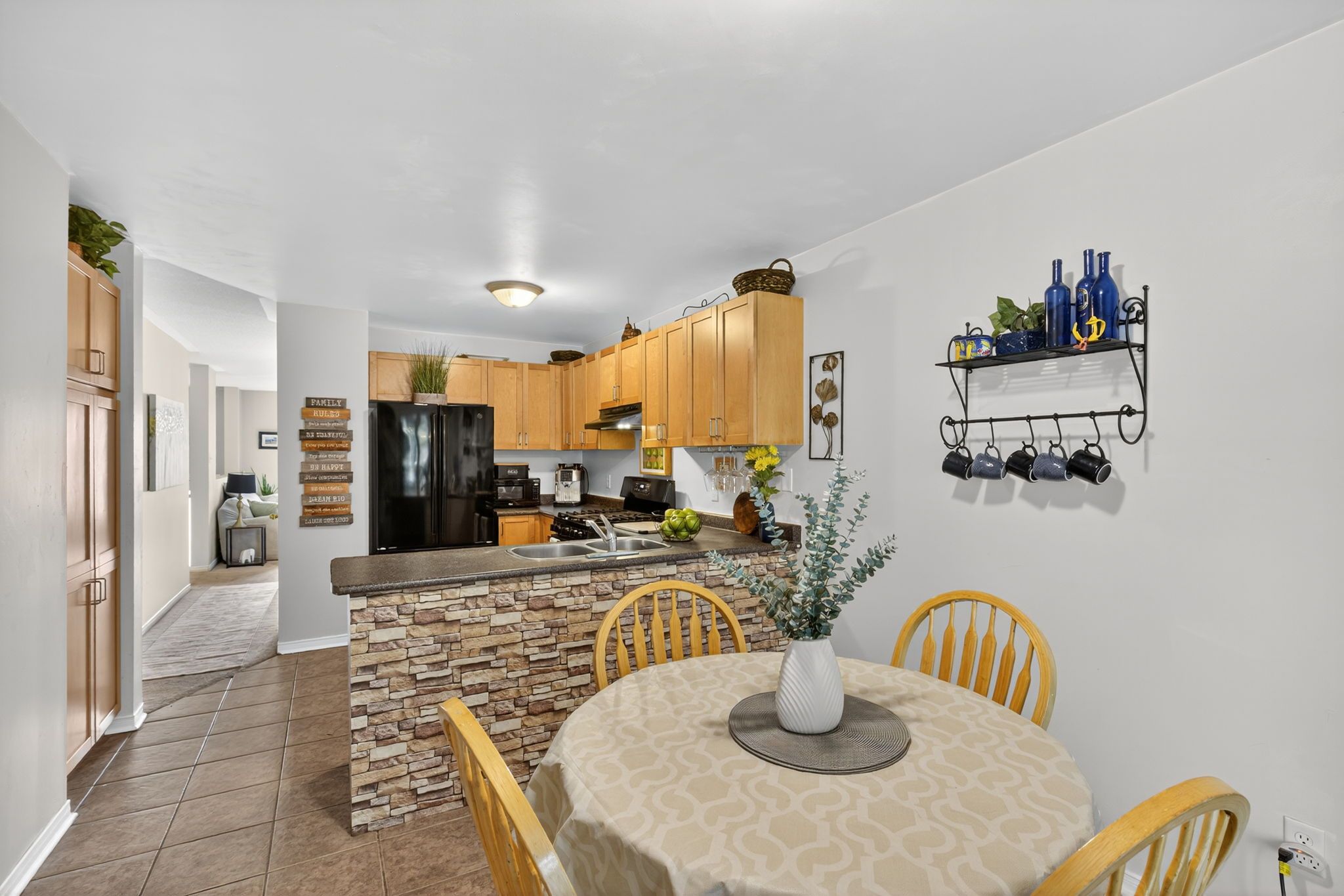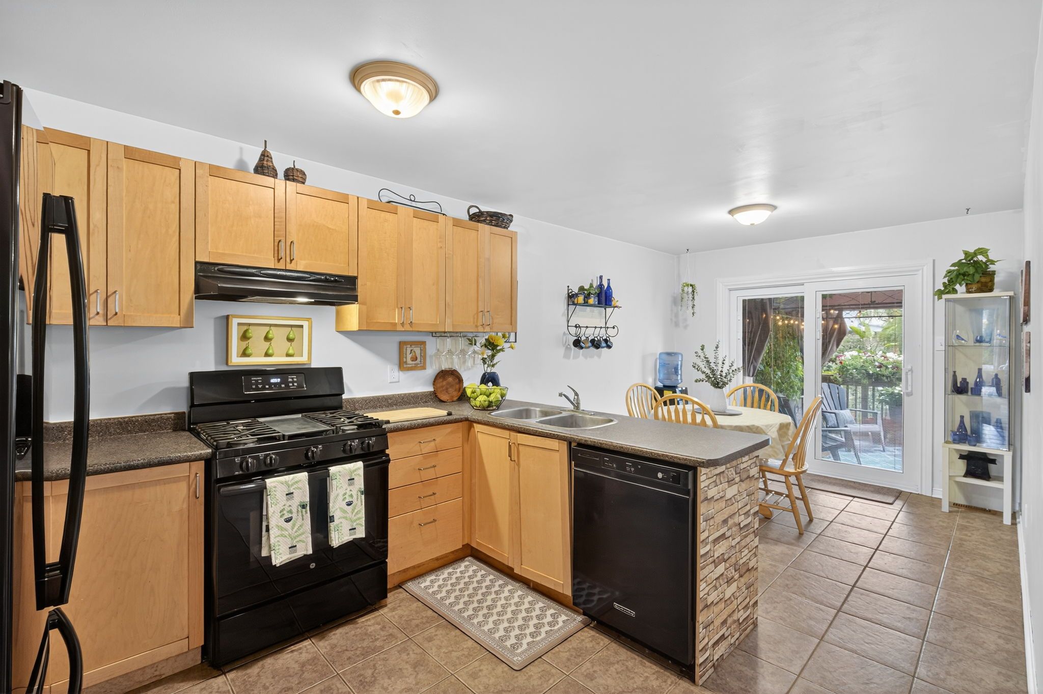 • Generous eat-in kitchen with a walkout to the private backyard.