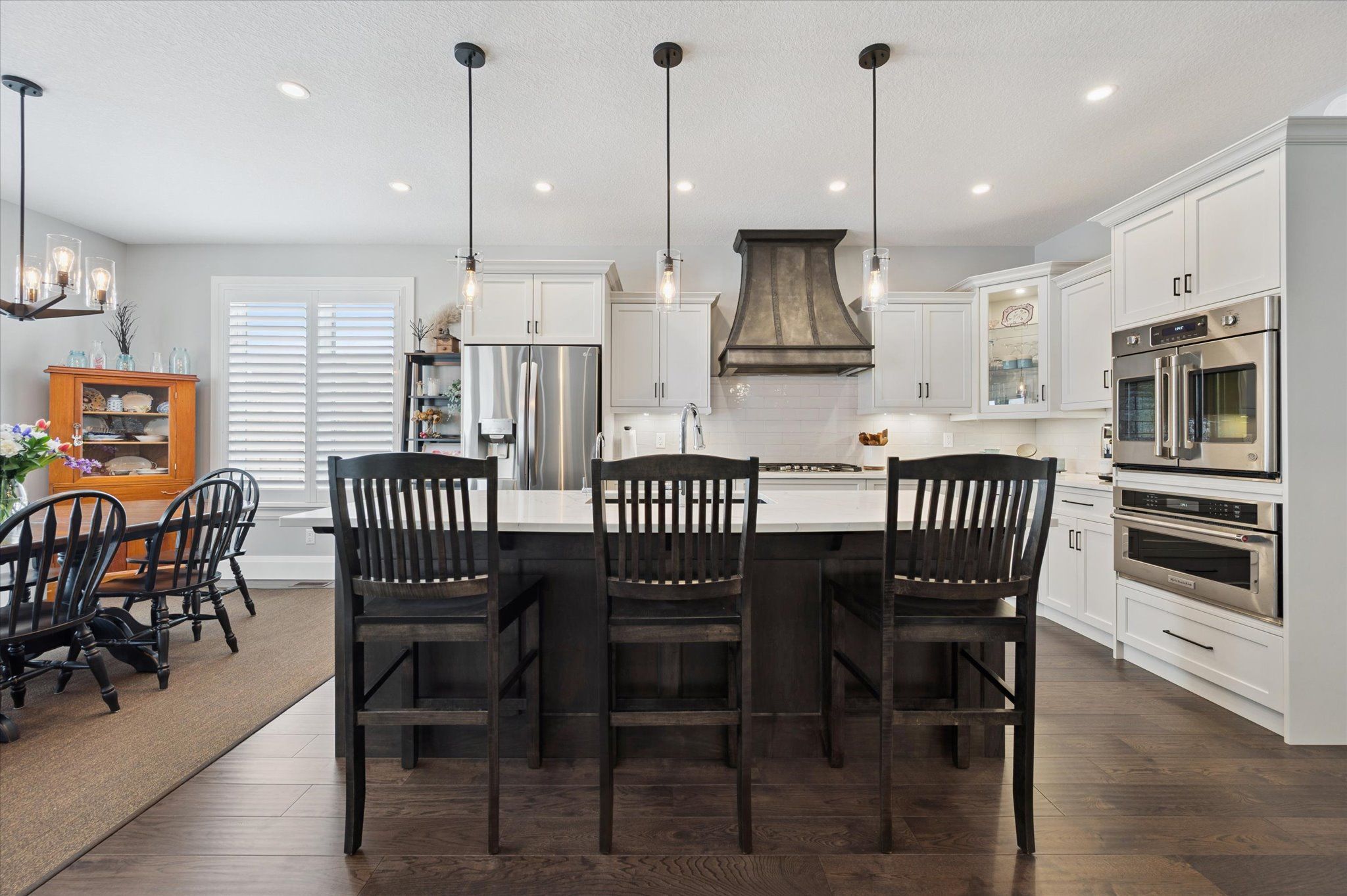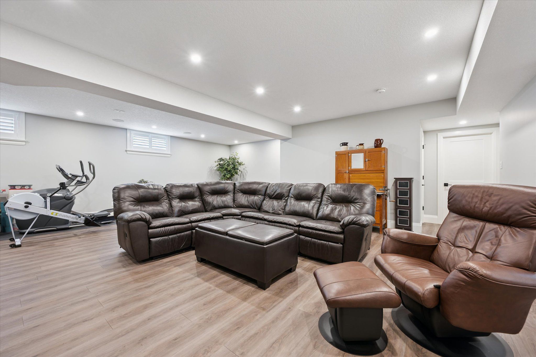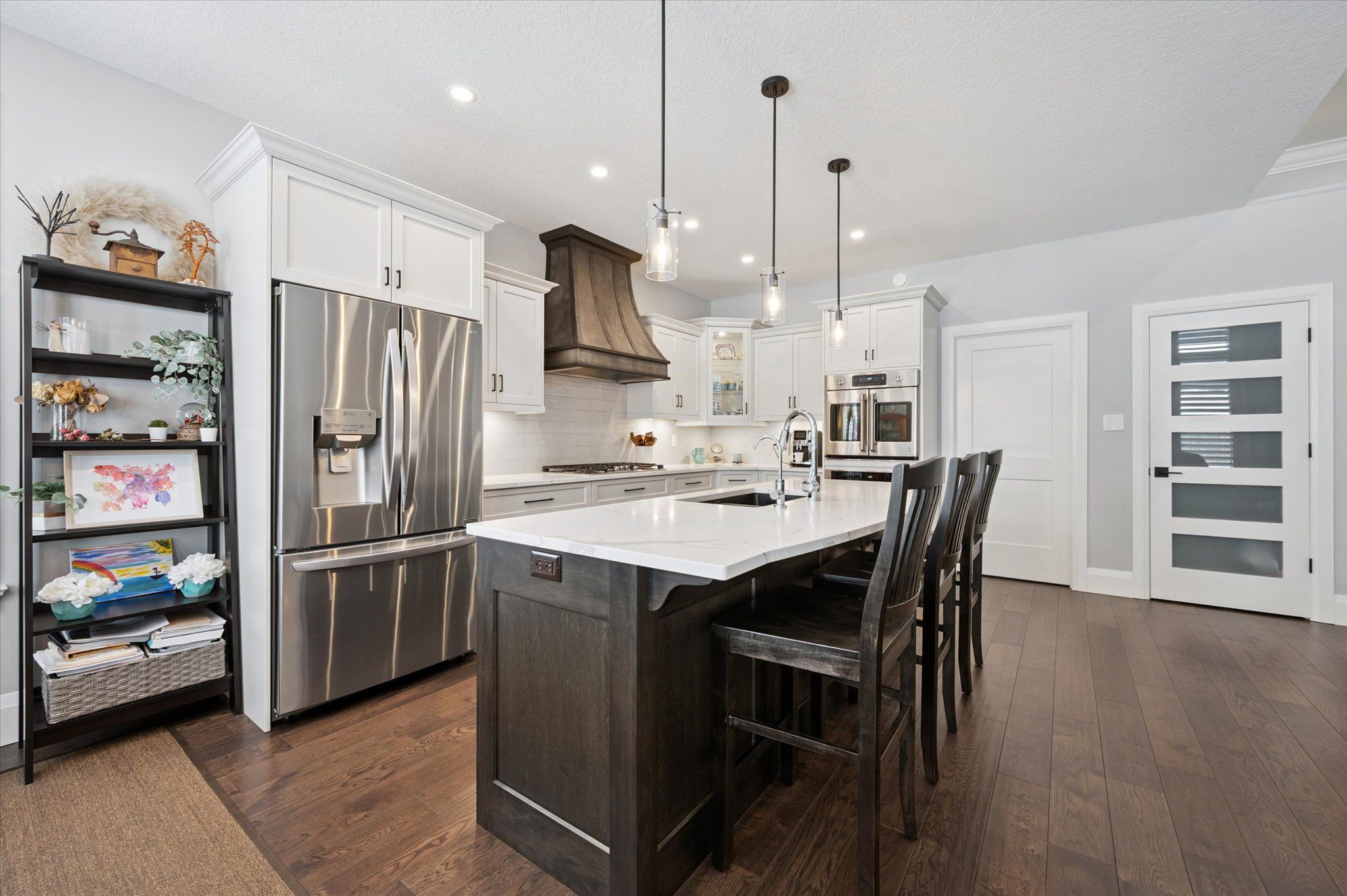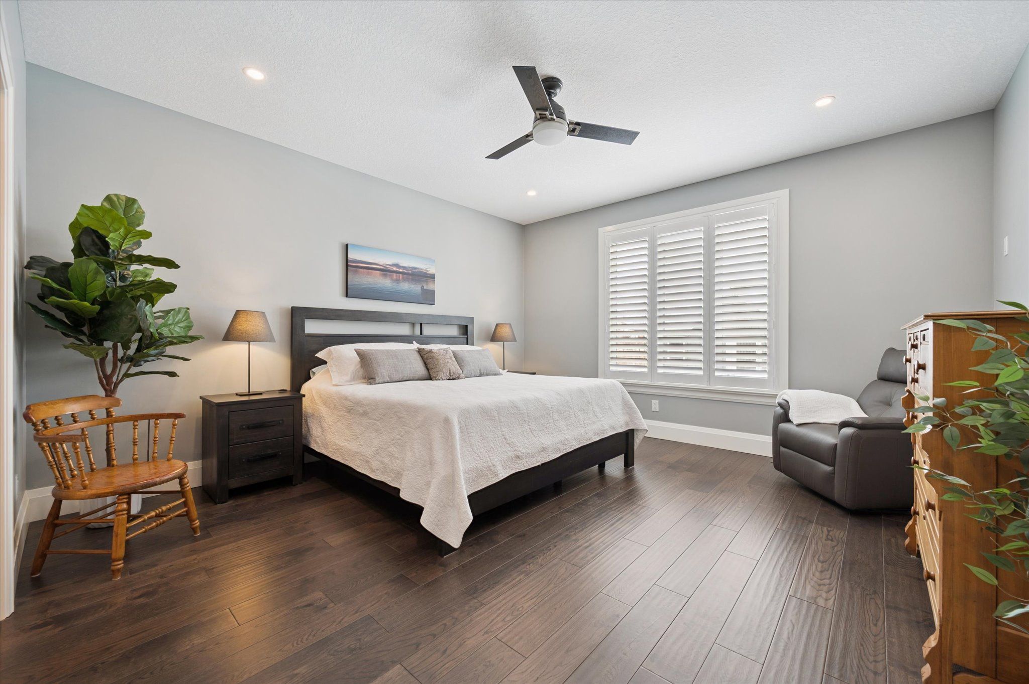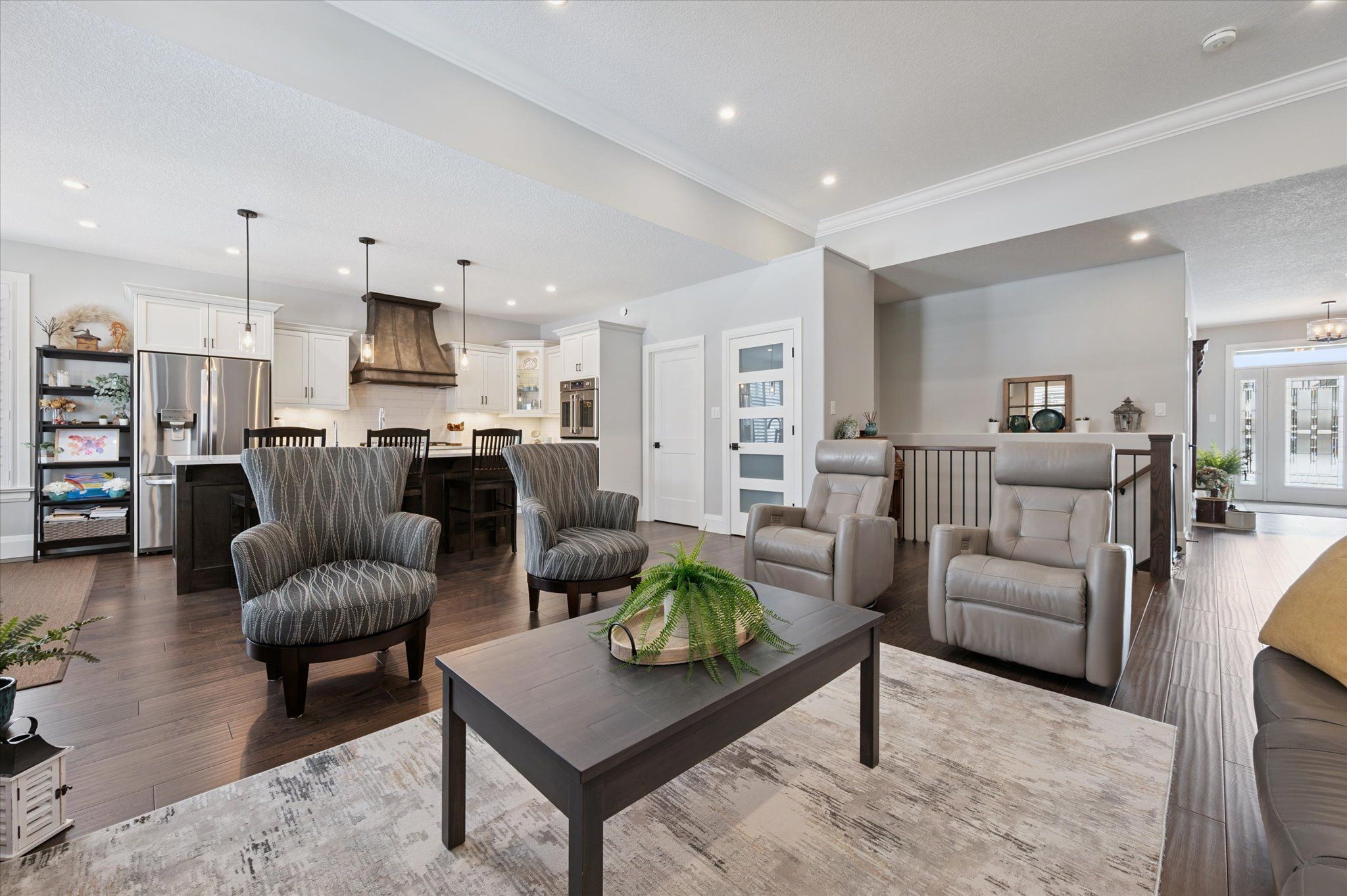 This captivating custom- built bungalow has been lovingly maintained and cared for by the original owners. You'll love the stunning kitchen with white cupboards, elegant creamy white quartz counter tops, custom range hood crafted by thak ironworks, lots of storage and workspace, a spacious walk-in pantry, and a huge center island in contrasting wood. Gracious entertaining can be yours in the elegant dining room with large windows to offer a romantic setting for special moments. Here you will also find the entrance to the back porch overlooking the tranquil yard. The welcoming great room boasts engineered hardwood floors and large windows flanking the cozy gas stone fireplace. Relax and unwind in the tranquil primary bedroom retreat with large walk-in closet and inviting primary spa bath with deep soaker tub and separate shower. You'll appreciate the convenience of the main floor laundry that you can access off the garage and the kitchen, a second main floor bedroom with spacious closet and an additional full bath. Be comfy-cozy by the rustic stone fireplace in the spacious rec room designed for informal gatherings and room for a pool table. The basement also features 2 roomy bedrooms, a full bath, loads of storage and staircase to insulated double garage! Enjoy cool summer evenings on the lovely back porch or under the pergola with a picturesque view of the lawn and gardens. Apollo shade screens on back patio and pergola. Quality craftmanship by stroh homes! Desirably located close to the school, scenic walking trails, gently rolling hills and valleys and the meandering nith river. House and garden!