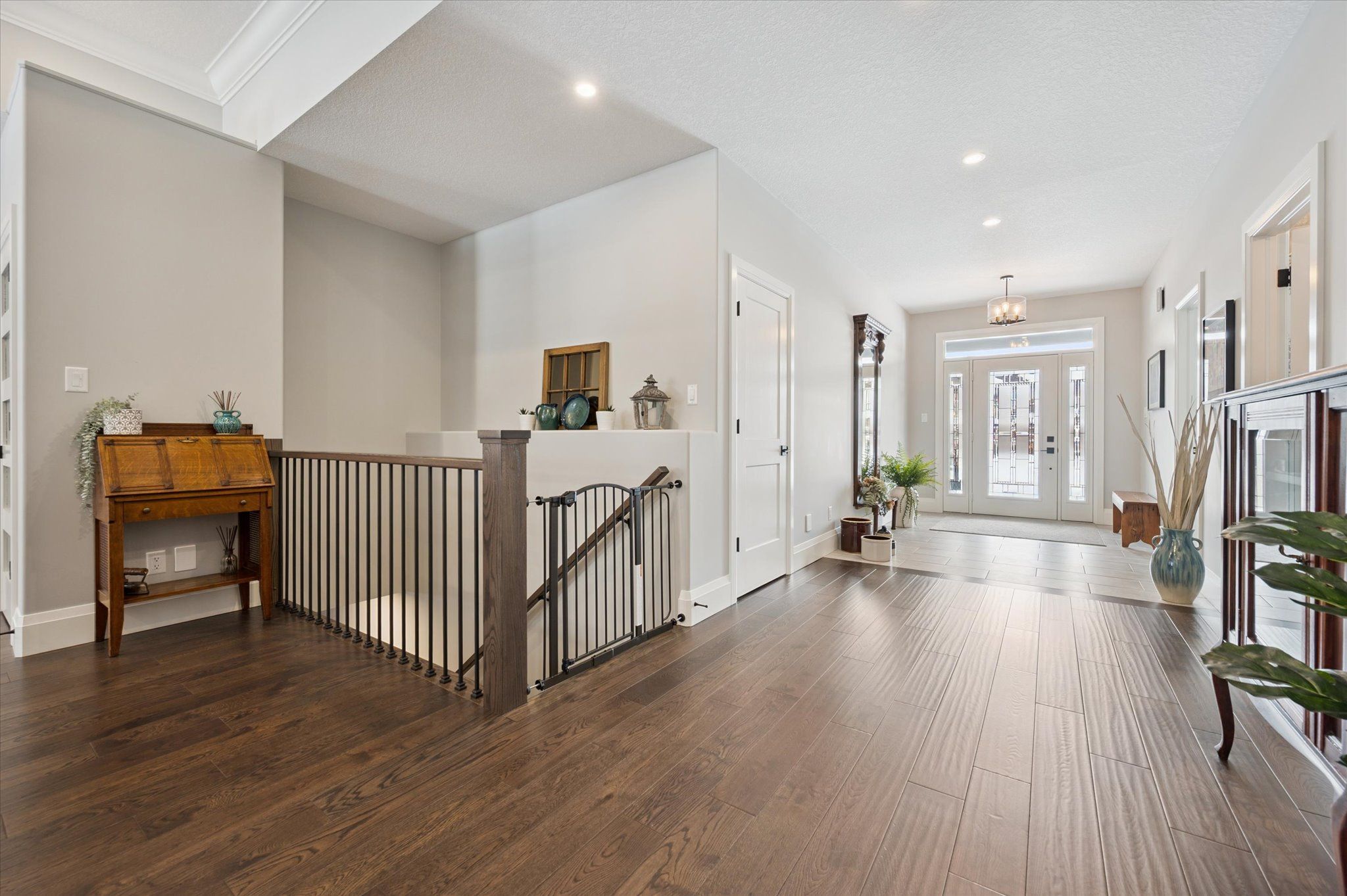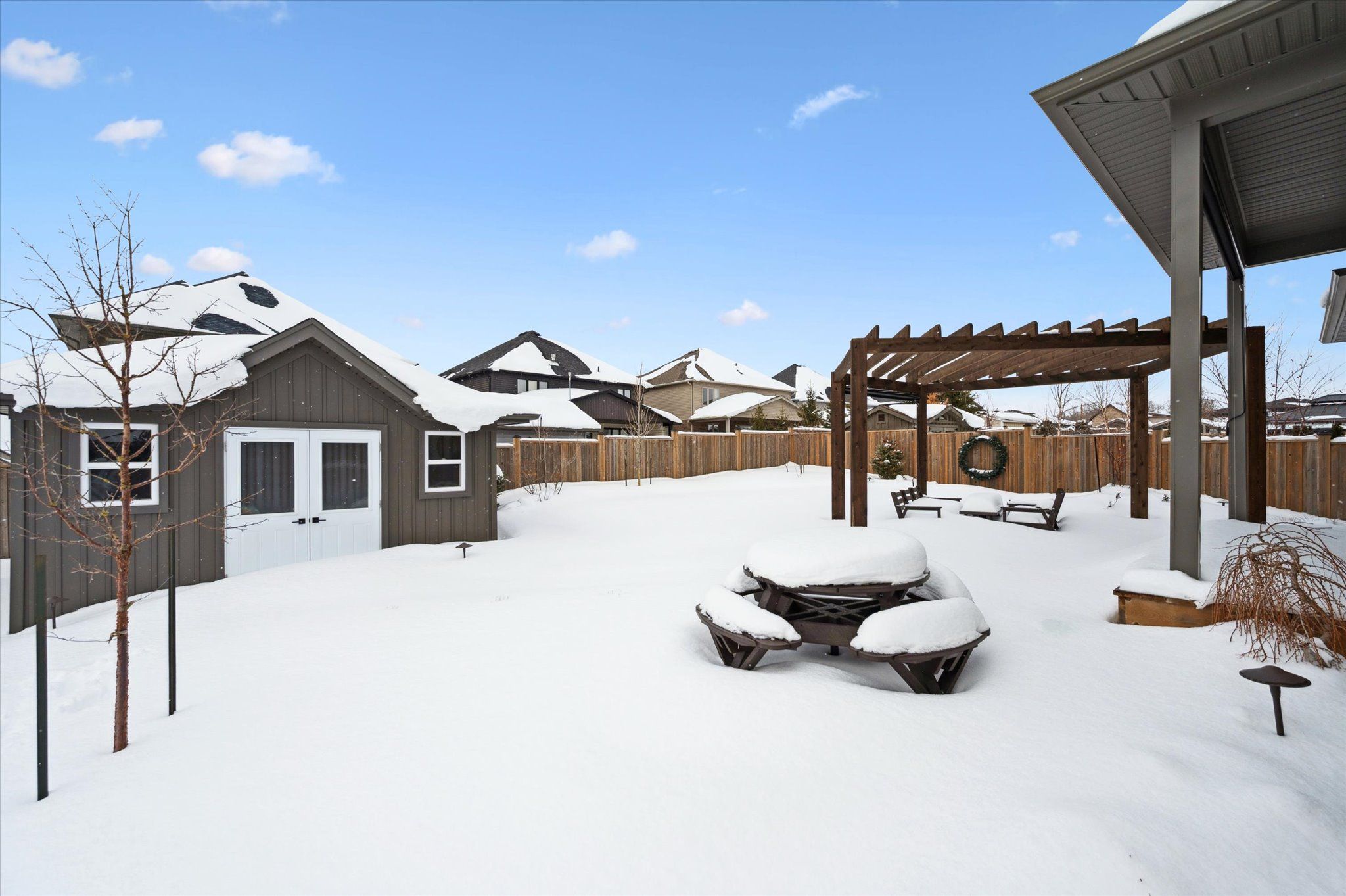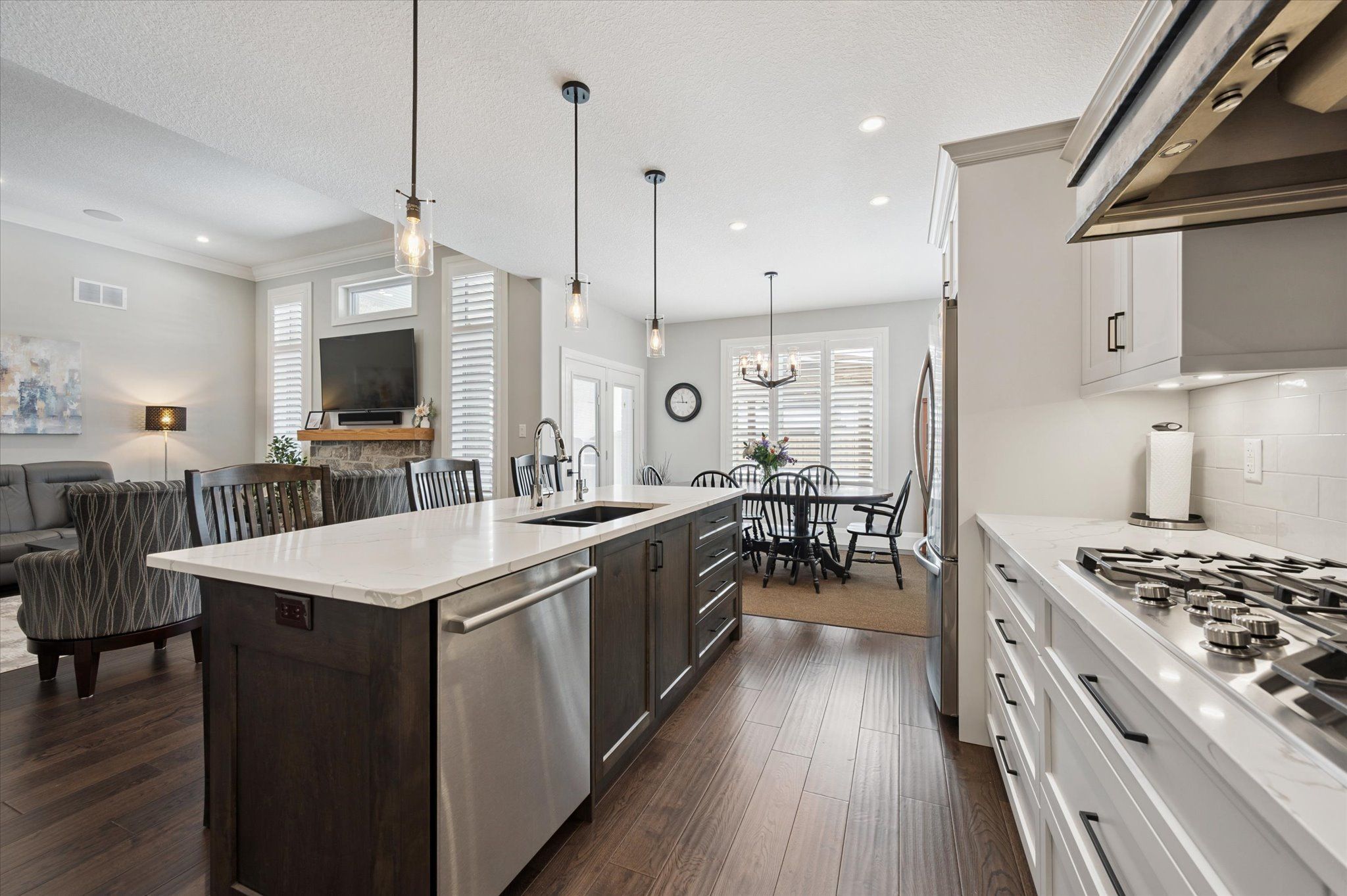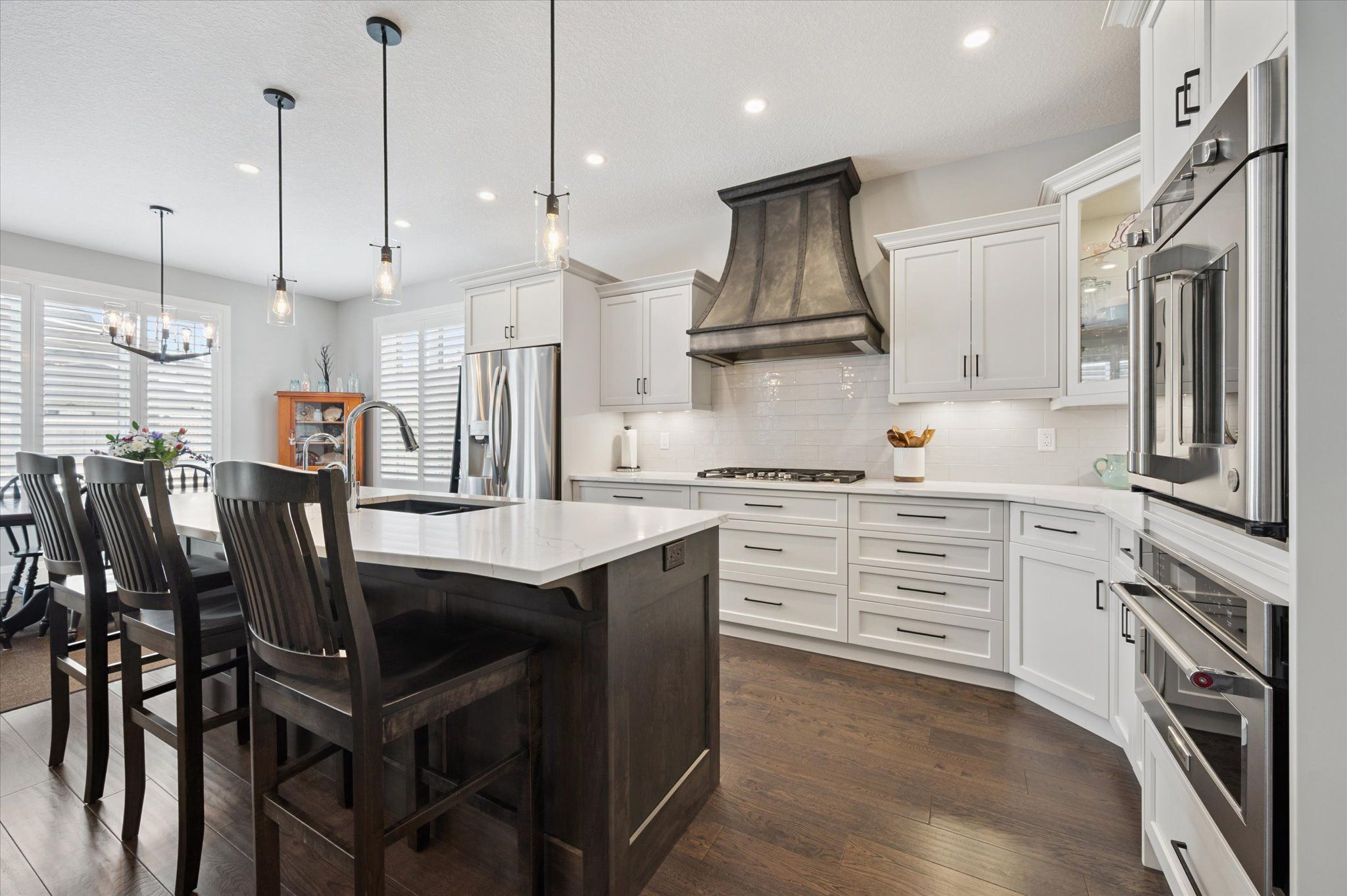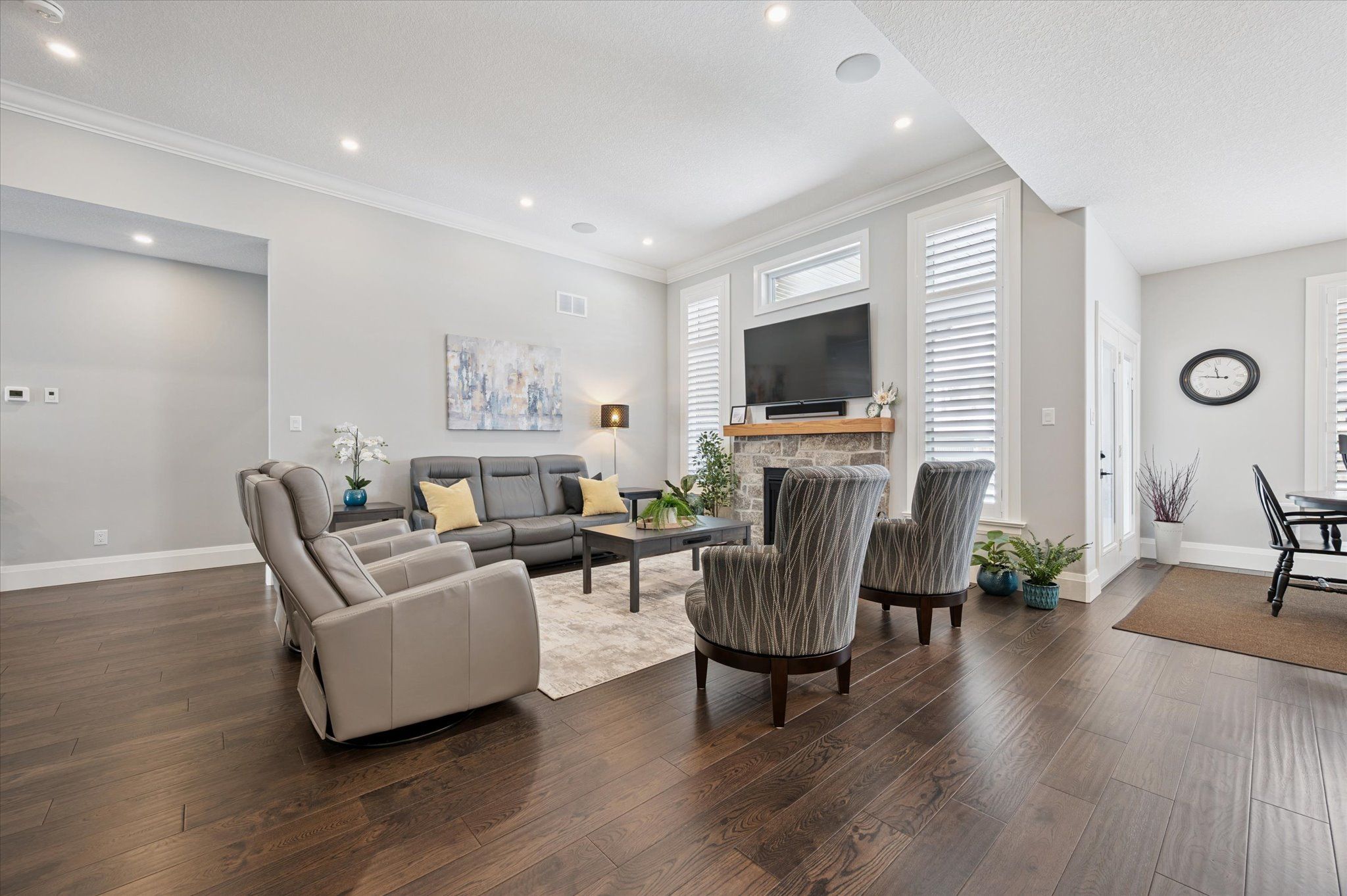 This captivating custom- built bungalow has been lovingly maintained and cared for by the original owners. You'll love the stunning kitchen with white cupboards, elegant creamy white quartz counter tops, custom range hood crafted by thak ironworks, lots of storage and workspace, a spacious walk-in pantry, and a huge center island in contrasting wood. Gracious entertaining can be yours in the elegant dining room with large windows to offer a romantic setting for special moments. Here you will also find the entrance to the back porch overlooking the tranquil yard. The welcoming great room boasts engineered hardwood floors and large windows flanking the cozy gas stone fireplace. Relax and unwind in the tranquil primary bedroom retreat with large walk-in closet and inviting primary spa bath with deep soaker tub and separate shower. You'll appreciate the convenience of the main floor laundry that you can access off the garage and the kitchen, a second main floor bedroom with spacious closet and an additional full bath. Be comfy-cozy by the rustic stone fireplace in the spacious rec room designed for informal gatherings and room for a pool table. The basement also features 2 roomy bedrooms, a full bath, loads of storage and staircase to insulated double garage! Enjoy cool summer evenings on the lovely back porch or under the pergola with a picturesque view of the lawn and gardens. Apollo shade screens on back patio and pergola. Quality craftmanship by stroh homes! Desirably located close to the school, scenic walking trails, gently rolling hills and valleys and the meandering nith river. House and garden!