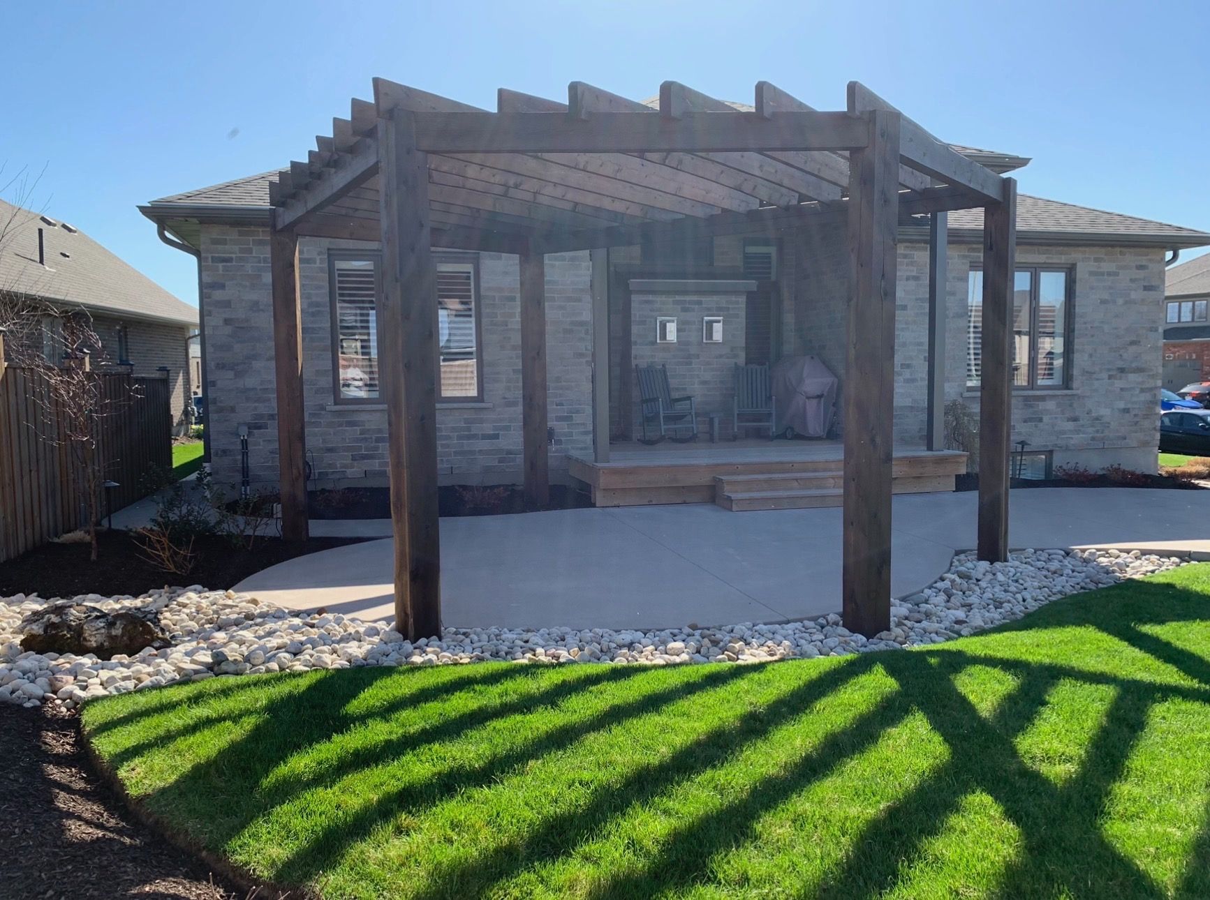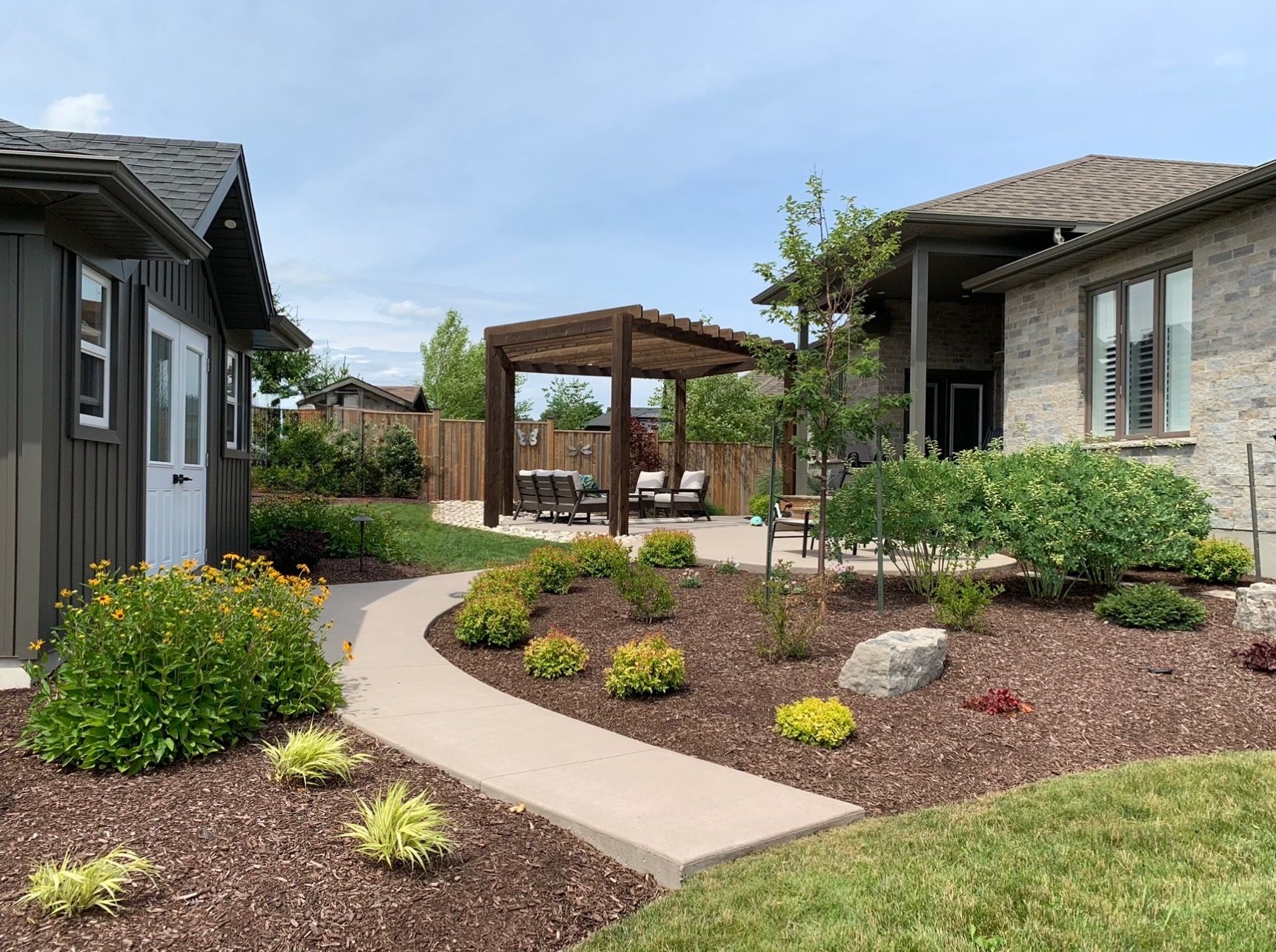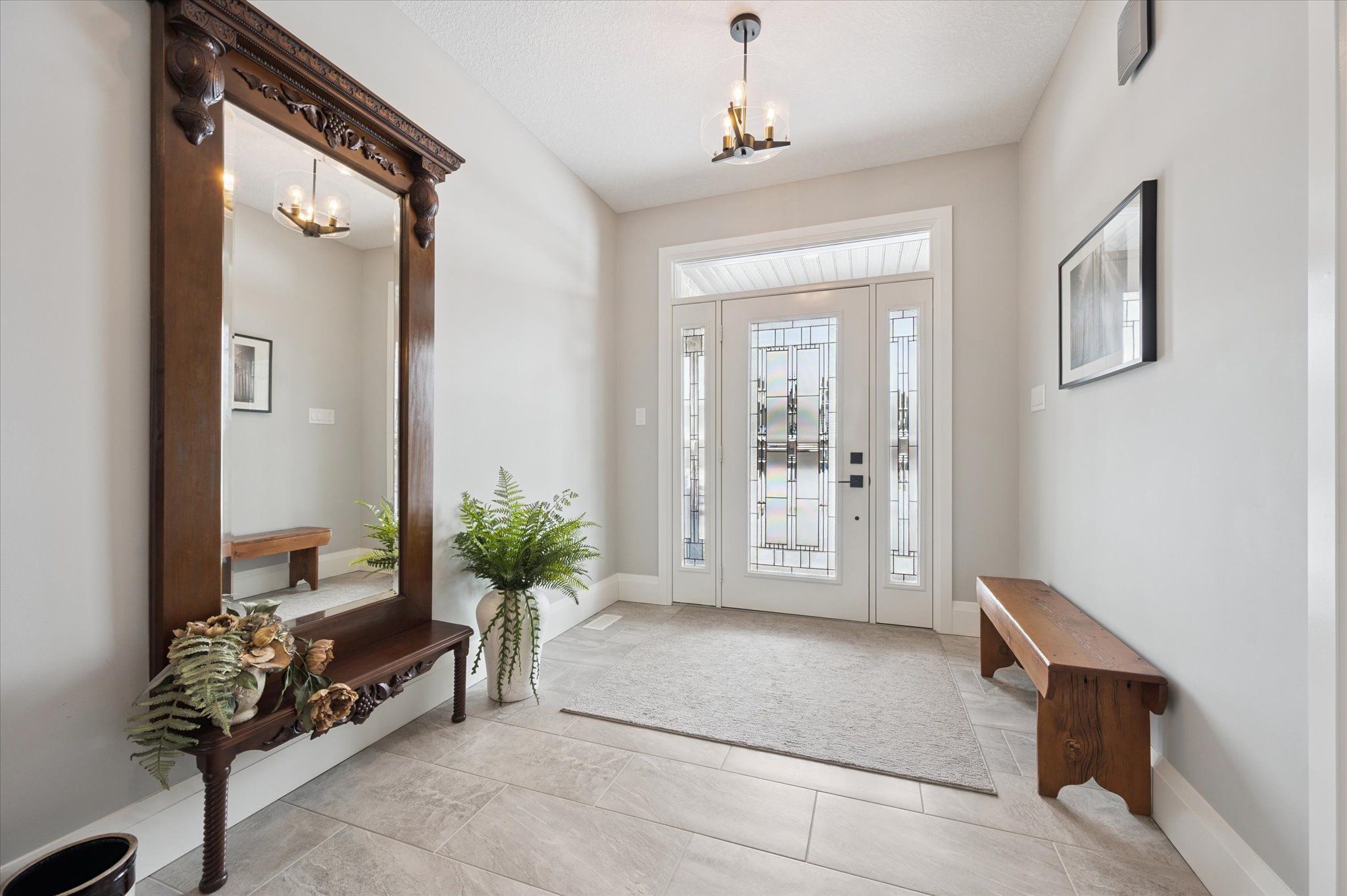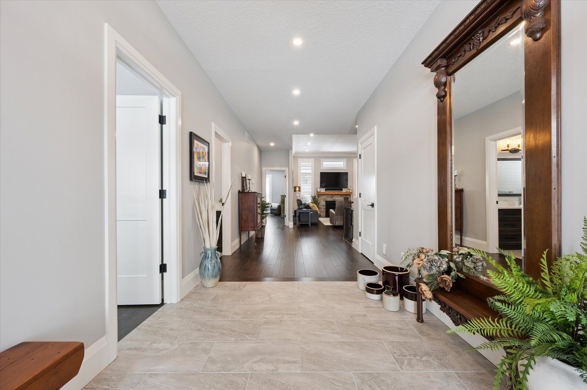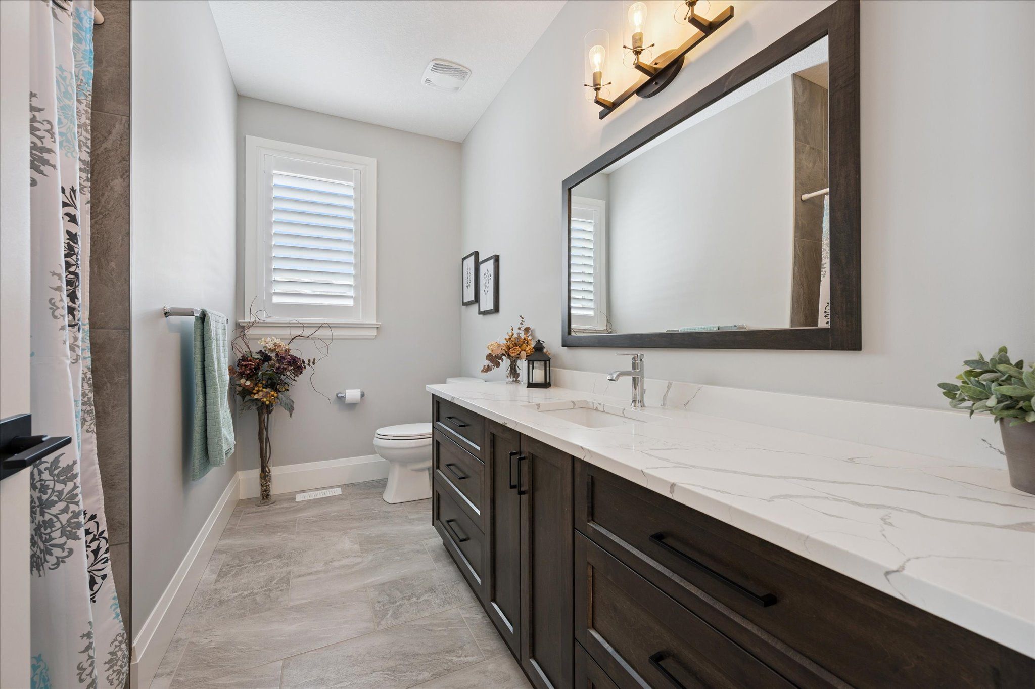 This captivating custom- built bungalow has been lovingly maintained and cared for by the original owners. You'll love the stunning kitchen with white cupboards, elegant creamy white quartz counter tops, custom range hood crafted by thak ironworks, lots of storage and workspace, a spacious walk-in pantry, and a huge center island in contrasting wood. Gracious entertaining can be yours in the elegant dining room with large windows to offer a romantic setting for special moments. Here you will also find the entrance to the back porch overlooking the tranquil yard. The welcoming great room boasts engineered hardwood floors and large windows flanking the cozy gas stone fireplace. Relax and unwind in the tranquil primary bedroom retreat with large walk-in closet and inviting primary spa bath with deep soaker tub and separate shower. You'll appreciate the convenience of the main floor laundry that you can access off the garage and the kitchen, a second main floor bedroom with spacious closet and an additional full bath. Be comfy-cozy by the rustic stone fireplace in the spacious rec room designed for informal gatherings and room for a pool table. The basement also features 2 roomy bedrooms, a full bath, loads of storage and staircase to insulated double garage! Enjoy cool summer evenings on the lovely back porch or under the pergola with a picturesque view of the lawn and gardens. Apollo shade screens on back patio and pergola. Quality craftmanship by stroh homes! Desirably located close to the school, scenic walking trails, gently rolling hills and valleys and the meandering nith river. House and garden!