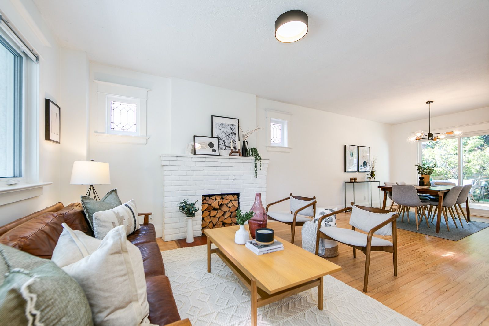 • Charming features like hardwood floors and a cozy wood-burning fireplace.