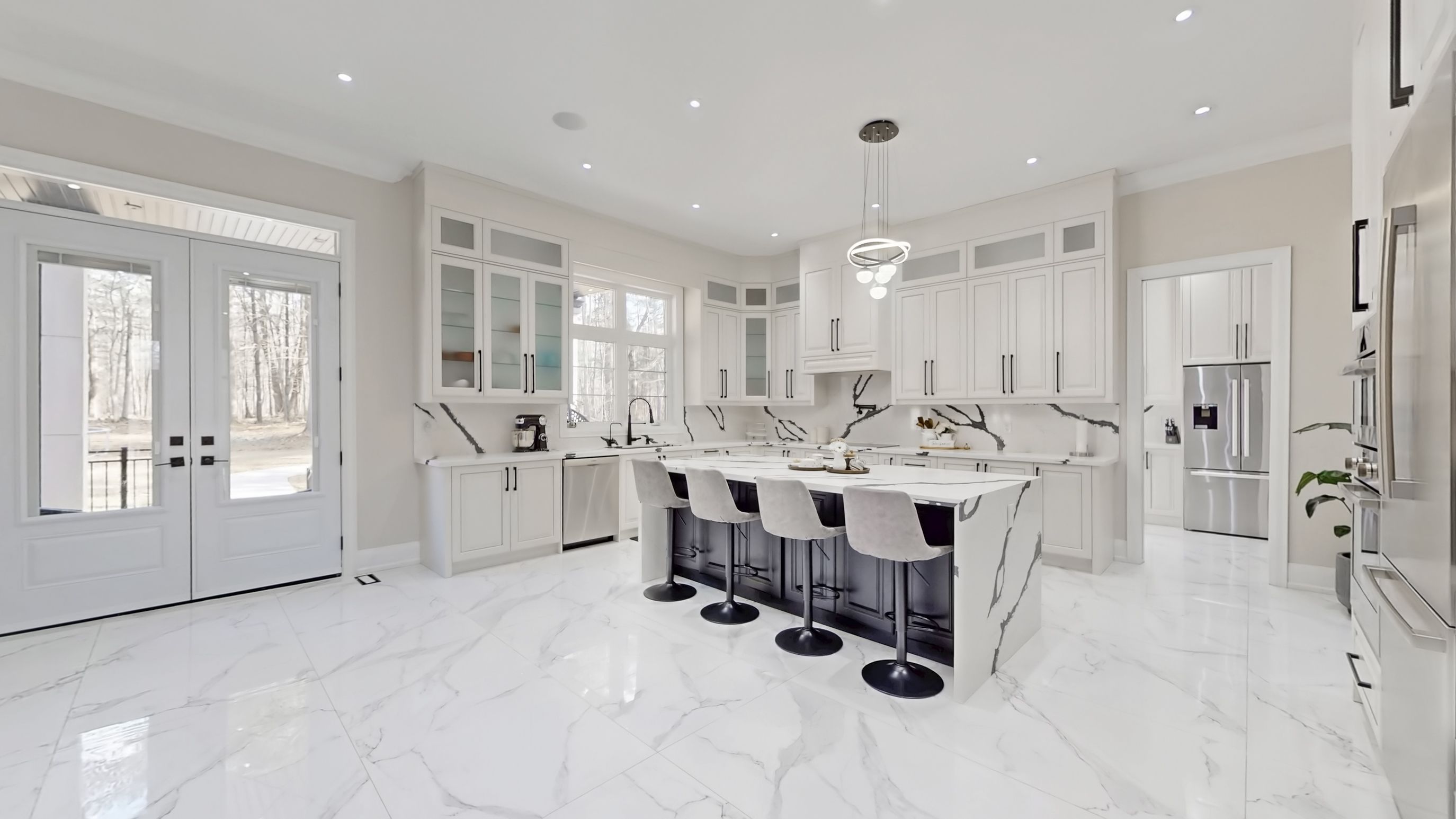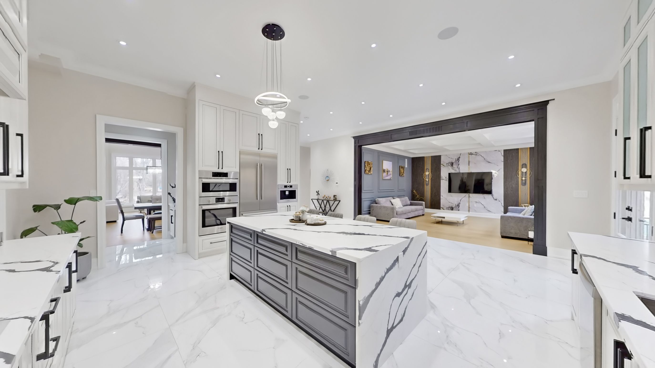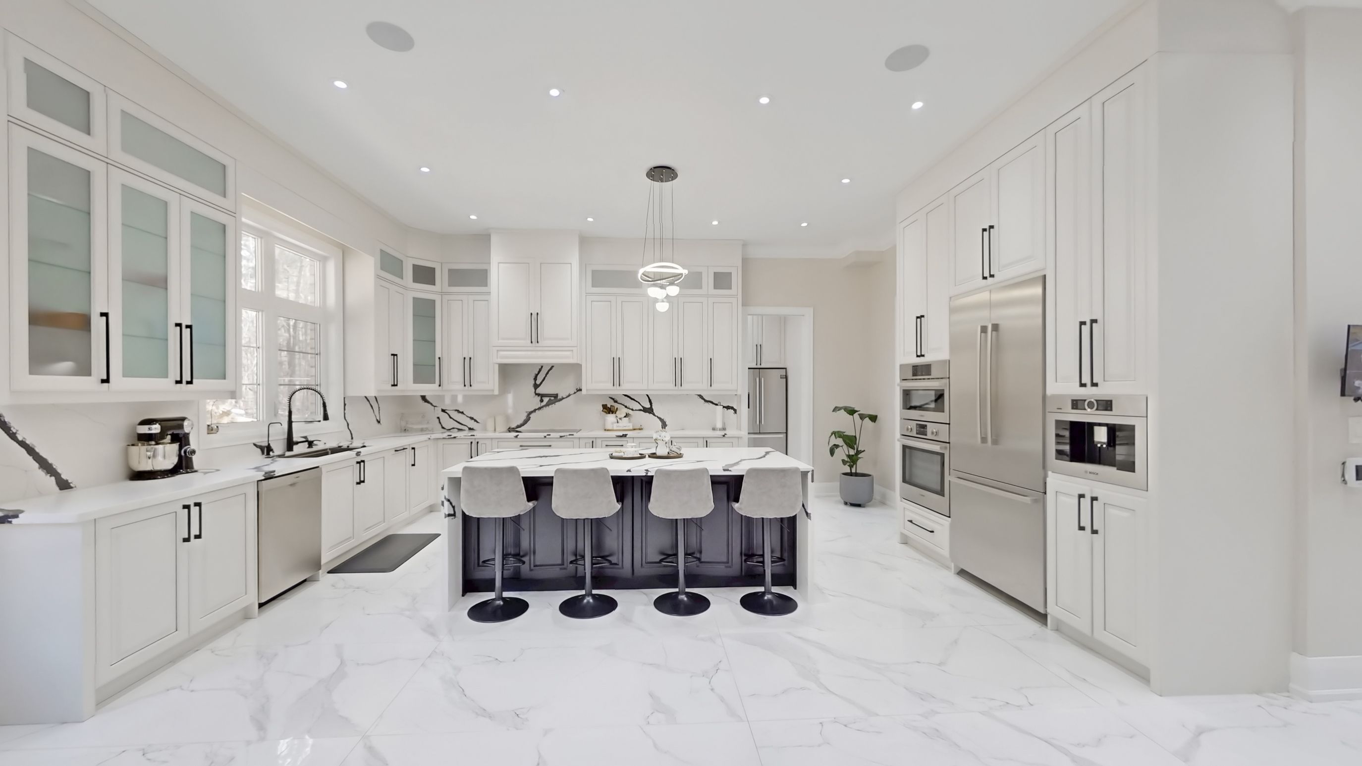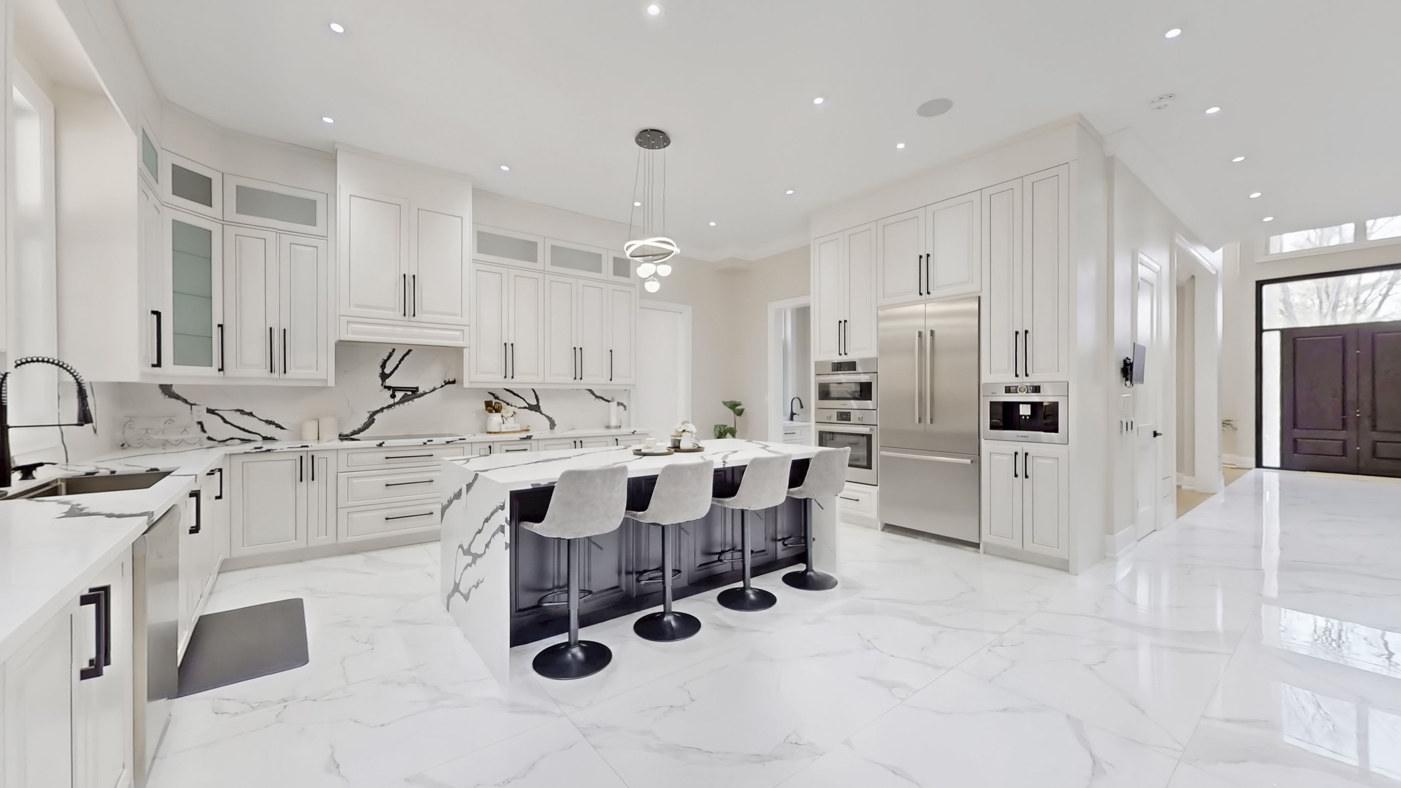 • Chef's kitchen equipped with double wall ovens and a full spice kitchen.